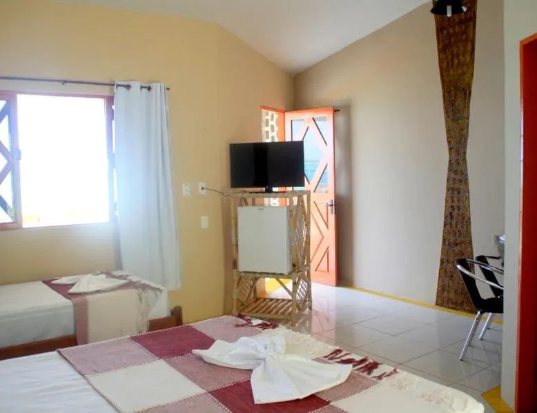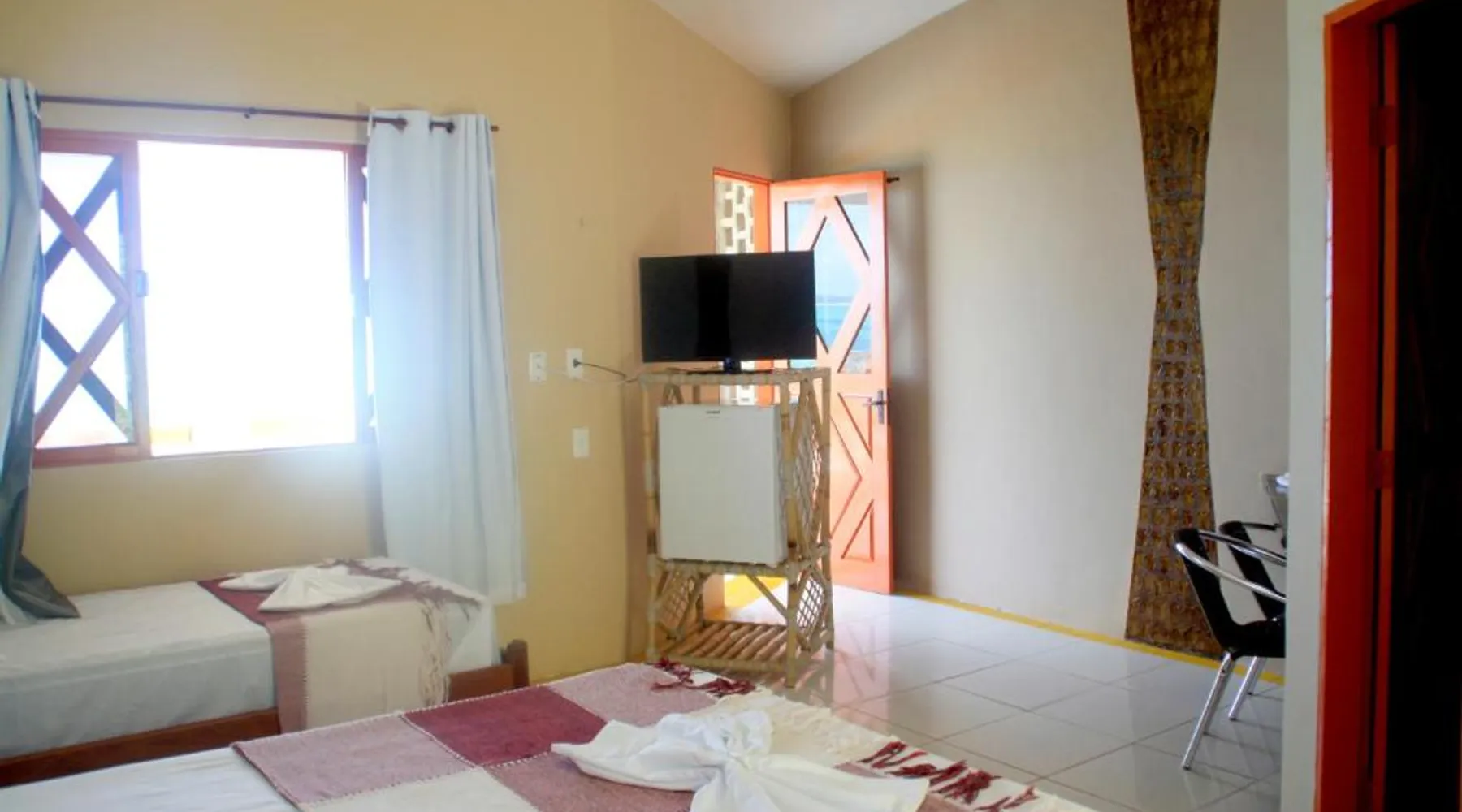 Beachfront Location: Chalemar Hotel Pousada in Baia Formosa offers direct beachfront access with stunning sea views. Guests can relax by the swimming pool with a view, sun terrace, and lush garden. Comfortable Accommodations: Rooms feature air-conditioning, private bathrooms, balconies, and terraces. Additional amenities include mini-bars, showers, TVs, and wardrobes, ensuring a comfortable stay. Dining Experience: The family-friendly restaurant serves Brazilian cuisine in a welcoming ambiance. Breakfast is provided in-room, and a coffee shop offers a variety of refreshments. Convenient Services: Free WiFi is available throughout the property. Guests can enjoy room service, a paid shuttle service, and free parking. São Gonçalo do Amarante International Airport is 66 mi away. This spacious, air-conditioned chalet offers a patio with a hammock and sea views, plus a TV, a mini-bar and a private bathroom fitted with a hot shower. Parking is free.