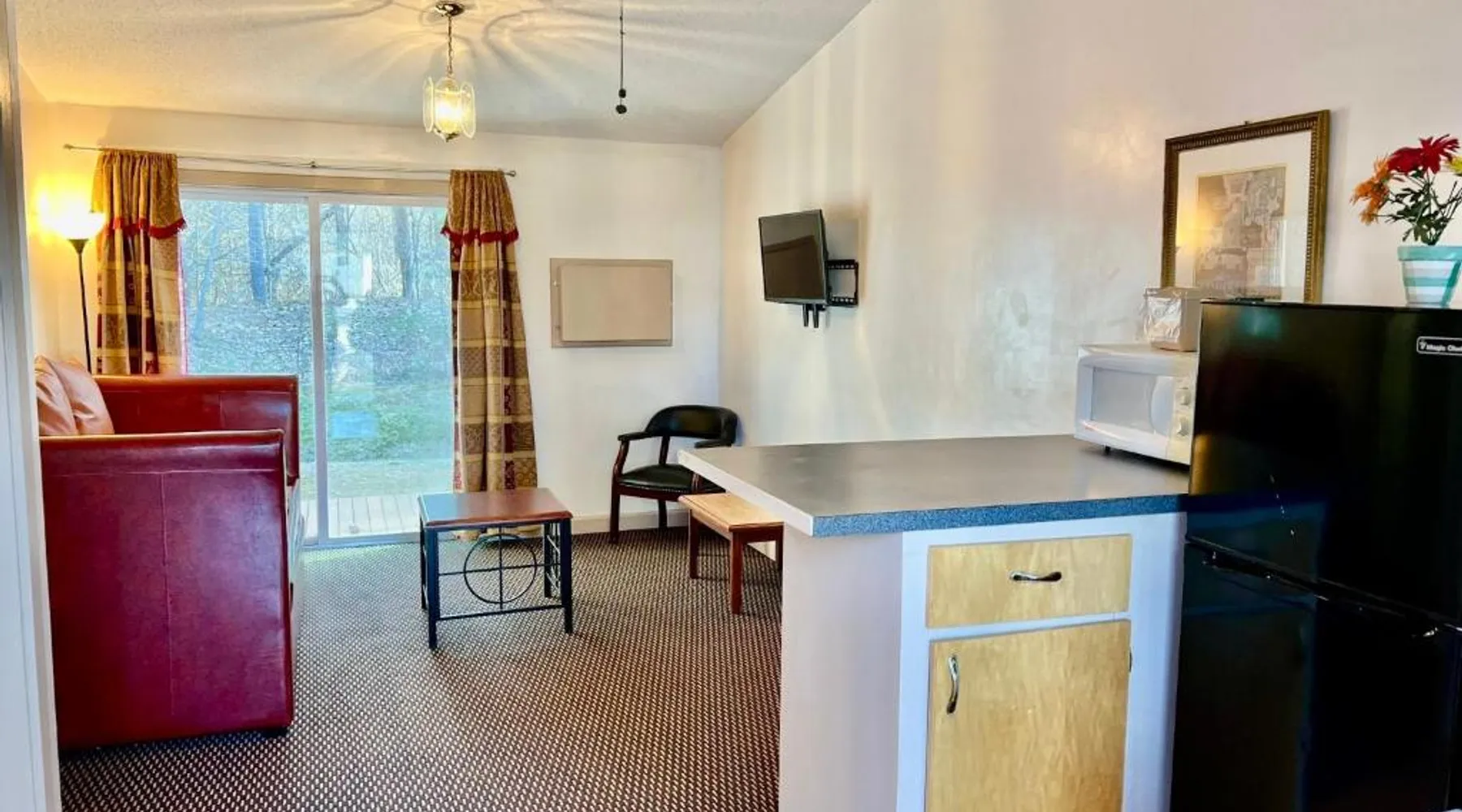 -This property is near the Saco River and is within a 20-minute drive of North Conway, which features shopping and dining. Rooms include microwaves and refrigerators. - Free Wi-Fi and cable TV are standard in all room and suites at the Saco River Motor Lodge & Suites. The newly renovated rooms feature cozy furnishings, crisp white bedding and large windows. The spacious double room provides air conditioning, a coffee machine, as well as a private bathroom featuring a walk-in shower and a bath or a shower. The double room features carpeted floors, a seating area with a flat-screen TV with cable channels, a wardrobe, a barbecue, as well as heating. The unit offers 1 bed.