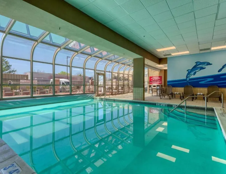 Adjacent to Chesterfield Mall, this Missouri hotel is 20 miles from central St. Louis. A 55-inch flat-screen cable TV is included in each room, and a daily hot breakfast is served. Free WiFi is provided in every room at Drury Plaza Hotel Chesterfield. Guests can make use of the in-room microwave and fridge during their stay. An indoor-outdoor pool is available at Chesterfield Drury Plaza Hotel, along with a relaxing hot tub. For added convenience, a fitness center is located on site. Lambert - St. Louis International Airport is 18 miles away. Six Flags St. Louis can be reached in 27 minutes’ drive. The spacious double room features air conditioning, a coffee machine, as well as a private bathroom boasting a bath and a hairdryer. This double room has a wardrobe, heating and a flat-screen TV with cable channels. The unit has 1 bed.