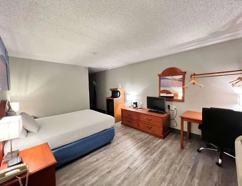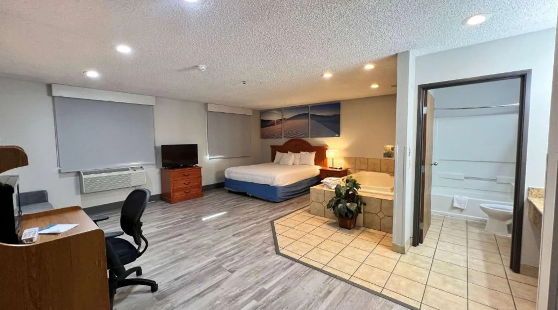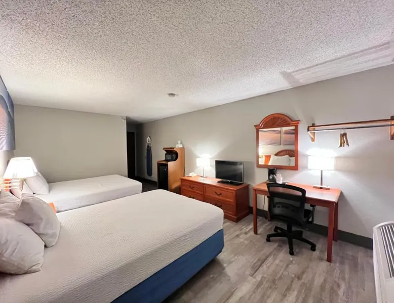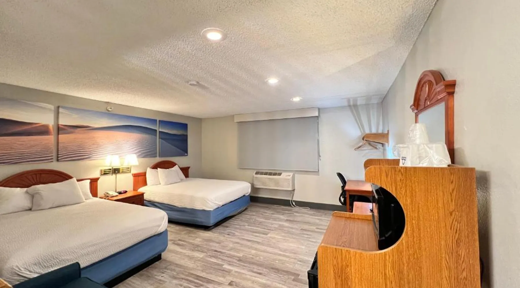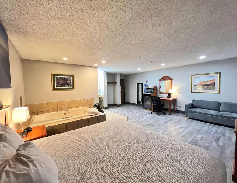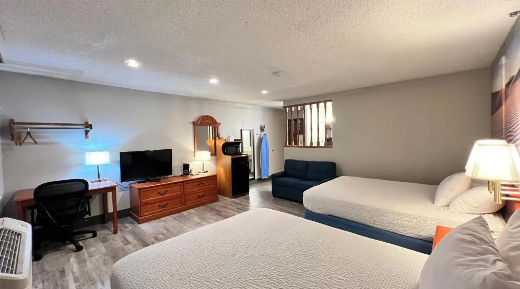 This hotel features a fitness center and a business center. All rooms include a cable TV with movie channels and free Wi-Fi. It is .5 of a mile from the Hill Air Force Base. At the Antelope Inn & Suites, every room includes air-conditioning and coffee facilities. Laundry facilities are available at the Antelope Inn & Suites. Free parking for large vehicles is available on site. Lagoon Amusement Park is just over 13 miles from the Antelope Inn & Suites. It is just under 10 miles from Weber State University and 17 miles from Antelope Island State Park. The quadruple room offers air conditioning, a tea and coffee maker, as well as a private bathroom boasting a shower and a hairdryer. This quadruple room provides heating and a TV. The unit has 2 beds.