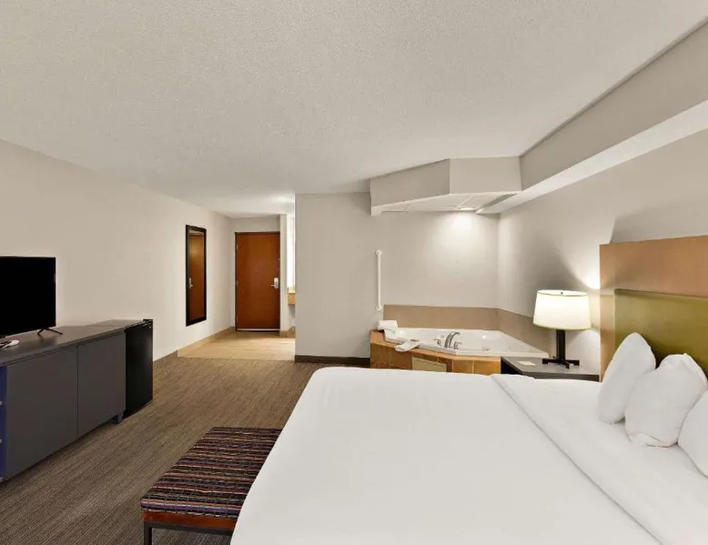 This Jonesborough hotel is 2 miles from Wetlands Water Park and a 2-minute walk from the International Storytelling Center. It features an indoor pool and spacious rooms with free WiFi. A microwave, mini-fridge and coffee/tea facilities are standard in every room at Country Inn & Suites by Radisson, Jonesborough-Johnson City West, TN. All rooms include a cable TV and work desk. Free access to the gym is provided to all guests of the hotel. Parking is also free on site. A daily continental breakfast is served at this Country Inn & Suites. It includes cereal, pastries and Belgium waffles, along with juice, coffee and tea. East Tennessee State University and the Natural History Museum are both a 12-minute drive from the hotel. This suite's special feature is the spa bath. This suite provides a tea and coffee maker and a TV. The unit offers 1 bed.