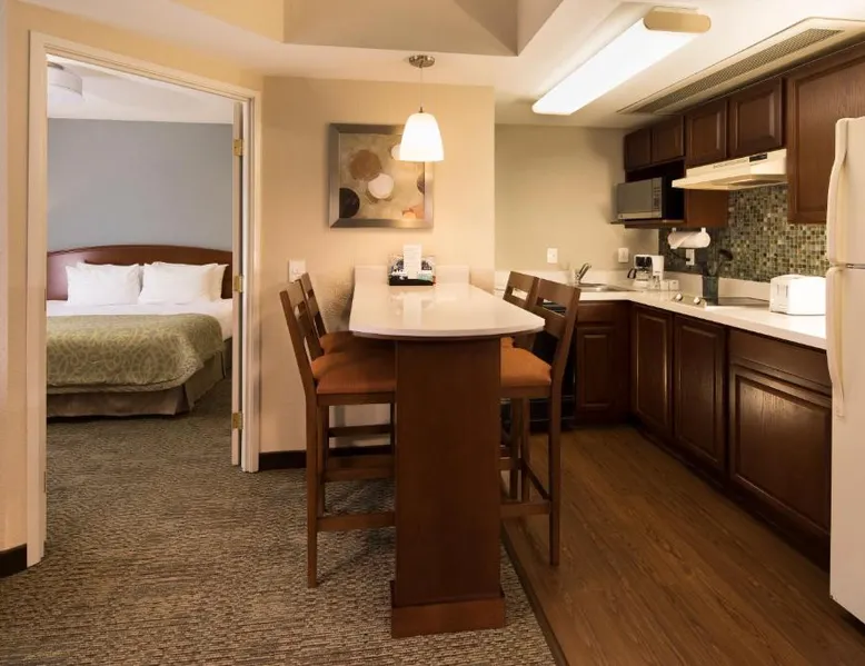 Comfortable Accommodations: Staybridge Suites Monterrey San Pedro by IHG in San Pedro Garza García offers spacious rooms with air-conditioning, private bathrooms, and modern amenities. Guests appreciate the room comfort and ample space. Exceptional Facilities: The hotel features a fitness center, sun terrace, and a year-round outdoor swimming pool. Free WiFi is available throughout the property, ensuring connectivity for all guests. Convenient Location: Located 24 mi from Monterrey International Airport, the hotel is near attractions such as Obispado Museum (3.1 mi) and MARCO Museum Monterrey (5 mi). Free on-site private parking is provided. Guest Services: Guests can enjoy a buffet breakfast with juice, fresh pastries, pancakes, cheese, and fruits. Additional services include a paid shuttle, lounge, 24-hour front desk, minimarket, business area, laundry service, outdoor seating, picnic area, family rooms, meeting rooms, car hire, tour desk, and luggage storage. Each modern suite comes with free Wi-Fi, a DVD player and cable TV. There is a living room with a sofa and a private bathroom with a hairdryer and bathrobe. The kitchenette and dining area includes a fridge, microwave and coffee maker. There is also an oven and dishwasher.