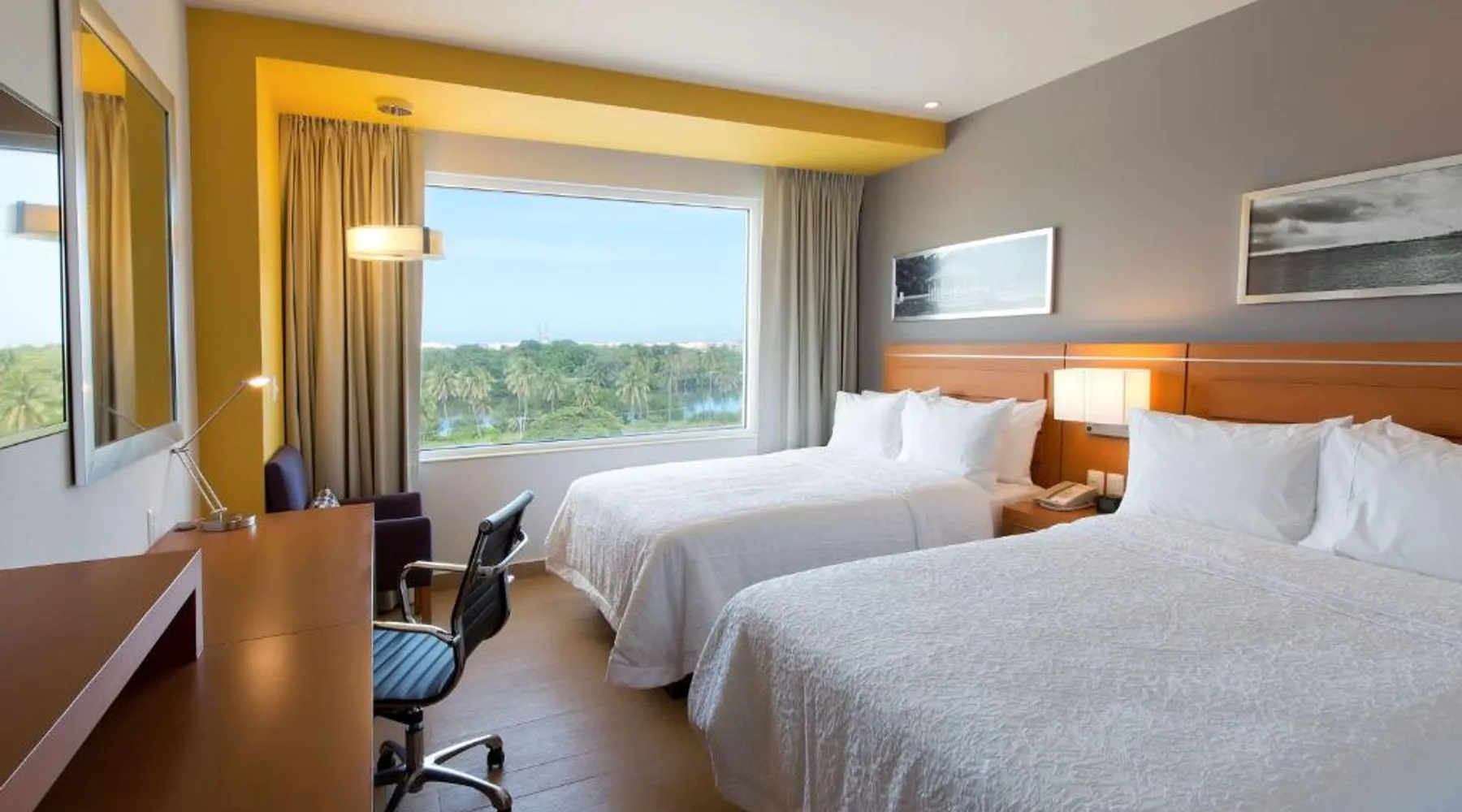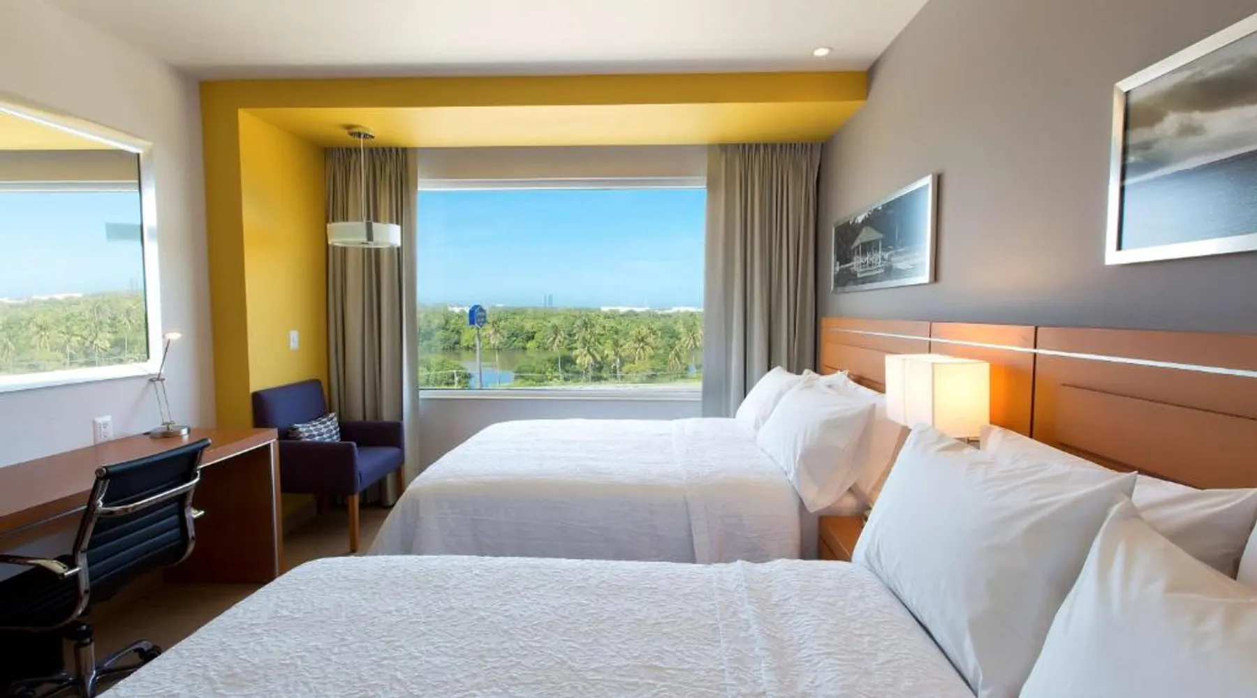 Comfortable Accommodations: Hampton Inn & Suites by Hilton Paraiso in Paraíso offers family rooms with private bathrooms, equipped with tea and coffee makers, refrigerators, and TVs. Each room includes a sofa bed and seating area, ensuring a pleasant stay. Exceptional Facilities: Guests can enjoy a fitness center, sun terrace, and lush garden. The property features a restaurant serving Mexican cuisine with dairy-free options, a bar, and free WiFi throughout. Additional amenities include a fishing activity and free on-site parking. Convenient Services: The hotel provides private check-in and check-out, a 24-hour front desk, daily housekeeping, and luggage storage. Free on-site parking, a shuttle service, and a picnic area enhance the guest experience. Prime Location: Located 54 mi from Carlos Rovirosa Pérez Airport, the hotel is highly rated for its attentive staff and excellent service support. This quadruple room features air conditioning, mini-bar and tea/coffee maker.