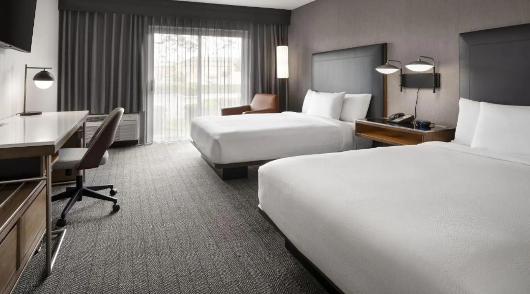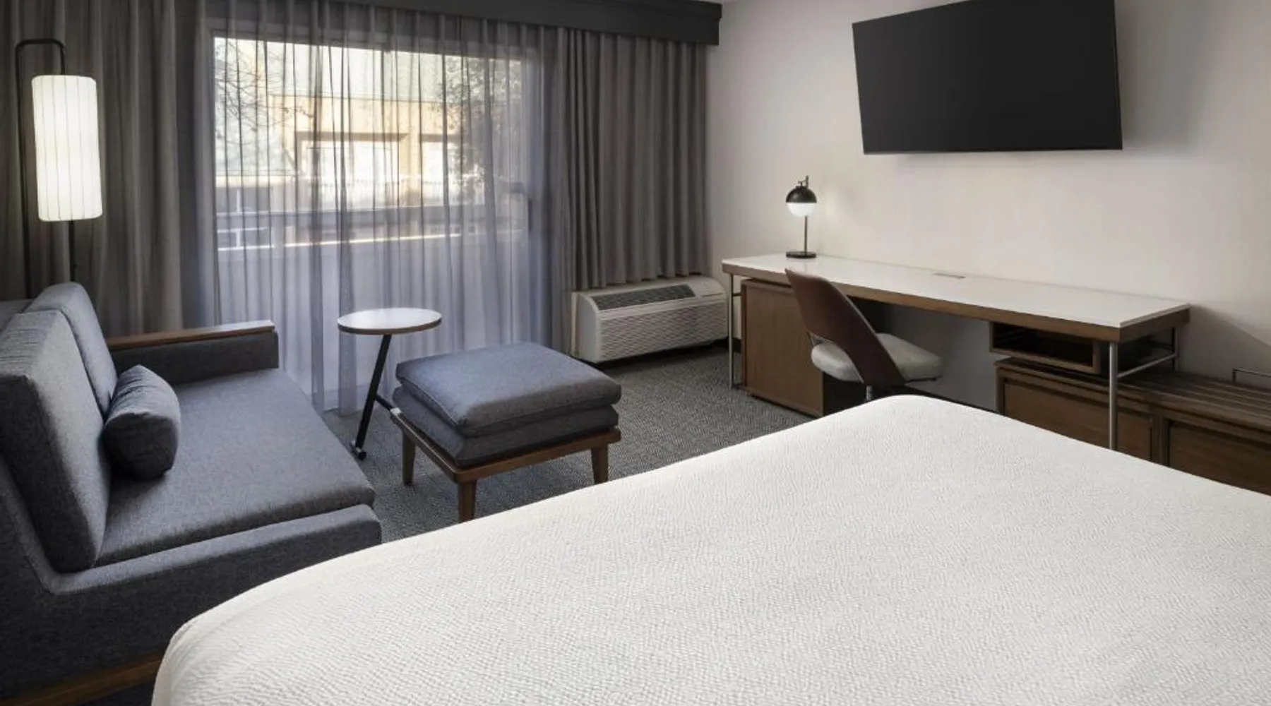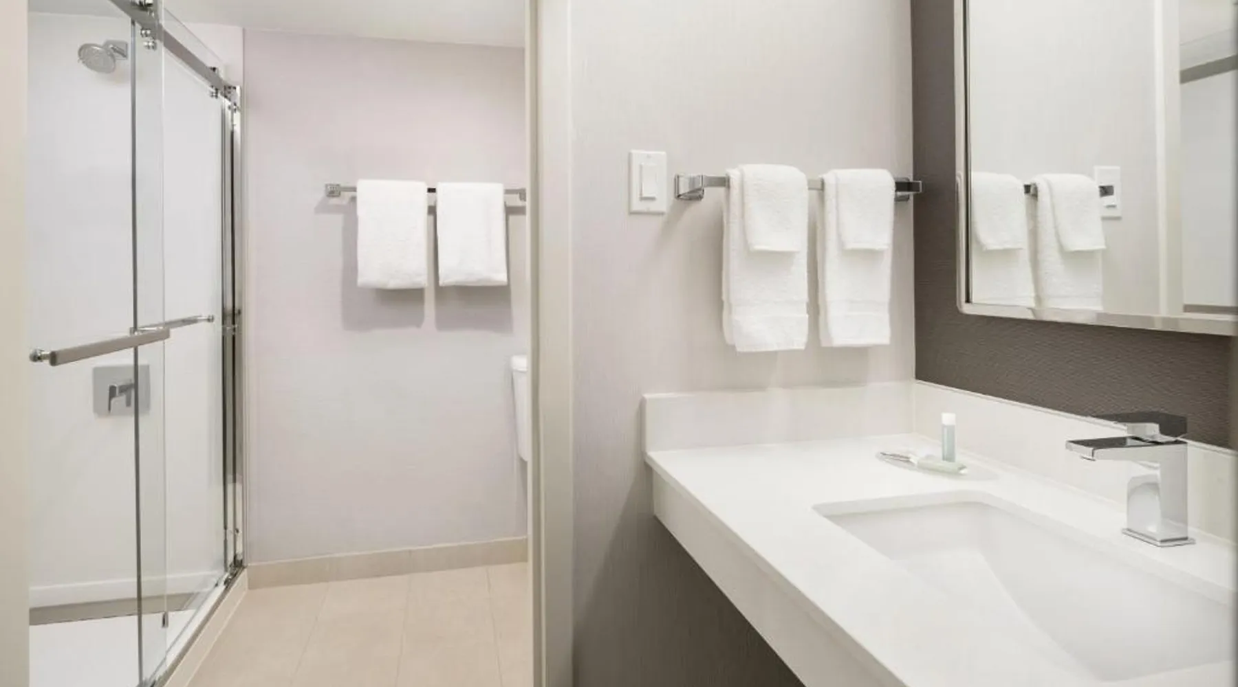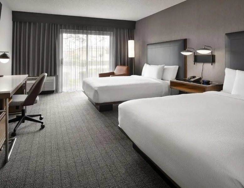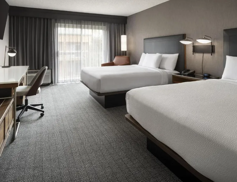 This Foster City, California hotel offers free Wi-Fi. The Hayward Park Caltrain Station, with access to downtown San Francisco, is 3 miles away. While staying with the Courtyard by Marriott San Mateo Foster City hotel, guest rooms are furnished with tea and coffee facilities. Cable TV with HBO is also included in each room. A gym and library are on-site at the Courtyard Foster City. A business center and gift shop are available as well. Offering healthy breakfast and dinner options, The Bistro also offers an evening bar and specialty coffee beverages. Open 24-hours a day, the Market offers a variety of food and drinks to choose from. The San Mateo Foster City Courtyard by Marriott is 9.5 miles from San Francisco International Airport. San Mateo Fairgrounds is 2.5 miles away. It is also minutes from San Francisco Bay and boating, fishing and golfing are nearby. This air-conditioned twin/double room is consisted of of a flat-screen TV with cable channels and a private bathroom. The unit has 2 beds.