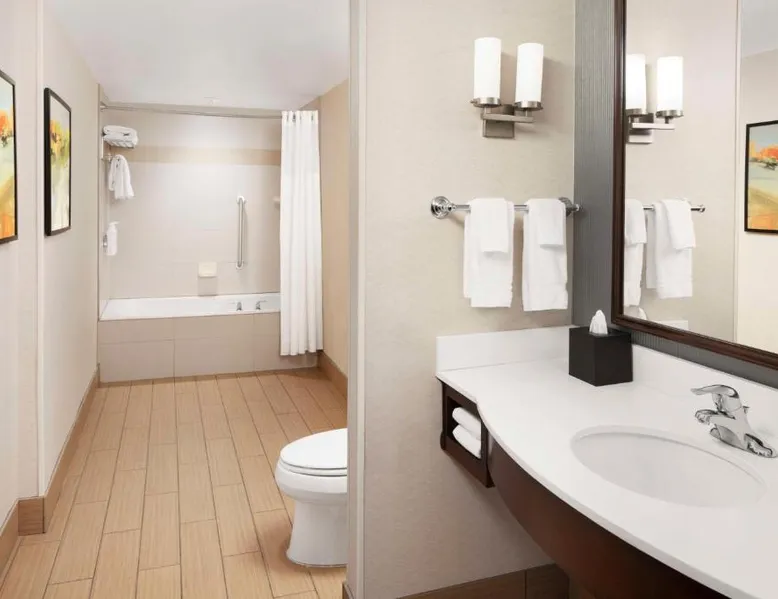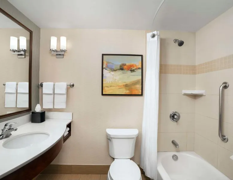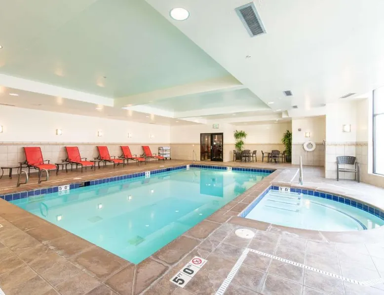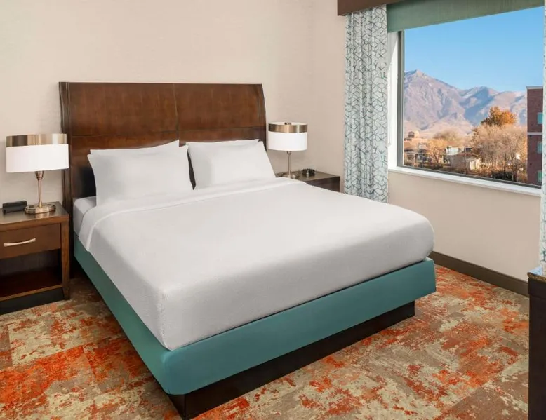 Featuring an indoor swimming pool and fitness center, this Ogden, Utah hotel is less than a 20 minute drive from the Snowbasin ski area entrance and a 45 minute drive from Salt Lake City International Airport. Free Wi-Fi is offered in all rooms. A flat-screen cable TV, refrigerator and private bathroom are featured in all rooms at Hilton Garden Inn Ogden. Styled in dark wood furnishings, all rooms provide plush white linens and neutral colored walls. Guests may relax in the poolside hot tub at Ogden Hilton Garden Inn. Ski Pass vendors are available near the 24-hour front desk on site. The Great American Grill offers on-site dining at Hilton Garden Inn Ogden. Dishes are inspired by classic American cuisine. Mt. Ogden Golf Course and Newgate Mall are within a 10 minute drive of Hilton Garden Inn Ogden. Offering a flat-screen cable TV, this room includes a refrigerator and an private bathroom. Tea and coffee-making facilities are also provided.