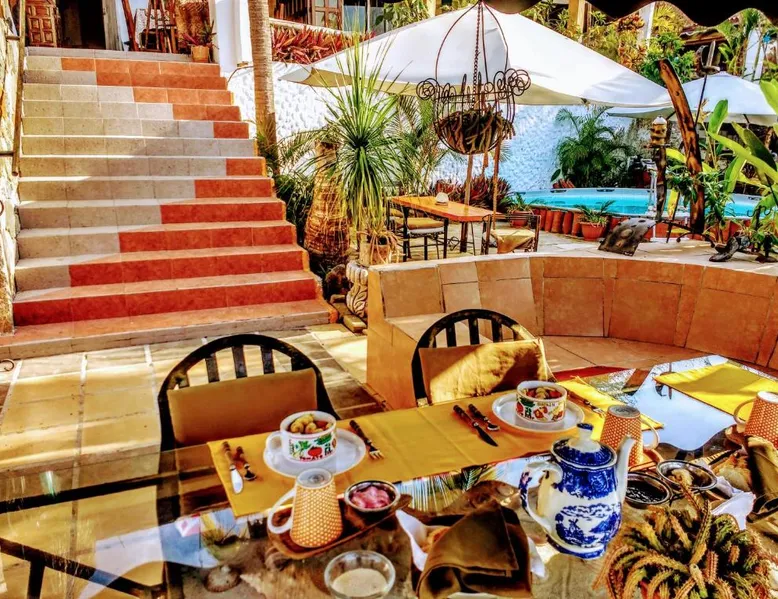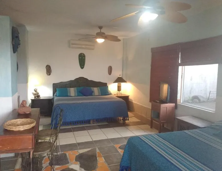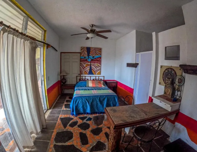 Elegant Accommodations: Casa Artista in Manzanillo offers a bed and breakfast experience with a garden, terrace, restaurant, and free WiFi. Guests enjoy air-conditioning, private bathrooms with showers, and family rooms. Comfortable Amenities: The property features a shared kitchen, coffee shop, and 24-hour front desk. Free on-site private parking is available, and pets are welcome. Additional amenities include a dining table and kitchen. Prime Location: Located less than 0.6 mi from Olas Altas Beach and 16 mi from Playa de Oro International Airport, Casa Artista is near attractions such as Las Hadas Golf Course (2.5 mi) and Swordfish Monument (9.9 mi). Guests appreciate the scenic views and excellent service. The studio provides air conditioning, as well as a private bathroom featuring a shower. The unit offers 1 bed.