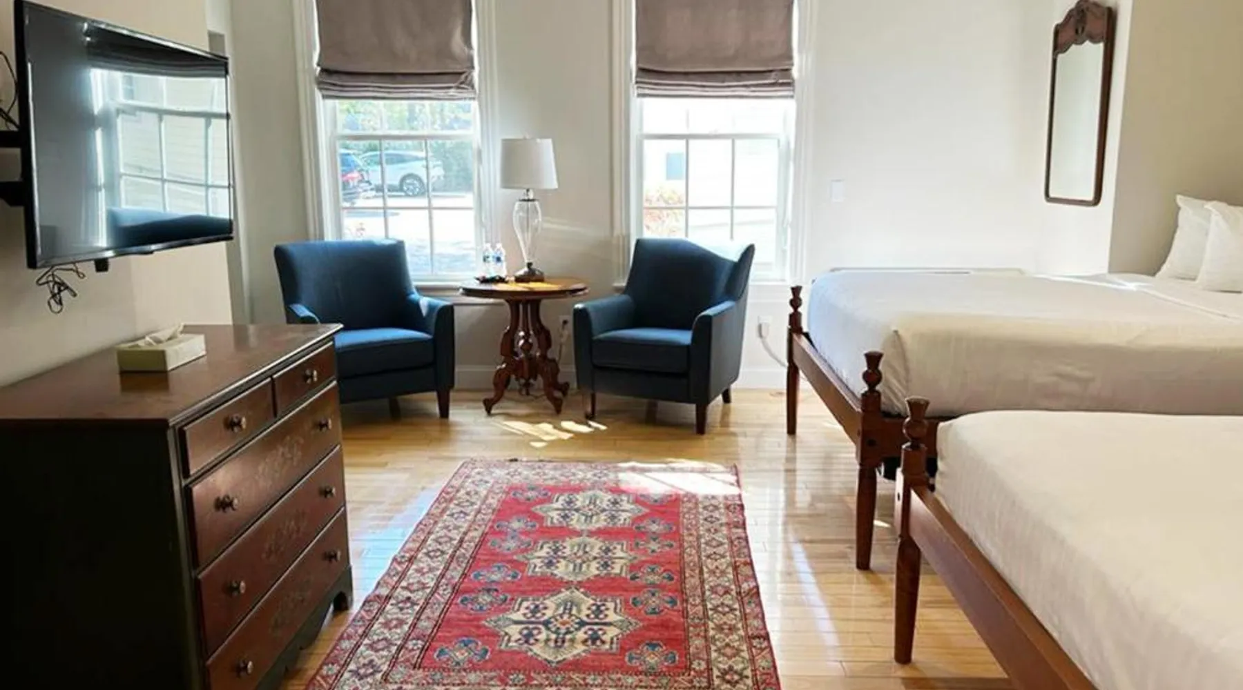 The Shire Woodstock is located in Woodstock, Vermont. Free WiFi access is available. The scenic Ottauquechee River flows behind the property. Each guest room has traditional New England furnishings. Rooms include air conditioning, cable TV, a small refrigerator, and a private bathroom. Select units are equipped with a spa bath. Pet-friendly rooms are available. If you would like a to reserve a Pet-Friendly room please reach out to us. Restrictions Apply. The Shire Woodstock offers free parking. The hotel is 1.6 mi from Suicide Six, 1 mi from Mount Tom and 1969 feet from Billings Farm Museum. Featuring free toiletries, this family room includes a private bathroom with a bath, a shower and a hairdryer. The family room features air conditioning, a private entrance, heating, a flat-screen TV with cable channels, as well as river views. The unit has 2 beds.