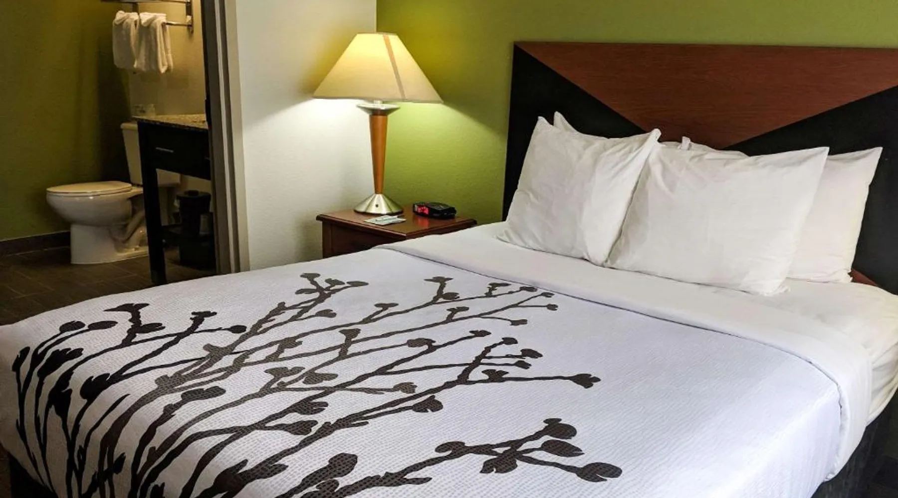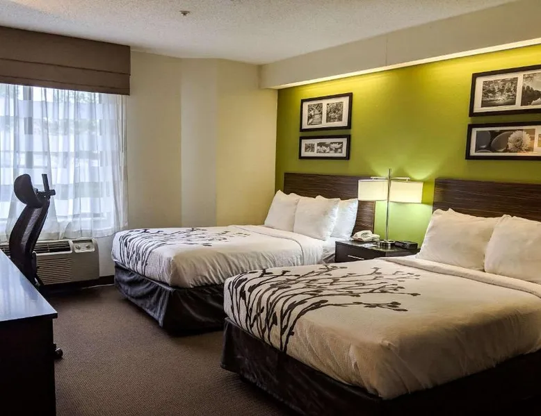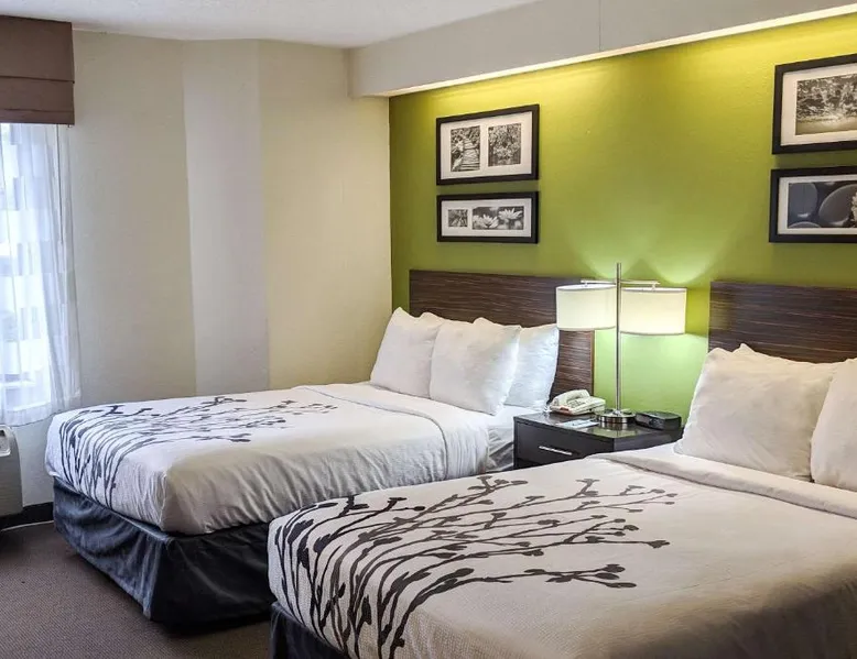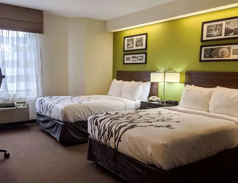 Sleep Inn Woodbridge - Potomac Mills, a Woodbridge hotel near Potomac Mills Mall The Sleep Inn Woodbridge - Potomac Mills hotel is located within one mile from the Potomac Mills shopping mall and Strayer University. This Woodbridge, VA hotel offers easy access to popular attractions like the Quantico National Cemetery, Gunston Hall Plantation and George Mason University. The Ronald Reagan Washington National Airport is 22 miles away. The Woodbridge, Virginia area offers activities to suit all visitors. History buffs will appreciate George Washington's Mount Vernon Estate & Gardens. Limited tours are available at nearby Marine Corps Base Quantico. For nature lovers, Prince William Forest Park offers hiking trails, bicycle trails and wildlife viewing opportunities. Shoppers will enjoy a unique shopping experience in the quaint village of Occoquan. There are over 30 major restaurants within two miles of the hotel, providing something for all tastes. Guests of this Woodbridge, VA hotel will enjoy the Free Morning Medley Hot Breakfast with waffles, sausage and eggs, as well as the free coffee and a free weekday newspaper. The hotel also offers free local calls. Work off the day's stress in the fitness center. Business travelers will appreciate conveniences like wireless high-speed Internet access, voice mail and access to fax and copy services. All rooms come equipped with microwaves, refrigerators, coffee makers, irons, ironing boards, hair dryers and cable television with free HBO. Select rooms feature additional amenities, like whirlpool bathtubs. Laundry facilities are located on the property for guest convenience. This air-conditioned room has 2 double beds and a TV with cable channels. A microwave and coffee maker are also provided.