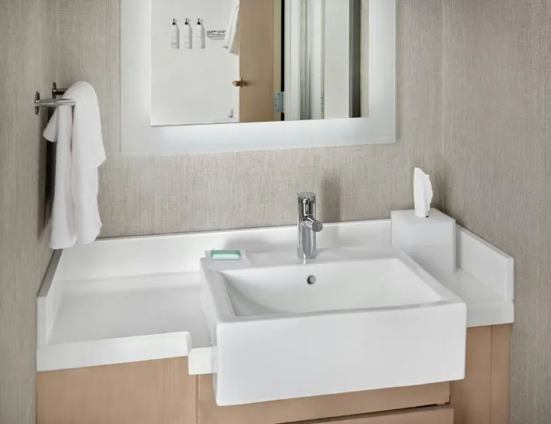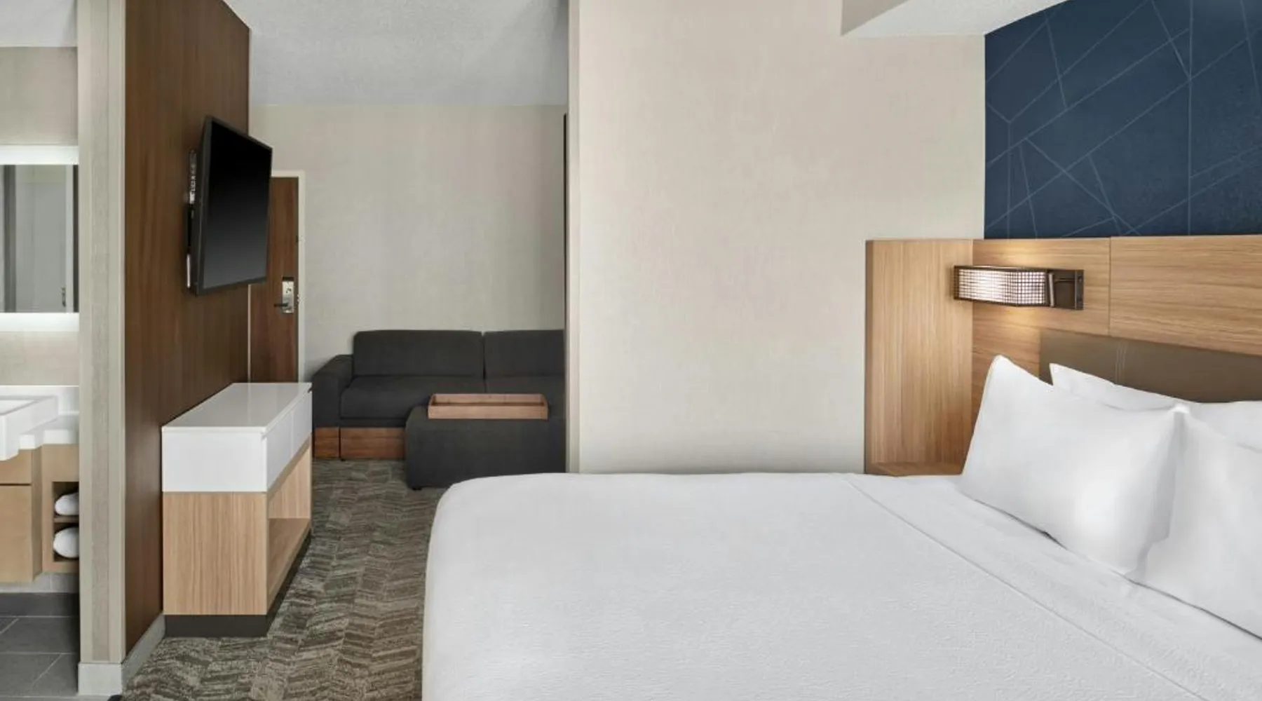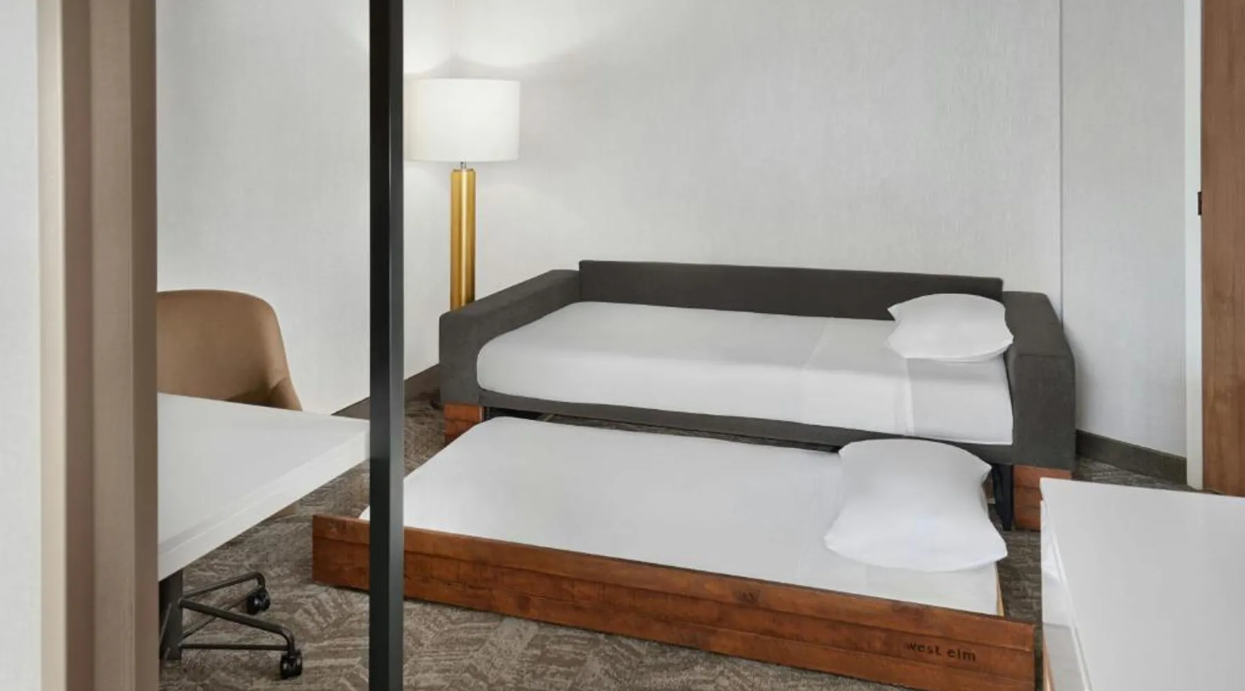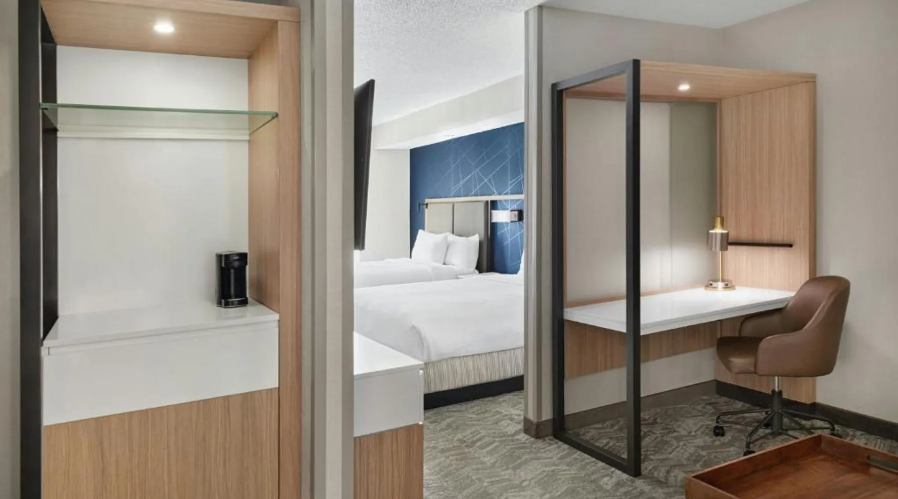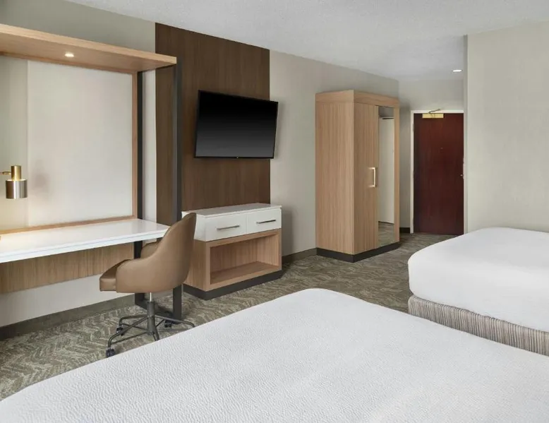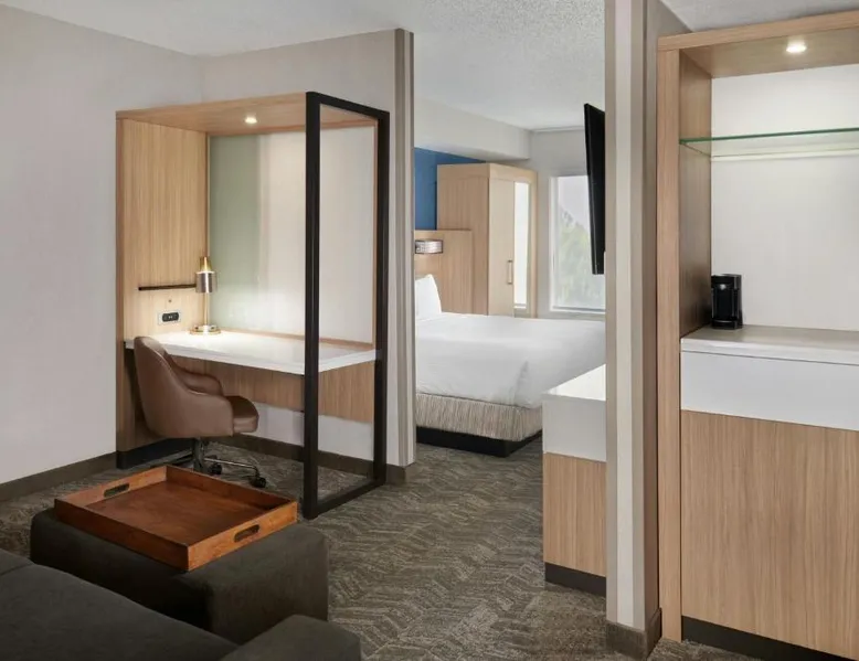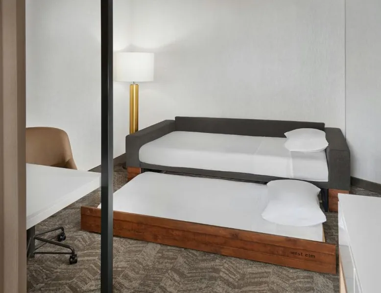 Comfortable Accommodations: SpringHill Suites by Marriott Lansing in Lansing offers family rooms with air-conditioning, private bathrooms, and modern amenities. Each room includes a work desk, sofa bed, and free WiFi. Exceptional Facilities: Guests can enjoy a fitness center, sun terrace, tennis court, indoor swimming pool, and hot tub. Additional facilities include a lounge, outdoor fireplace, and outdoor seating area. Delicious Breakfast: A continental, American, or buffet breakfast is served with warm dishes, juice, and fruits. Express check-in and check-out services enhance the stay. Prime Location: Located 7.5 mi from Capital Region International Airport, the hotel is near Michigan State University (12 mi), Jack Breslin Arena, and Wharton Center (12 mi). Free on-site private parking is available. Offering free Wi-Fi and a TV with cable channels, this room is equipped with tea and coffee-making facilities, a refrigerator and a microwave. A sofa bed is also provided.
