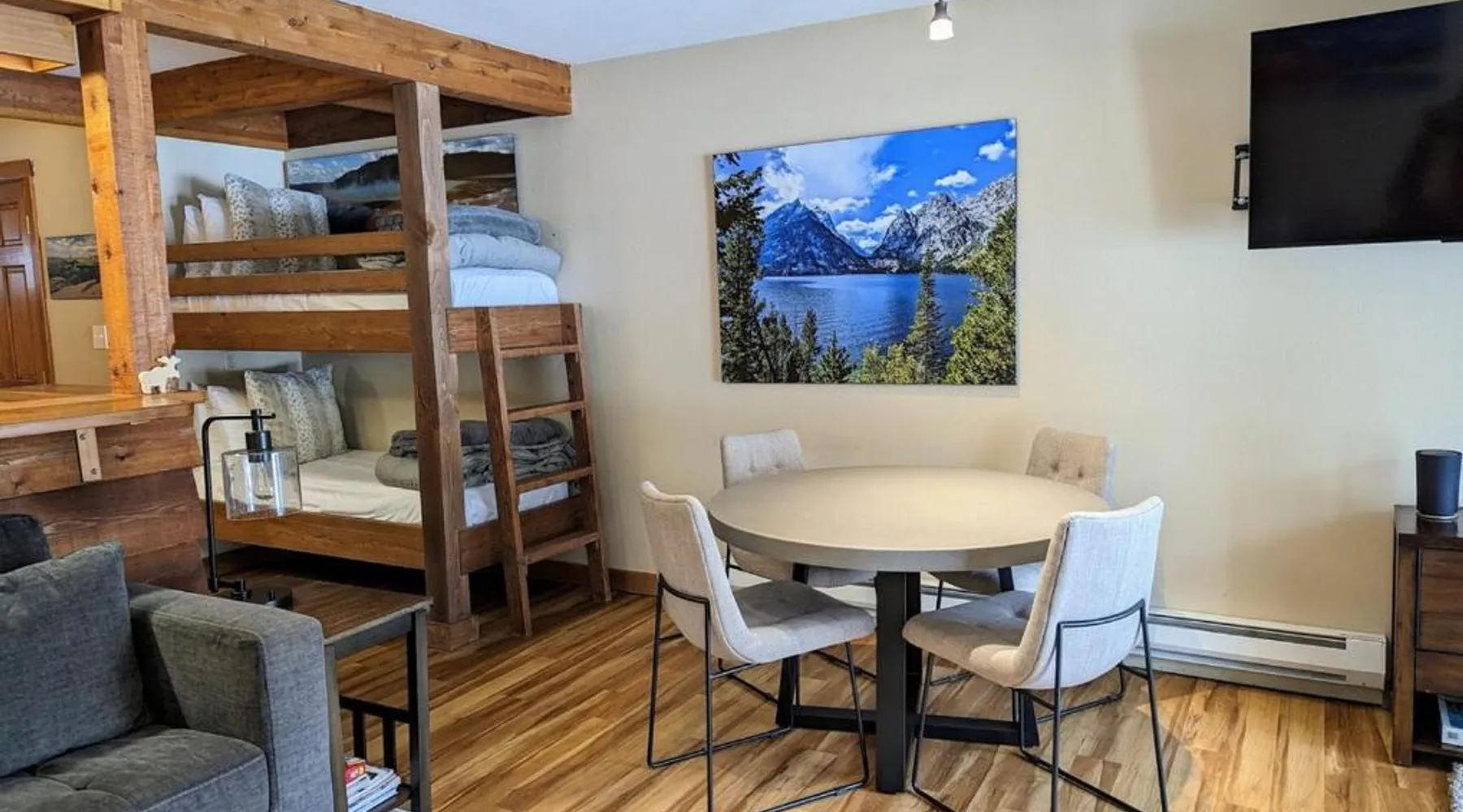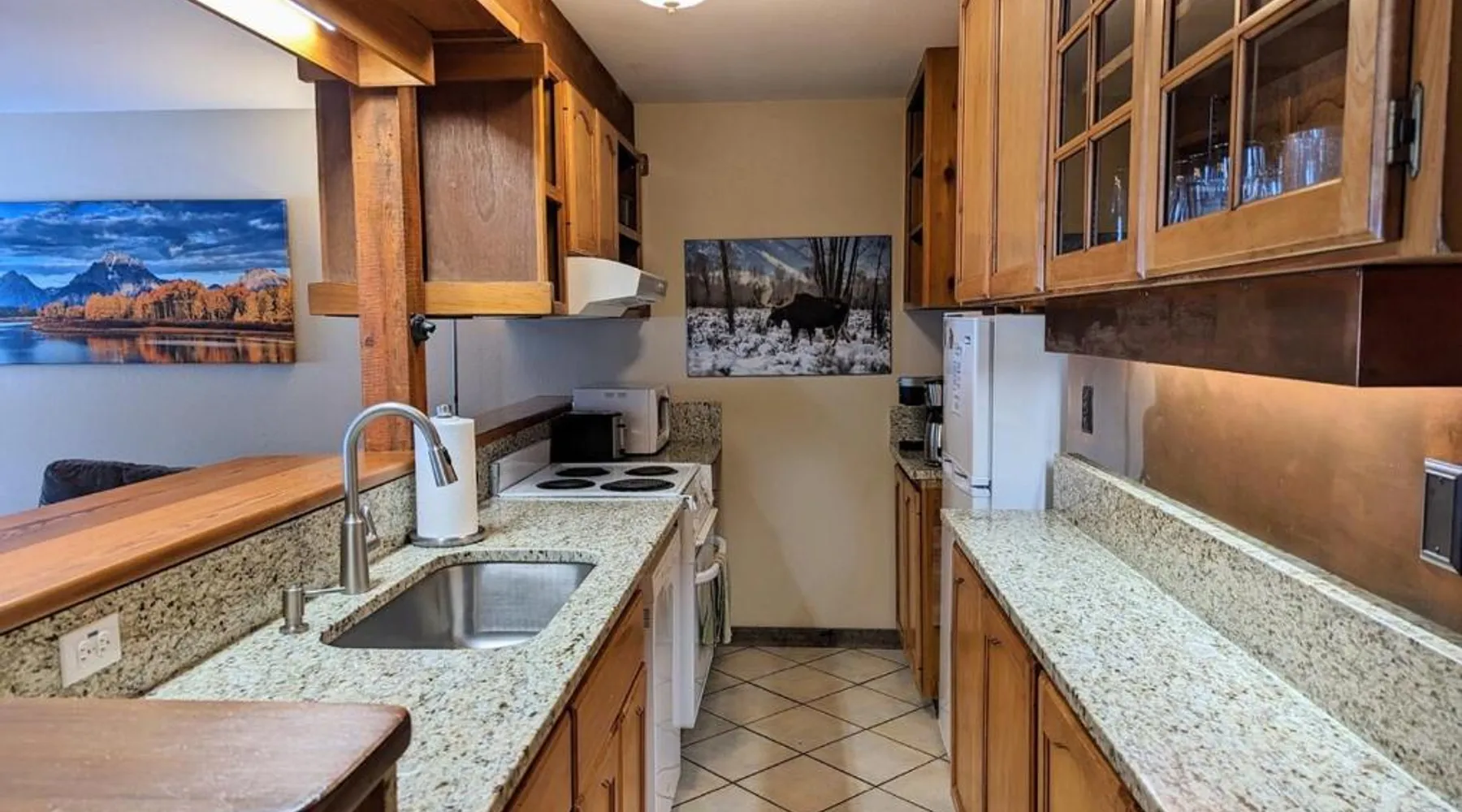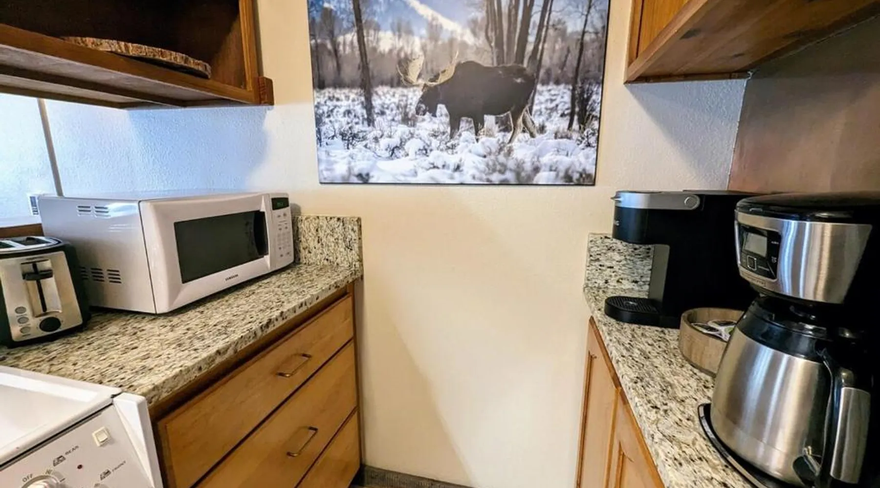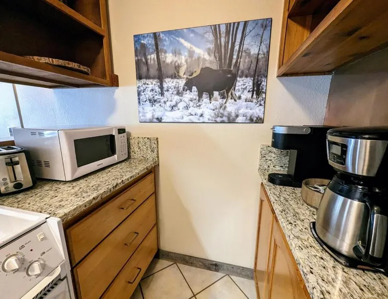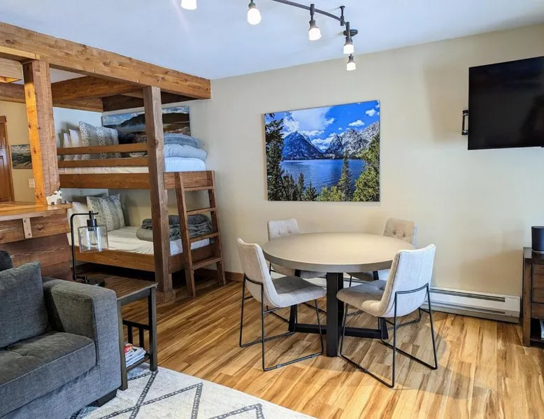 Spacious Accommodations: Spectacular Mountain Condo in Wilson offers a spacious apartment with one bedroom and a living room. The property features family rooms, ensuring comfort for all guests. Modern Amenities: Guests enjoy free WiFi, a fully equipped kitchen with a refrigerator, oven, stovetop, microwave, dishwasher, and a washing machine. Additional amenities include a fireplace, TV, work desk, and a tea and coffee maker. Convenient Location: Located 17 mi from Jackson Hole Airport, the property is 8.1 mi from the Center For The Arts, 8.7 mi from Grand Teton National Park, and 6.2 mi from Shooting Star Jackson Hole Golf Club. Skiing enthusiasts will appreciate the nearby activities. This apartment offers a fireplace. Featuring a private entrance, this spacious apartment also consists of 1 living room, 1 separate bedroom and 1 bathroom with a hairdryer. The well-equipped kitchen features a stovetop, a refrigerator, a dishwasher and an oven. The apartment provides a washing machine, a tea and coffee maker, tumble dryer, heating, as well as a TV with cable channels. The unit offers 3 beds.
