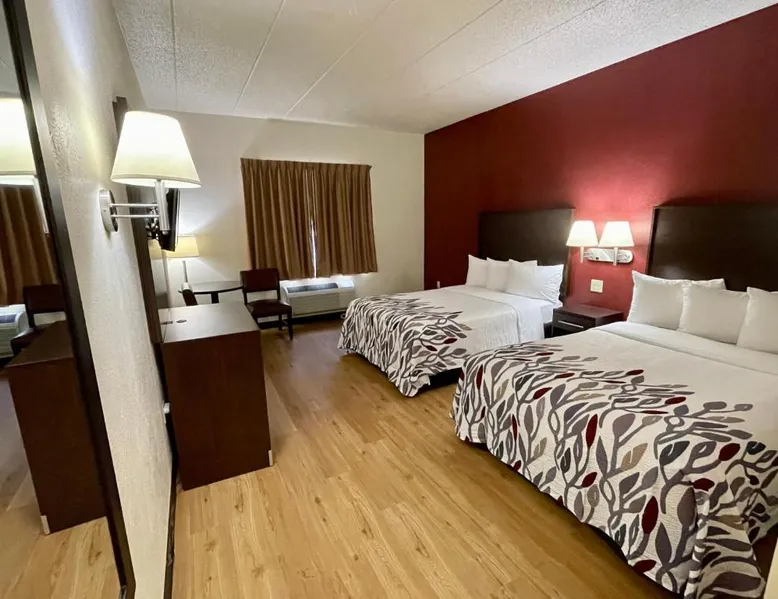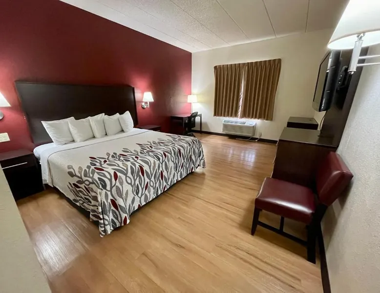 This hotel has an indoor pool and a modern fitness center on site. Located off Interstate 80 in Milan, it is 18 minutes’ drive to Cedar Point Amusement Park. Free WiFi access is available. A flat-screen TV is standard in all rooms at the Red Roof Inn Sandusky – Milan. Fresh linens and free toiletries are provided. Select rooms have a microwave and refrigerator. A 24-hour front desk, meeting facilities, and a vending machine are available for guests’ convenience. The Sandusky - Milan Red Roof Inn offers free parking. Free coffee is served in the lobby. The Edison Birthplace Museum is 2.5 mi from the hotel. The family friendly Kalahri Waterpark Resort & Convention Center is 3.7 mi away. This room features a microwave, refrigerator and a flat-screen cable TV. There is also a coffee machine and free toiletries.