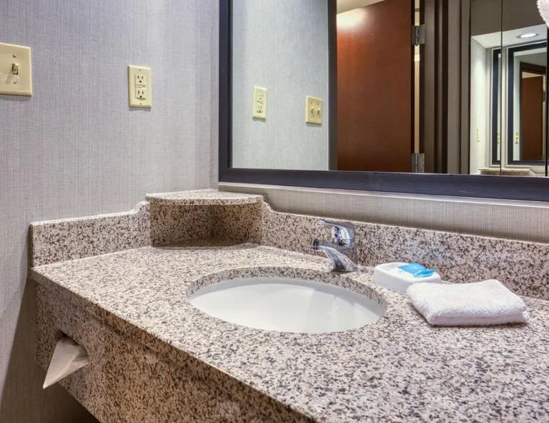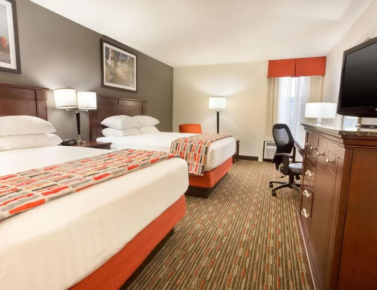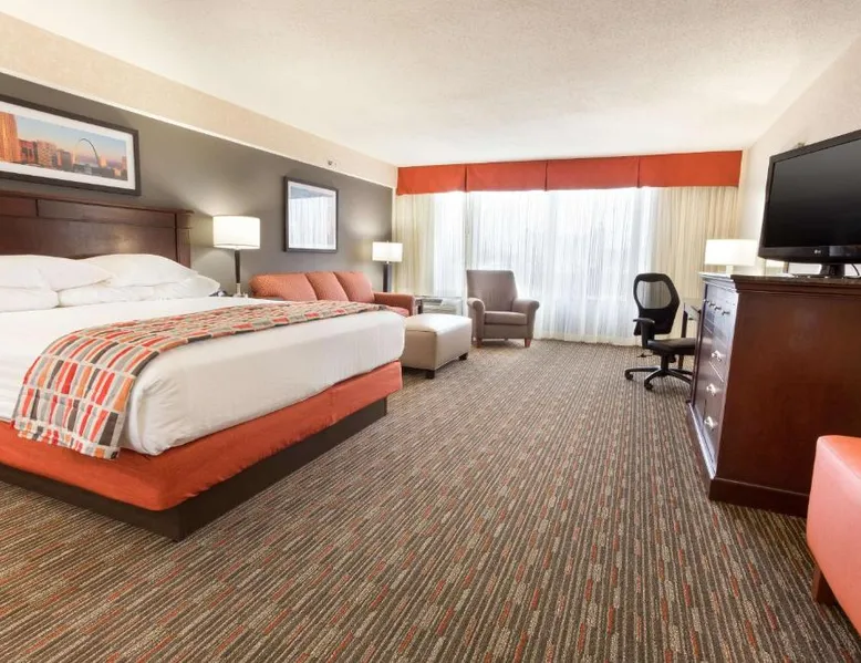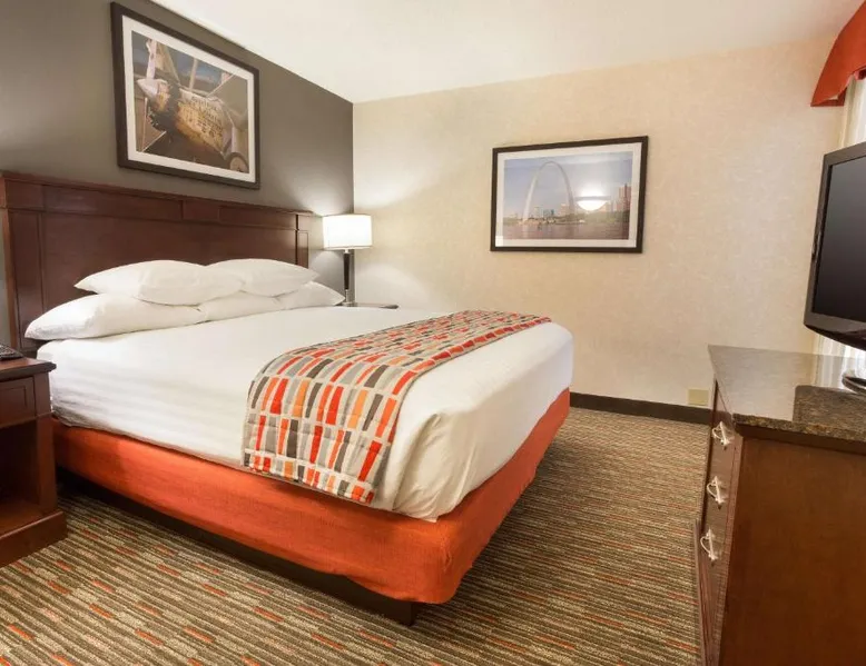 Less than 2 minutes’ drive from the Lambert St. Louis International Airport, this hotel offers free Wi-Fi and a flat-screen TV in every guest room. A 24-hour fitness center is featured on site. A microwave and refrigerator are included in all rooms at Drury Inn St. Louis Airport. Free toiletries are also provided in each guest room. Guests can enjoy a swim in the indoor pool or relax in the hot tub at Saint Louis Airport Drury Inn. Laundry facilities and a business center are also available on site. A hot breakfast with fresh fruit, bagels, pastries and cereals is offered each morning. The Gateway Arch, Busch Stadium and Saint Louis city center are within 15 miles of this hotel. Just off Interstate 70, this hotel is less than 10 minutes’ drive from the Verizon Wireless Amphitheater. This room has a cable TV, microwave, and refrigerator. Please note that this room is on an upper floor.