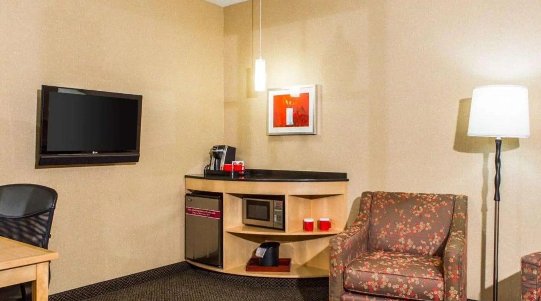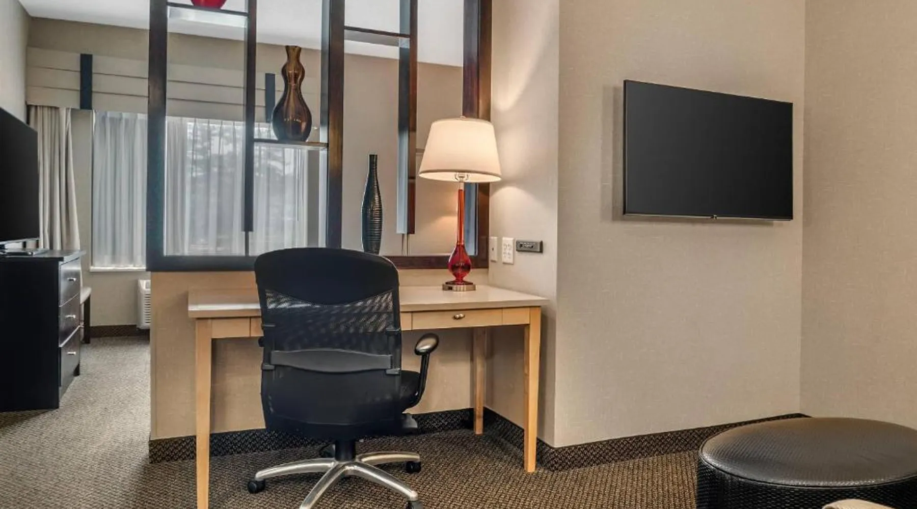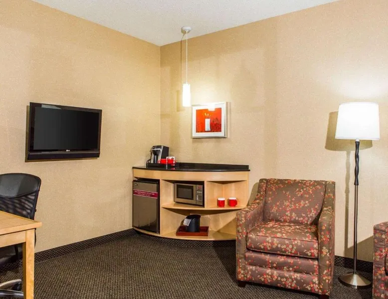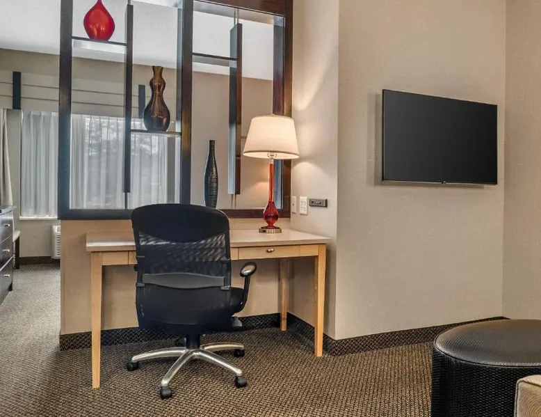 The 100 percent nonsmoking Cambria Hotel Traverse City provides luxury accommodations in the coastal town of Traverse City. This hotel provides easy access to many nearby institutions like the Munson Medical Center, Interlochen Center for the Arts, Northwestern Michigan College and the Cherry Capital Airport, while the downtown area is a major commercial and cultural nexus, and home to businesses and events like the National Cherry Festival, the Traverse City Film Festival and the City Opera House. Our luxury hotel offers both business and leisure travelers exclusive amenities that will make you feel right at home, including: Barista coffee bar in the lobby, state-of-the-art fitness center, indoor pool and hot tub, a contemporary bistro-style restaurant serving breakfast, dinner and full-service bar, and a sundry shop open 24 hours a day. The hotel has free wireless high-speed Internet access and remote printing throughout the hotel All suites at the hotel feature luxurious bedding and upscale amenities, including: 25% larger accommodations than standard industry, two flat-screen LCD televisions in living/work room and bedroom, refrigerator, microwave, spa-like baths. Our meeting and banquet facilities feature: Boardroom for up to 14 people, meeting/banquet space for up to 60 people. Relax at the end of the day in our atrium-style lobby with club-lounge seating areas and the big-screen media wall. Free airport shuttle services are also provided. Boasting free Wi-Fi and a flat-screen TV with cable channels, this suite is equipped with tea and coffee-making facilities, a refrigerator and a microwave.