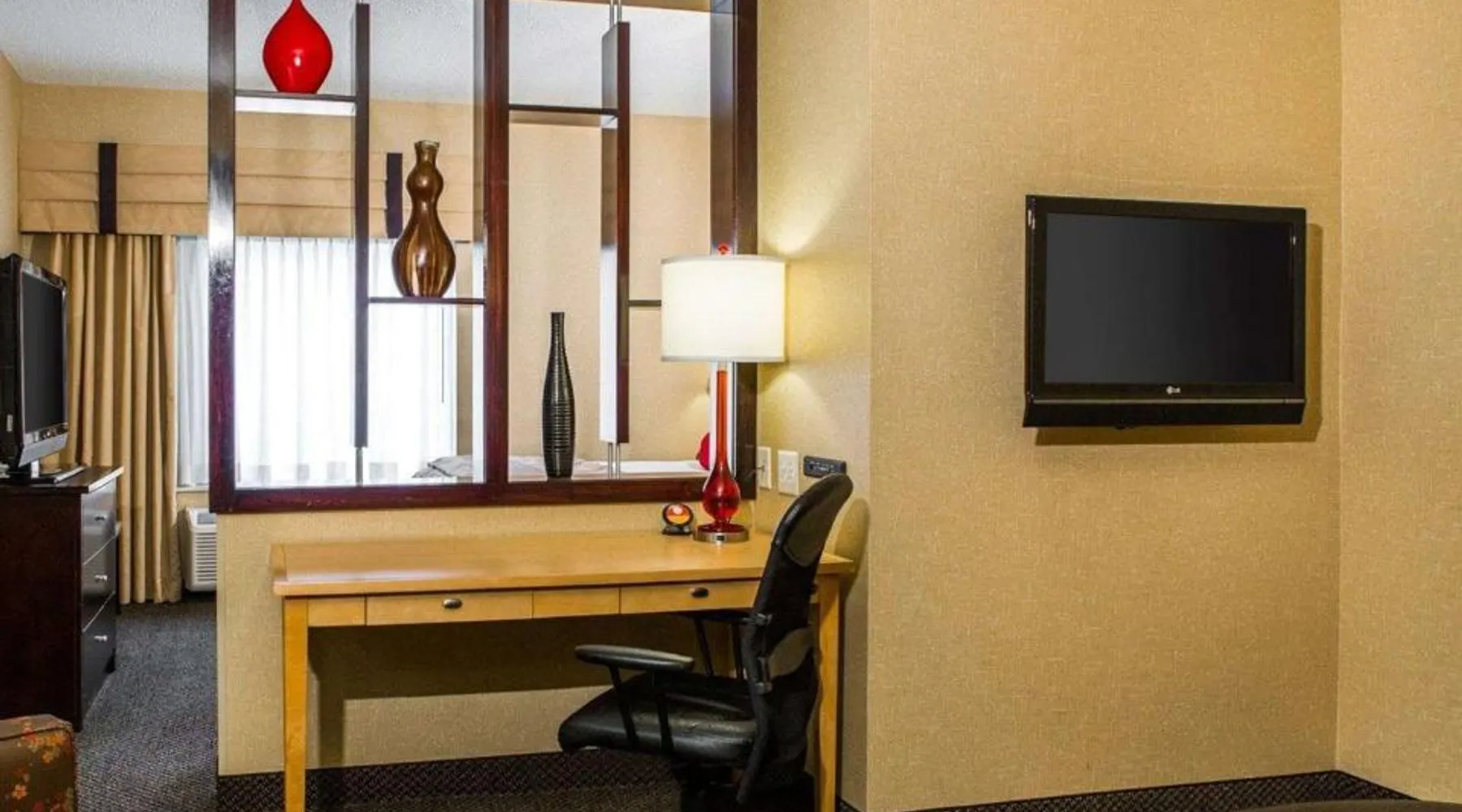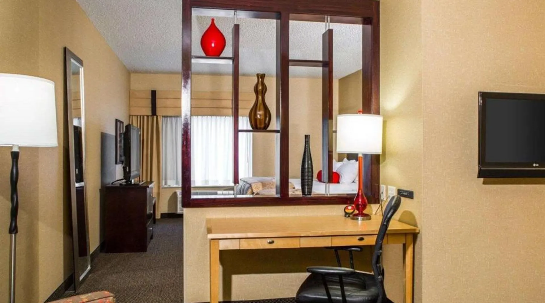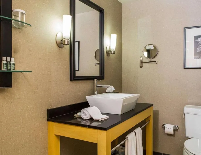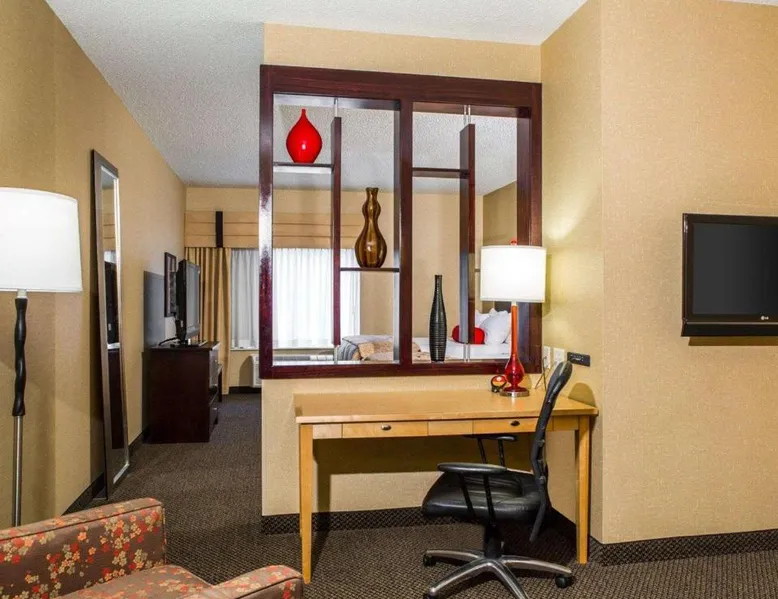 The 100 percent nonsmoking Cambria Hotel Traverse City provides luxury accommodations in the coastal town of Traverse City. This hotel provides easy access to many nearby institutions like the Munson Medical Center, Interlochen Center for the Arts, Northwestern Michigan College and the Cherry Capital Airport, while the downtown area is a major commercial and cultural nexus, and home to businesses and events like the National Cherry Festival, the Traverse City Film Festival and the City Opera House. Our luxury hotel offers both business and leisure travelers exclusive amenities that will make you feel right at home, including: Barista coffee bar in the lobby, state-of-the-art fitness center, indoor pool and hot tub, a contemporary bistro-style restaurant serving breakfast, dinner and full-service bar, and a sundry shop open 24 hours a day. The hotel has free wireless high-speed Internet access and remote printing throughout the hotel All suites at the hotel feature luxurious bedding and upscale amenities, including: 25% larger accommodations than standard industry, two flat-screen LCD televisions in living/work room and bedroom, refrigerator, microwave, spa-like baths. Our meeting and banquet facilities feature: Boardroom for up to 14 people, meeting/banquet space for up to 60 people. Relax at the end of the day in our atrium-style lobby with club-lounge seating areas and the big-screen media wall. Free airport shuttle services are also provided. Boasting free Wi-Fi and a flat-screen TV with cable channels, this suite is equipped with tea and coffee-making facilities, a refrigerator and a microwave.