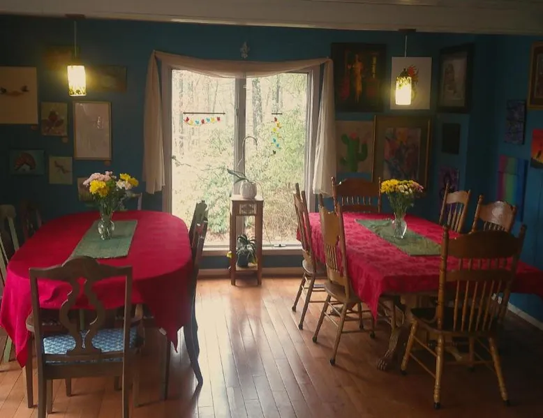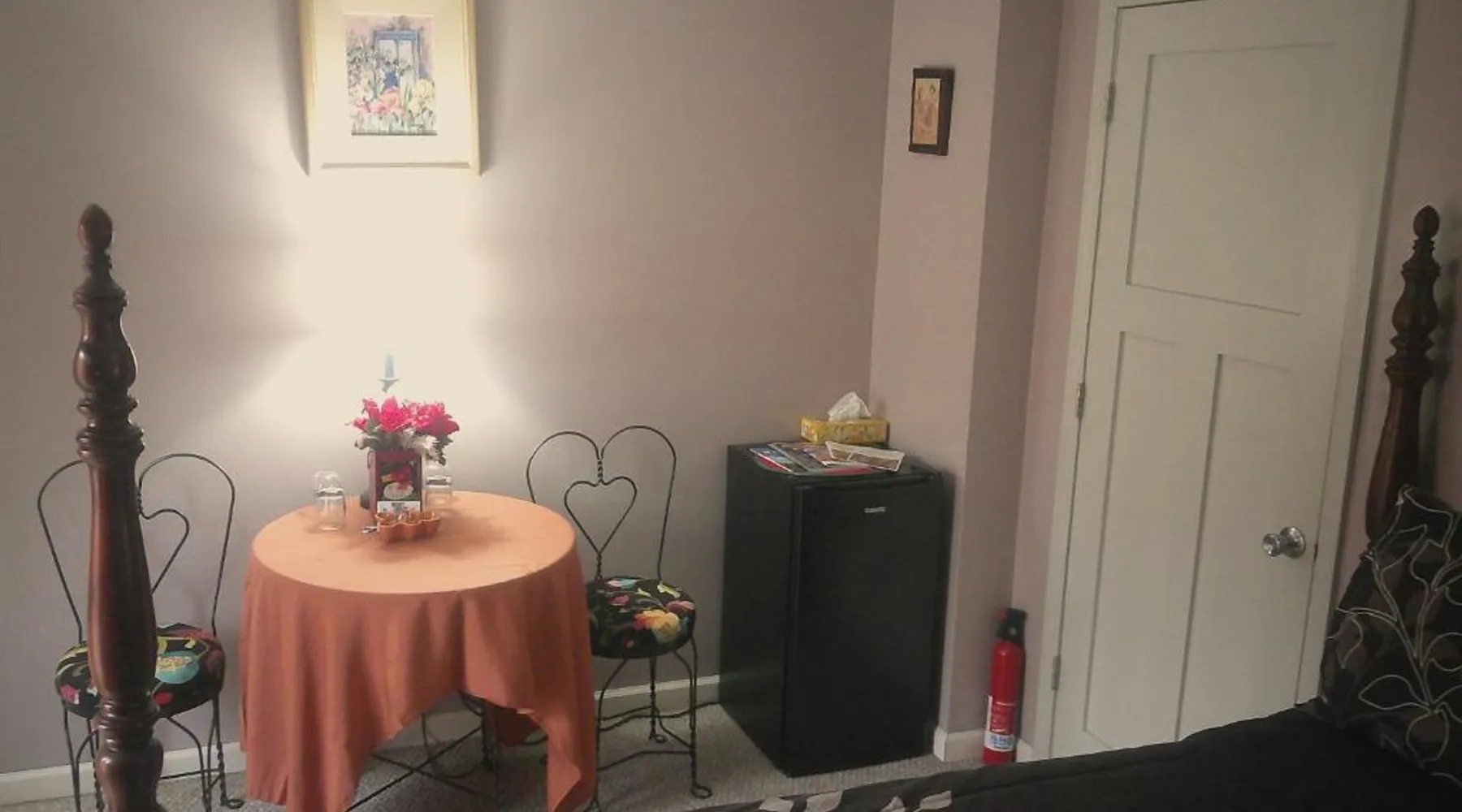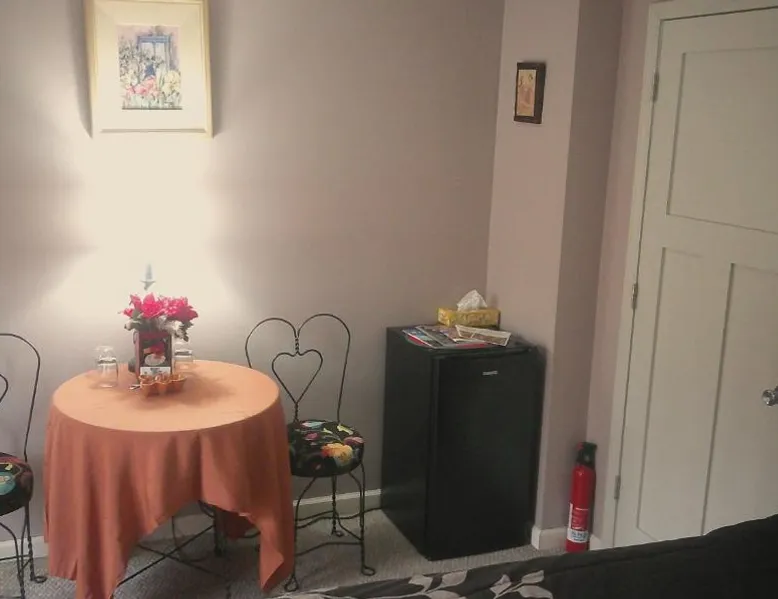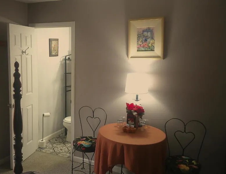 Comfortable Accommodations: Lil Black Bear Inn in Nashville offers 4-star bed and breakfast rooms with private bathrooms, air-conditioning, and free WiFi. Each room includes a balcony or patio with mountain views, a work desk, and a seating area. Relaxing Facilities: Guests can enjoy an outdoor fireplace, hot tub, and full-day security. Additional amenities include a refrigerator, TV, and wardrobe, ensuring a pleasant stay. Convenient Location: Located 57 mi from Indianapolis International Airport, the property is near attractions such as Indiana University (27 mi) and Bloomington Memorial Stadium (27 mi). Highly rated for its breakfast, room comfort, and attentive host. Also known as the Lavender Room, this room has a fireplace, 2-person spa bath and a balcony with a view of the garden.