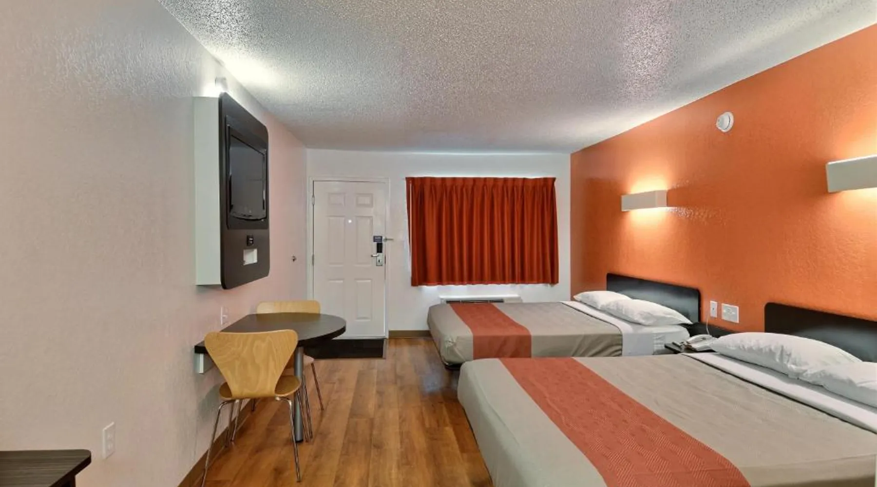 Comfortable Accommodations: Motel 6-Tewksbury, MA - Boston offers comfortable rooms with air-conditioning, private bathrooms, baths, refrigerators, microwaves, showers, and TVs. Free WiFi is available in public areas. Convenient Facilities: The hotel features a 24-hour front desk, ensuring guests receive assistance at any time. Additional amenities include a pet-friendly policy and free parking. Prime Location: Located in Tewksbury, the property is 19 mi from Minute Man National Historical Park, 25 mi from Cambridge College and Inman Square, and 27 mi from Harvard University and Harvard Square. Guests appreciate the quietness of the area and the attentive staff. This air-conditioned quadruple room includes a TV with cable channels and a private bathroom. The unit offers 2 beds.