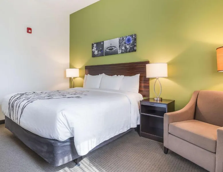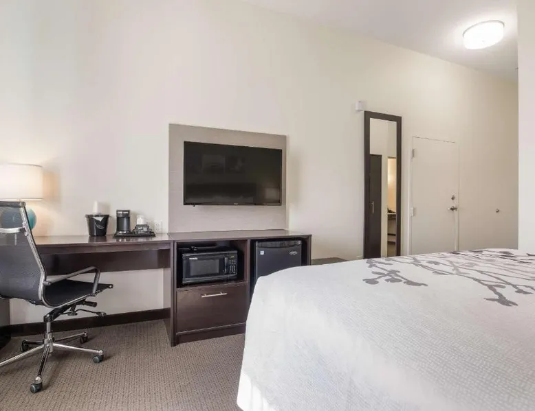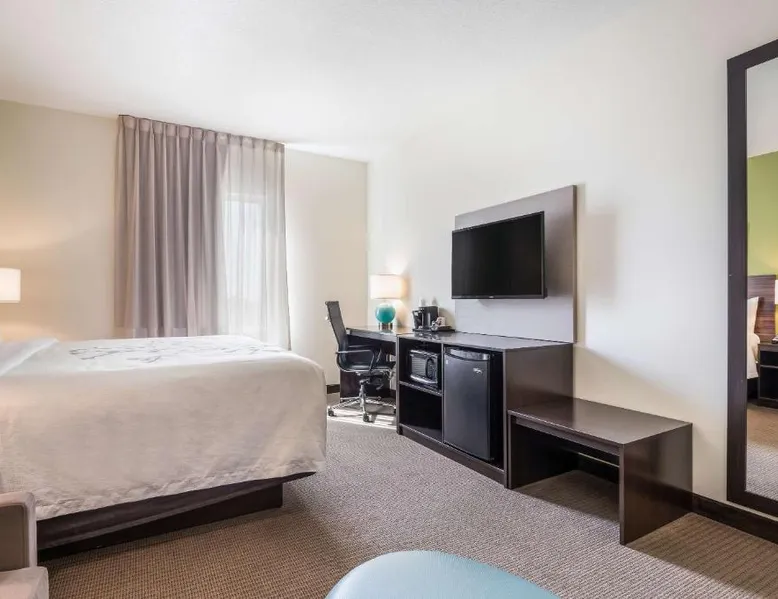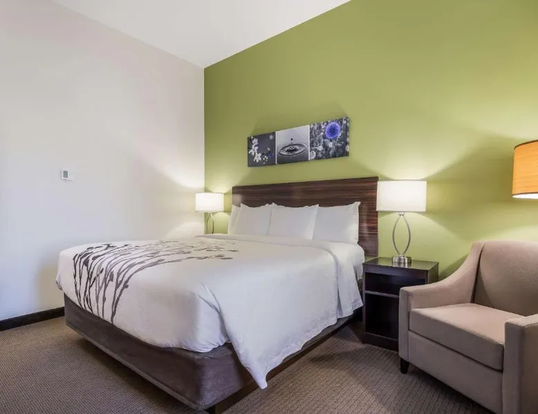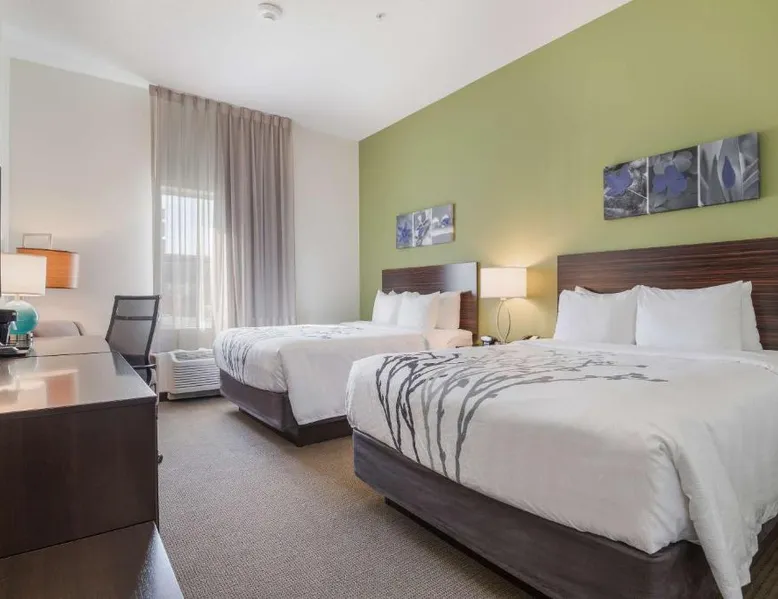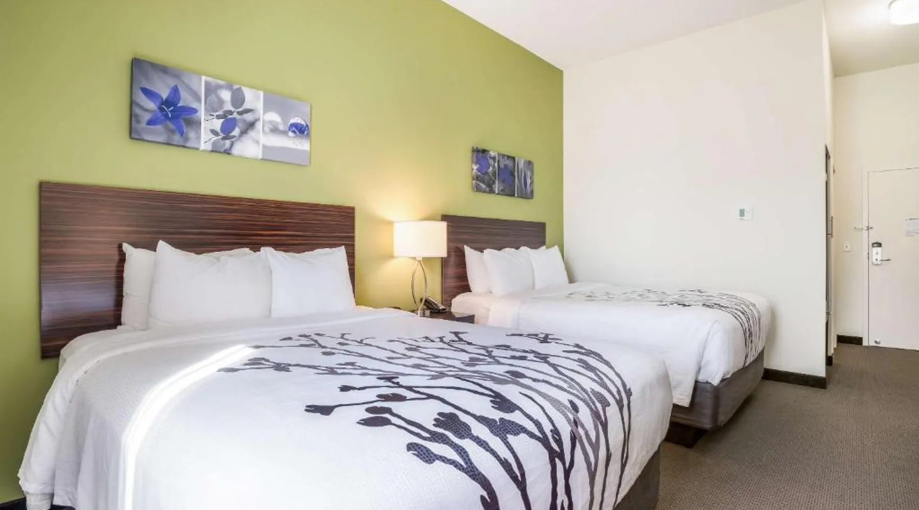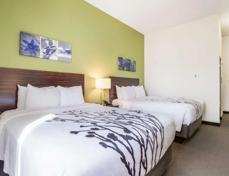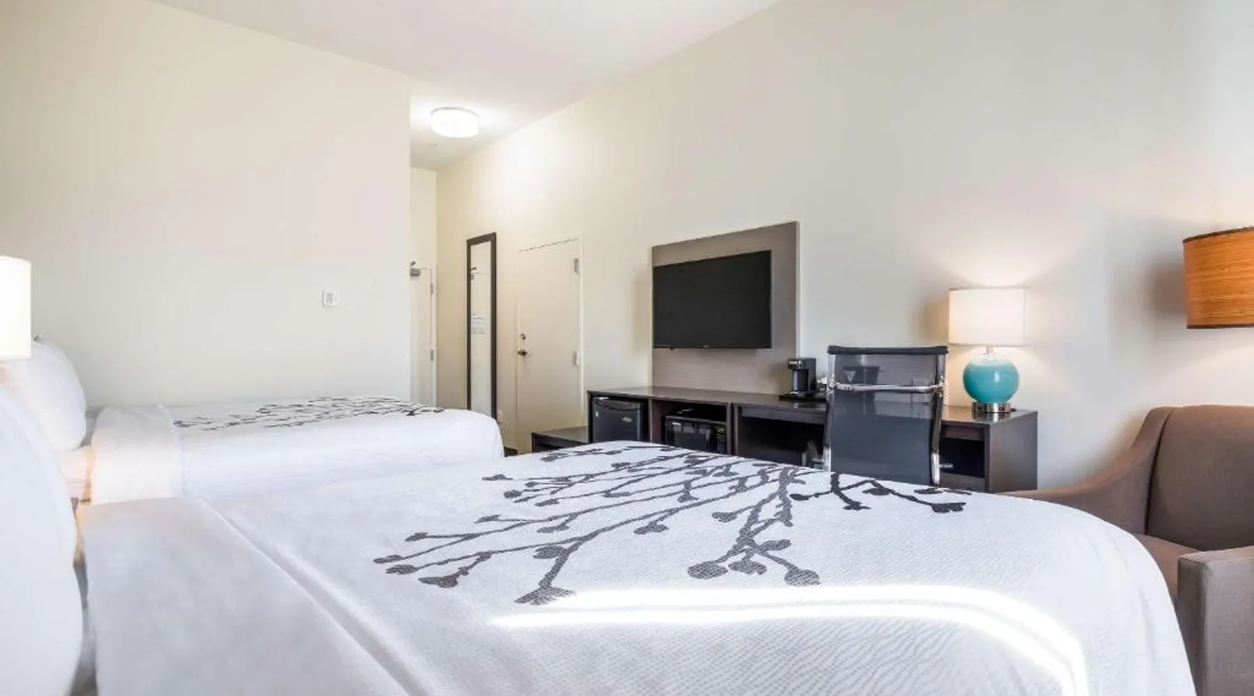 Comfortable Accommodations: Sleep Inn & Suites Park City-Wichita North in Park City offers family rooms with private bathrooms. Each room includes a work desk, TV, and free WiFi. Leisure Facilities: Guests can enjoy a fitness center, indoor swimming pool, and outdoor seating area. Additional amenities include a lounge, fitness room, and business area. Breakfast and Parking: A continental buffet breakfast with warm dishes, fresh pastries, and juice is served daily. Free on-site private parking is available. Location and Attractions: Located 13 mi from Wichita Dwight D. Eisenhower National Airport, the hotel is near Wichita State University (6.8 mi), Entrust Bank ARENA and Century II Convention Center (9.3 mi each), and All Star Adventures (12 mi). This quadruple room provides a TV. The unit offers 2 beds.