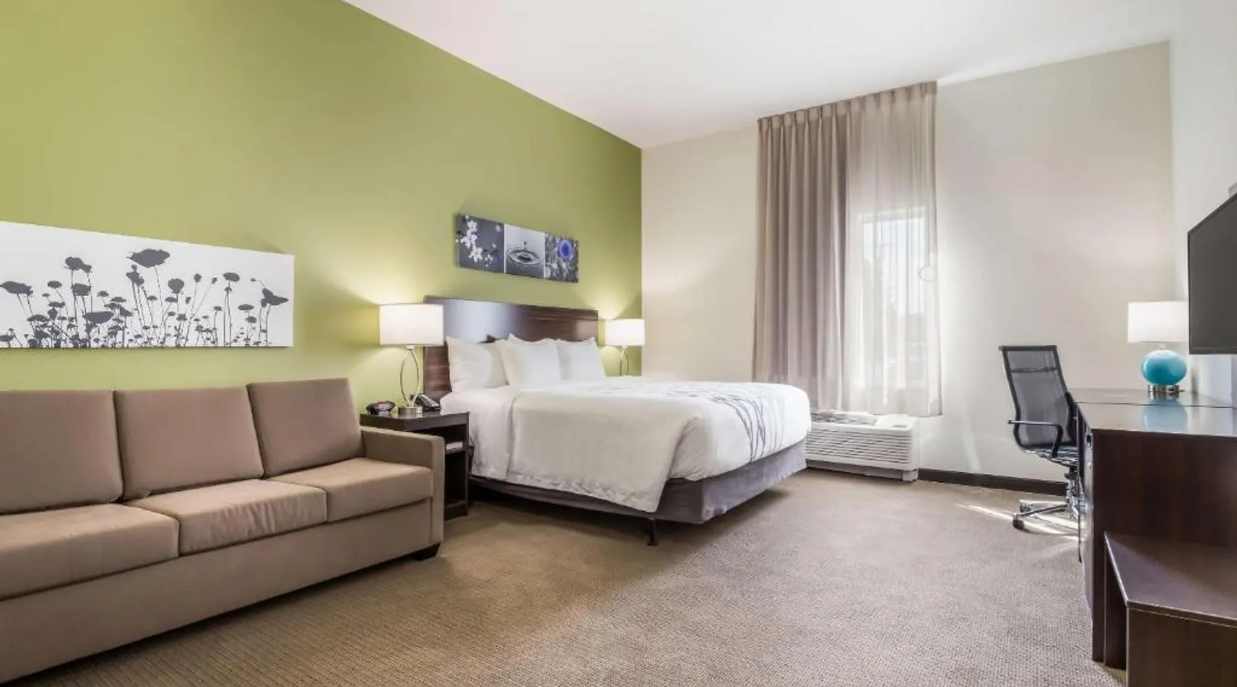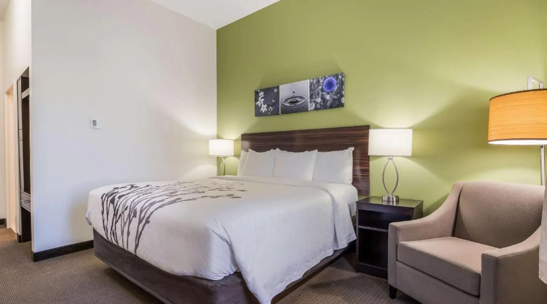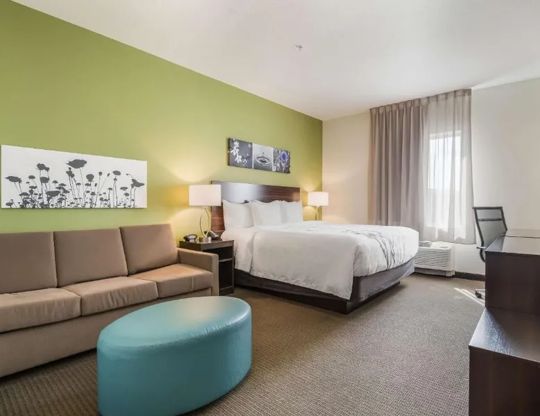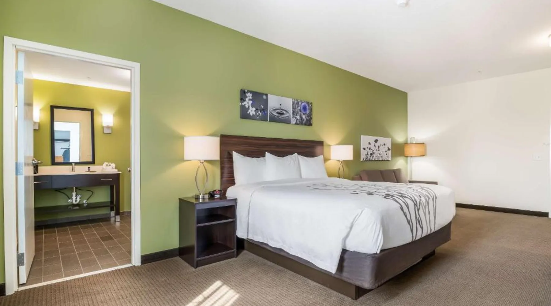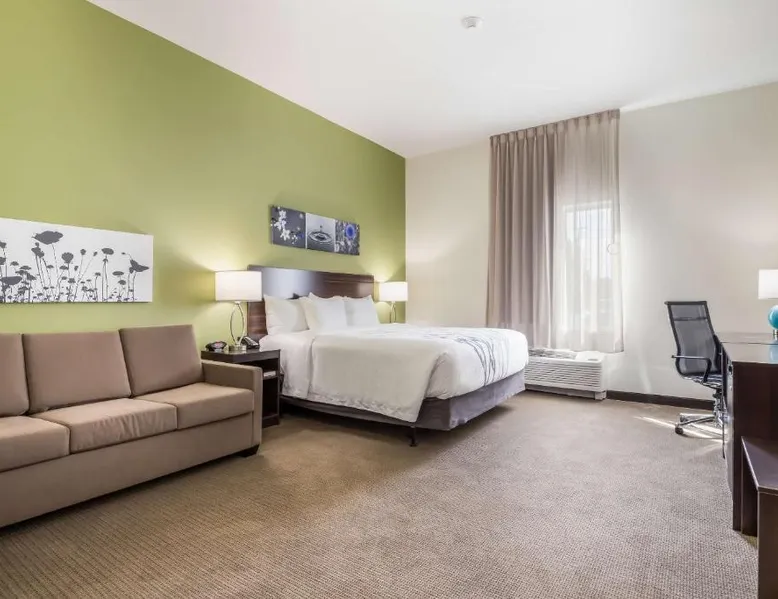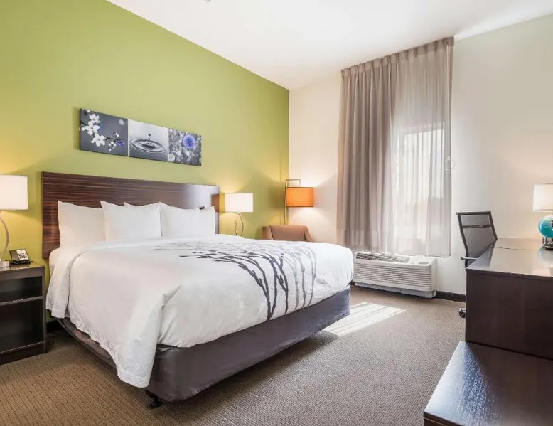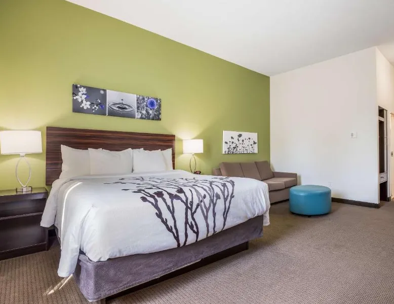 Comfortable Accommodations: Sleep Inn & Suites Park City-Wichita North in Park City offers family rooms with private bathrooms. Each room includes a work desk, TV, and free WiFi. Leisure Facilities: Guests can enjoy a fitness center, indoor swimming pool, and outdoor seating area. Additional amenities include a lounge, fitness room, and business area. Breakfast and Parking: A continental buffet breakfast with warm dishes, fresh pastries, and juice is served daily. Free on-site private parking is available. Location and Attractions: Located 13 mi from Wichita Dwight D. Eisenhower National Airport, the hotel is near Wichita State University (6.8 mi), Entrust Bank ARENA and Century II Convention Center (9.3 mi each), and All Star Adventures (12 mi). This quadruple room provides a TV. The unit offers 2 beds.