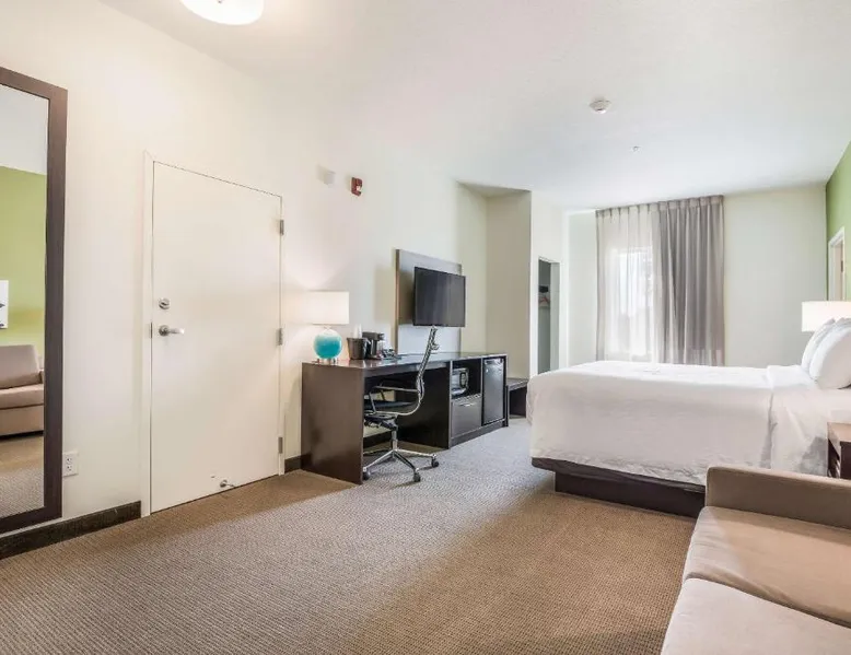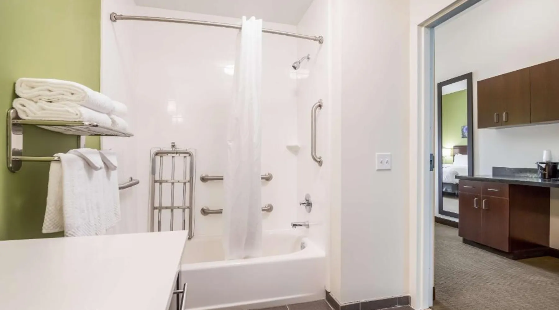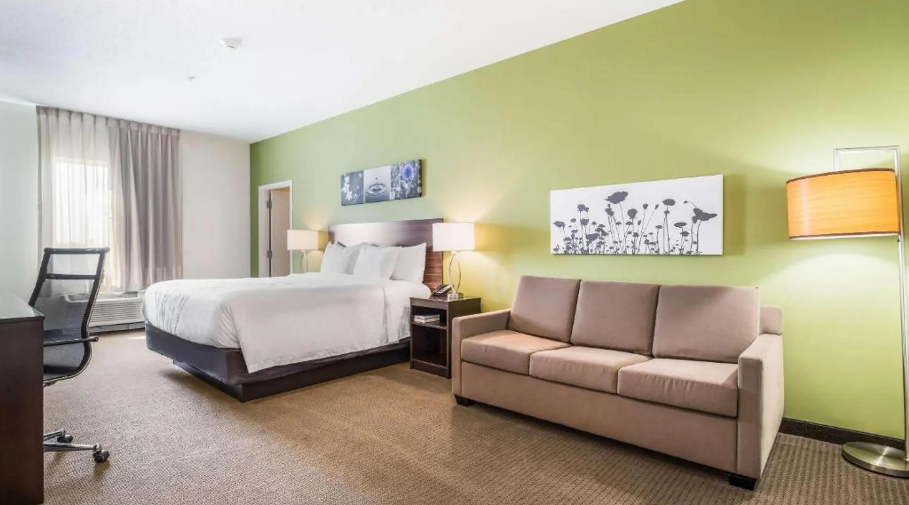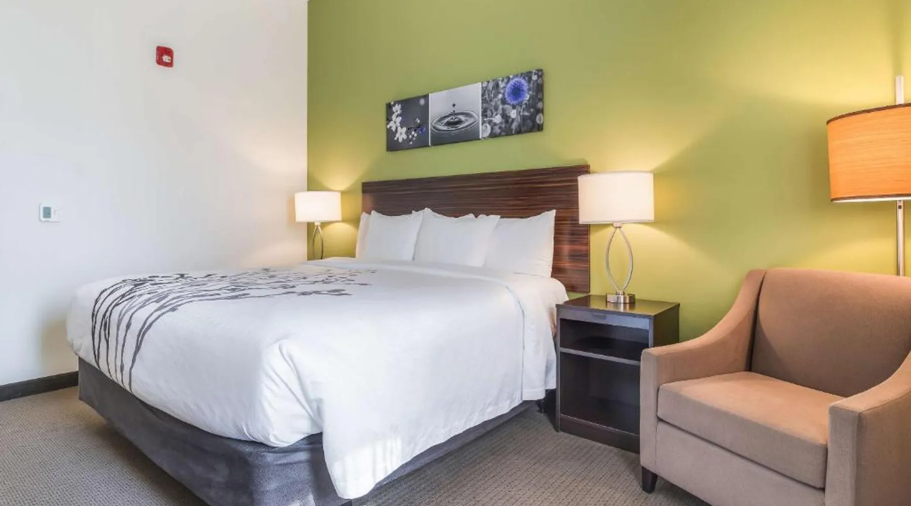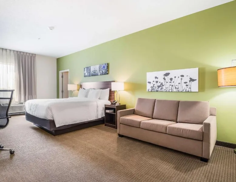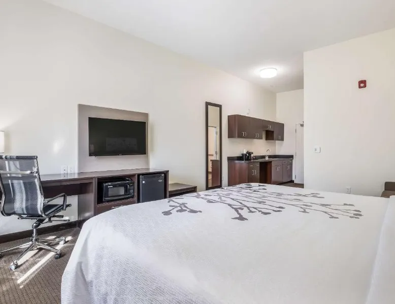Comfortable Accommodations: Sleep Inn & Suites Park City-Wichita North in Park City offers family rooms with private bathrooms. Each room includes a work desk, TV, and free WiFi. Leisure Facilities: Guests can enjoy a fitness center, indoor swimming pool, and outdoor seating area. Additional amenities include a lounge, fitness room, and business area. Breakfast and Parking: A continental buffet breakfast with warm dishes, fresh pastries, and juice is served daily. Free on-site private parking is available. Location and Attractions: Located 13 mi from Wichita Dwight D. Eisenhower National Airport, the hotel is near Wichita State University (6.8 mi), Entrust Bank ARENA and Century II Convention Center (9.3 mi each), and All Star Adventures (12 mi). This quadruple room provides a TV. The unit offers 2 beds.