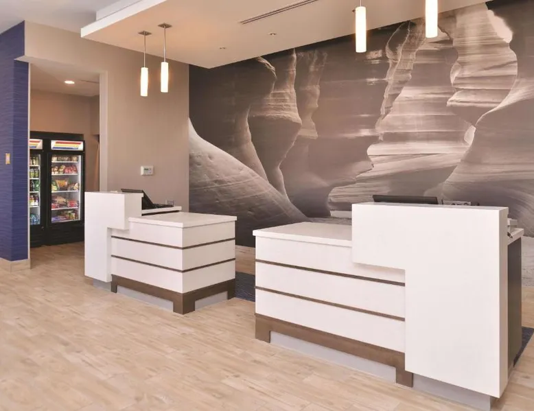 8.1 mi from Lake Powell, La Quinta Inn & Suites Page at Lake Powell is located in Page and offers rooms with free WiFi. There is an outdoor pool and a hot tub. Lake Powell Campground is 1.3 mi from the property. The rooms in the hotel are equipped with a TV. The rooms are equipped with a private bathroom with a bath or shower. A continental, buffet or American breakfast is available every morning at the property. The hotel offers a 24-hour front desk and a business center. Rainbow Bridge National Monument is 30 mi from the accommodations. The spacious double room features air conditioning, a wardrobe, as well as a private bathroom boasting a bath or a shower and a hairdryer. This double room has a carpeted floor, heating and a TV with cable channels. The unit has 1 bed.