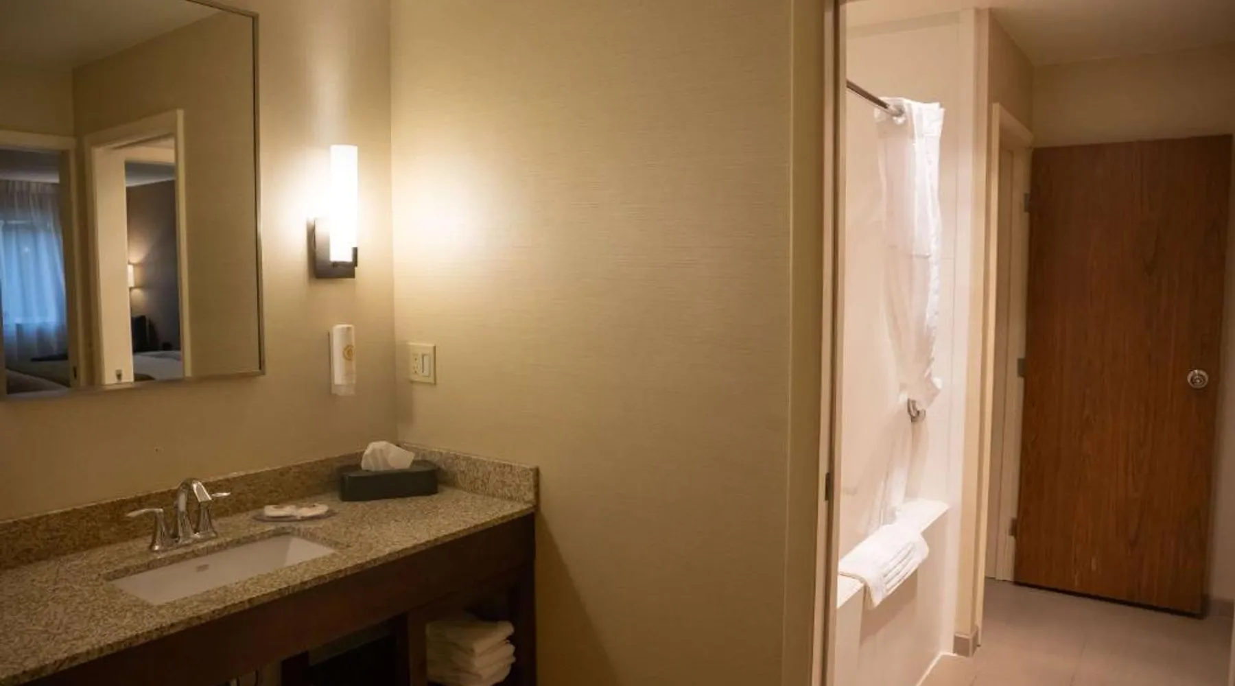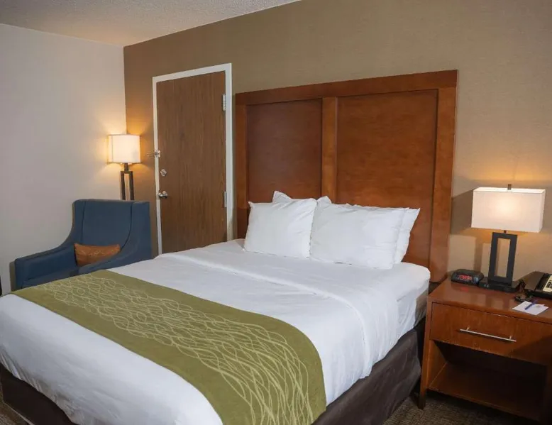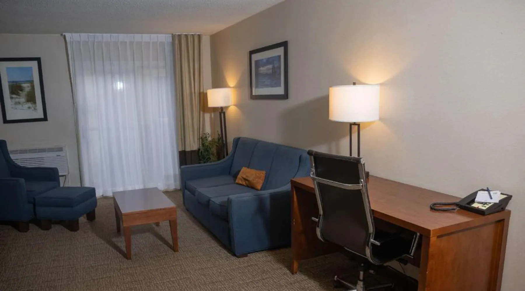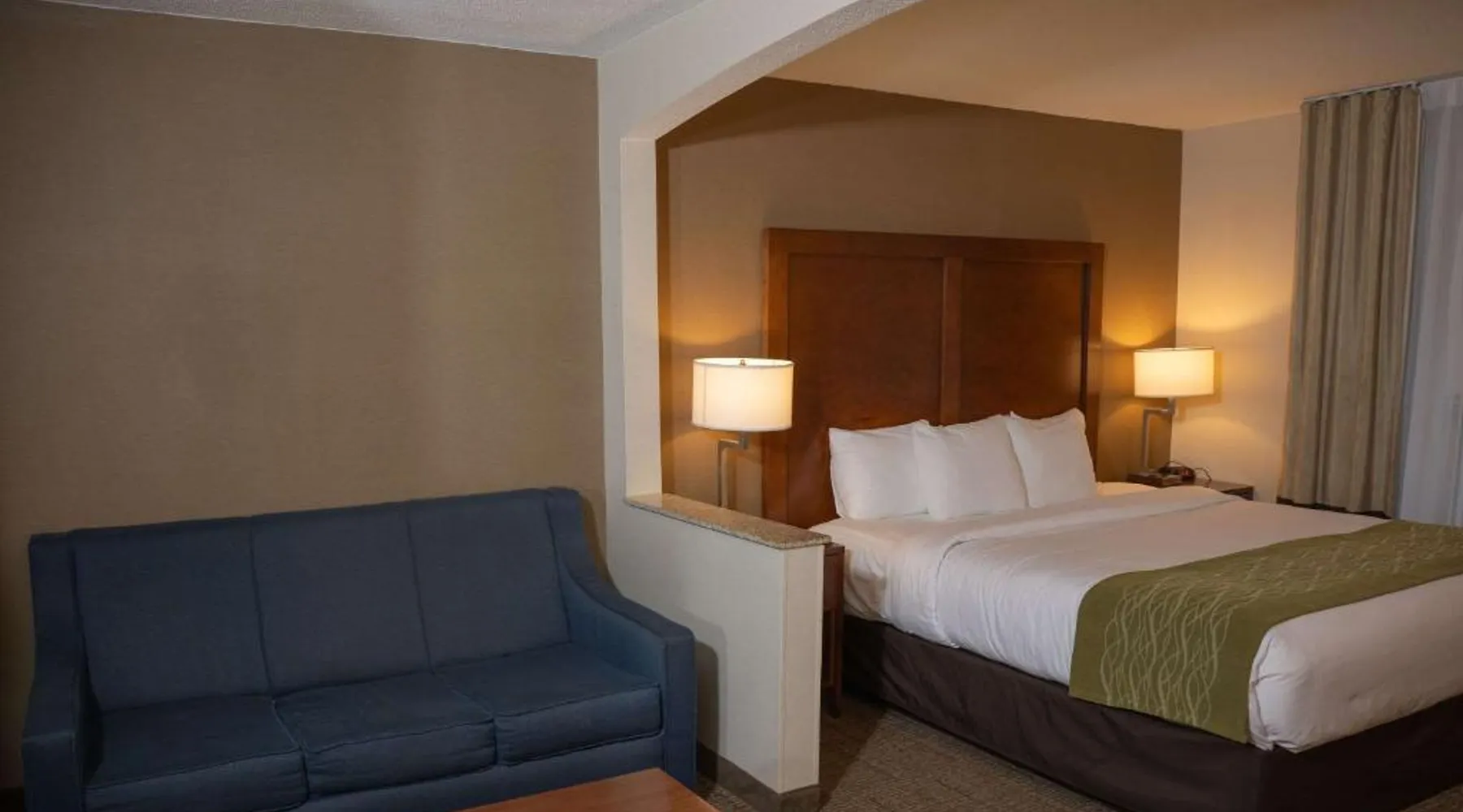 Located directly off Interstate 90, the Comfort Inn & Suites Erie - Splash Lagoon Indoor Waterpark Erie is connected to Pennsylvania's largest indoor water park resort, Splash Lagoon. It is on the Peach Street, which is central to most shopping, dining and entertainment opportunities in the Erie area. The Erie Zoo, Erie Insurance Arena and Erie International Airport are all in close proximity to the hotel. Hotel amenities and features include, free wireless high-speed Internet access in all guest rooms and public areas, free shuttle service to the airport, free newspaper, and fresh coffee available 24 hours a day. The 24-hour fitness center and indoor heated pool may be areas where our guests can enjoy themselves. All guest rooms have coffee makers, hair dryers, irons, ironing boards and cable television with HBO. Laptop size in-room safes are also provided with an optional fee. A 42-inch flat-screen TV with premium channels, a spa bath, and a desk are featured in this room.