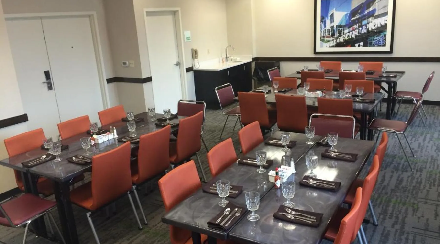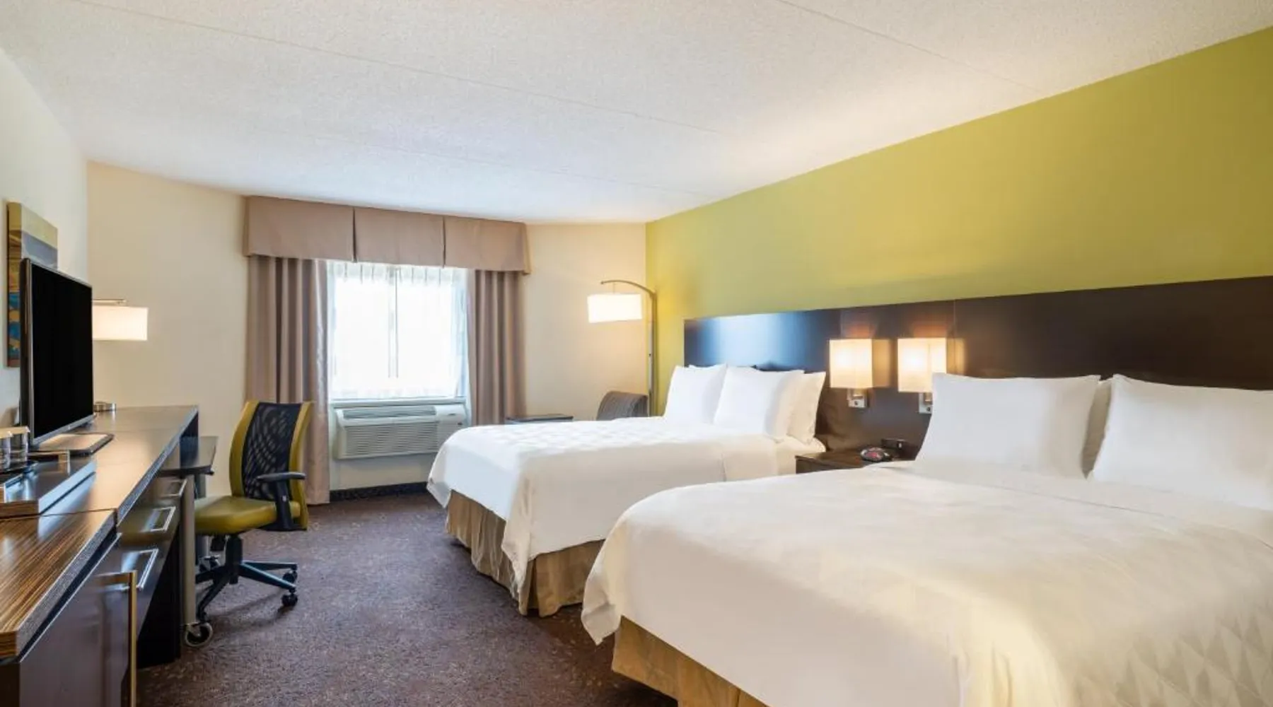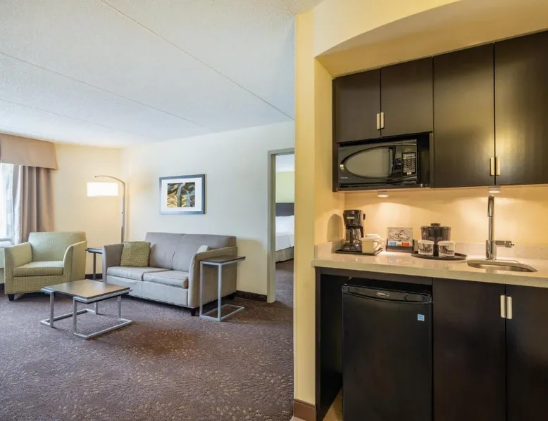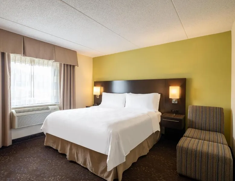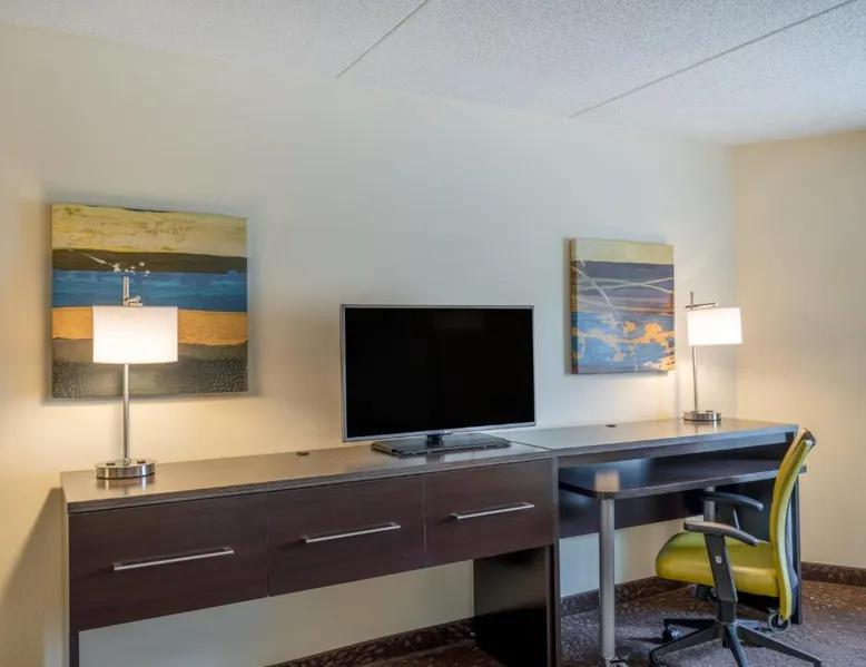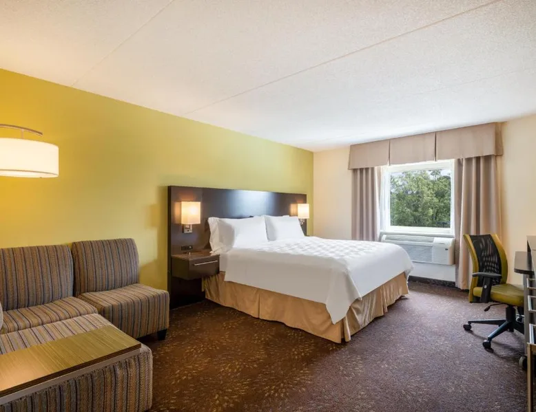 Located off Interstate 40 Exit 217, this Greensboro Coliseum Holiday Inn features fitness center, seasonal outdoor pool, and rooms with free WiFi. Greensboro Coliseum is 1 mi away. A flat-screen TV, refrigerator, and coffee machine are provided in all Holiday Inn Greensboro Coliseum rooms. Extras include a dining area, desk, and en suite with a hairdryer. The reception is open 24 hours, and free on-site parking is provided. Meeting facilities, dry cleaning, and laundry facilities are offered for a fee. JK'S Bar and Grill serves American cuisine for breakfast and dinner with multiple TVs that play sporting events, news, and weather. A full cocktail menu is also available. Piedmont Triad International Airport is 6.8 mi away. The hotel is also 7 minutes’ drive from Greensboro city center and 1.2 mi from Greensboro Aquatic Center. This room features a 39-inch flat-screen TV, coffee machine, and in-room safe. A refrigerator, ironing facilities, and hairdryer are also included.