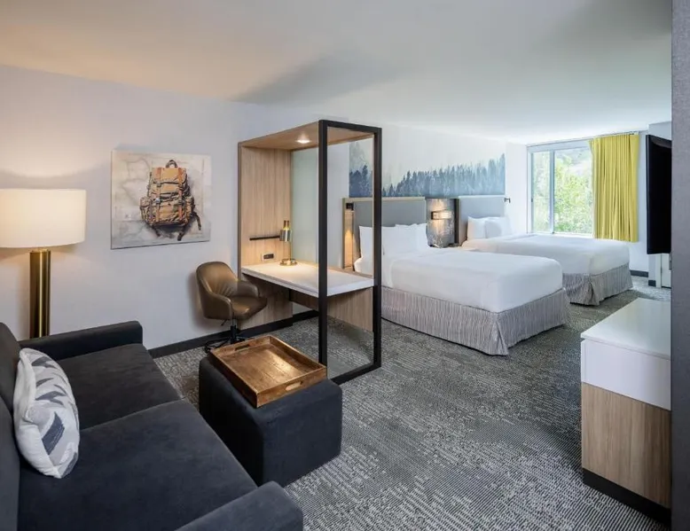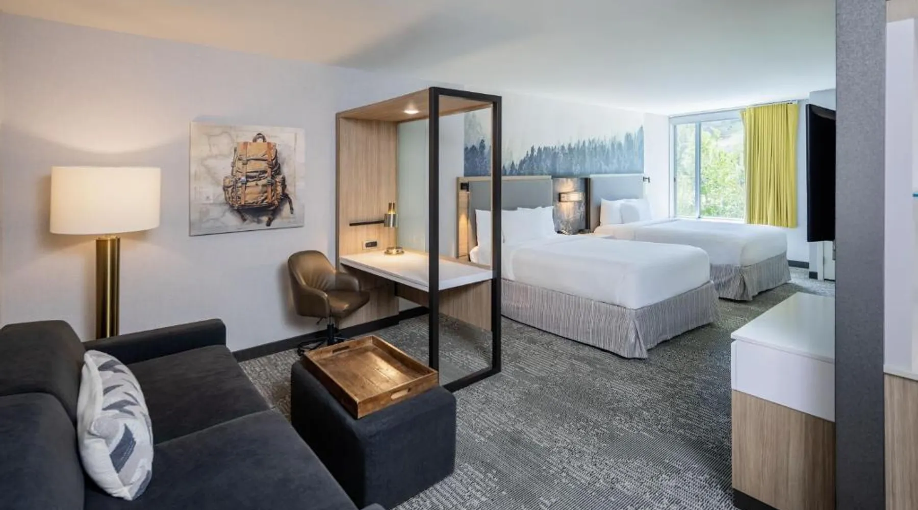 Comfortable Accommodations: Rooms feature air-conditioning, private bathrooms with walk-in showers, city or mountain views, and modern amenities such as free WiFi, flat-screen TVs, and work desks. Exceptional Facilities: Guests enjoy a swimming pool with a view, fitness center, sun terrace, and hot tub. Additional amenities include a lounge, outdoor fireplace, and electric vehicle charging station. Convenient Location: Located in Jackson, the hotel is 9.3 mi from Jackson Hole Airport and a few steps from the Center For The Arts. Grand Teton National Park is a 13-minute walk away, and an ice-skating rink is nearby. Guest Services: Private check-in and check-out, 24-hour front desk, concierge service, and a business area ensure a comfortable stay. The air-conditioned suite has 1 bedroom and 1 bathroom with a walk-in shower and a hairdryer. The suite features a flat-screen TV with streaming services, a seating area, a wardrobe, a dressing room as well as pool views. The unit has 2 beds.