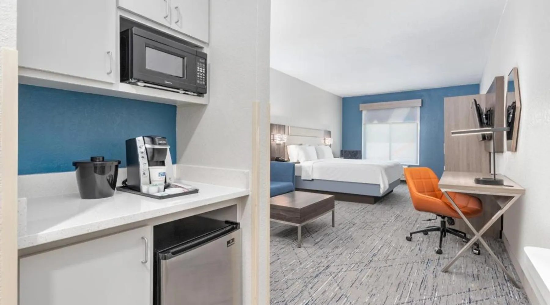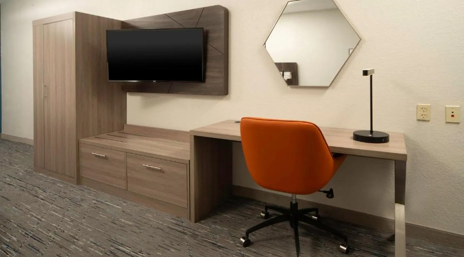 Free WiFi and a complimentary hot breakfast are among the conveniences offered at this Little Rock, Arkansas hotel. The University of Arkansas at Little Rock is 3.5 miles away. A microwave and a small refrigerator are provided in each room at the Holiday Inn Express Little Rock West. The rooms also come with a flat-screen cable TV and a seating area. Free parking and 24-hour reception are available. Only 10 minutes' drive from Little Rock West Holiday Inn Express, look for souvenirs at the Park Plaza Mall. Little Rock city center is 9 miles away. A 42" flat-screen cable TV is provided in this room. It also includes a microwave and refrigerator.