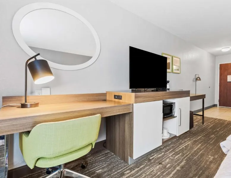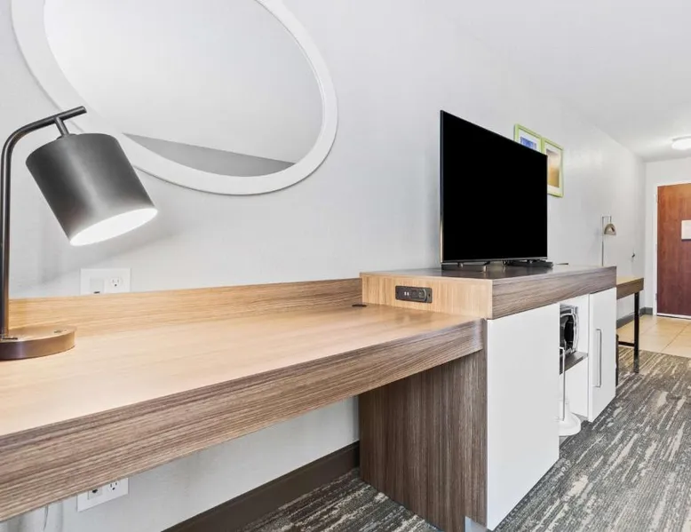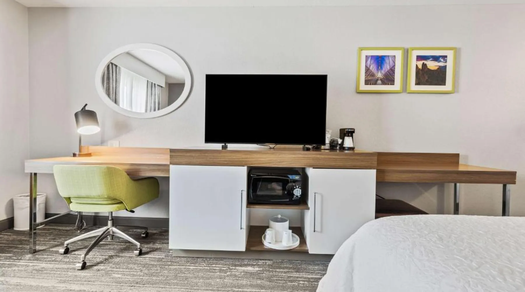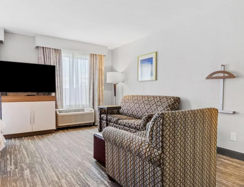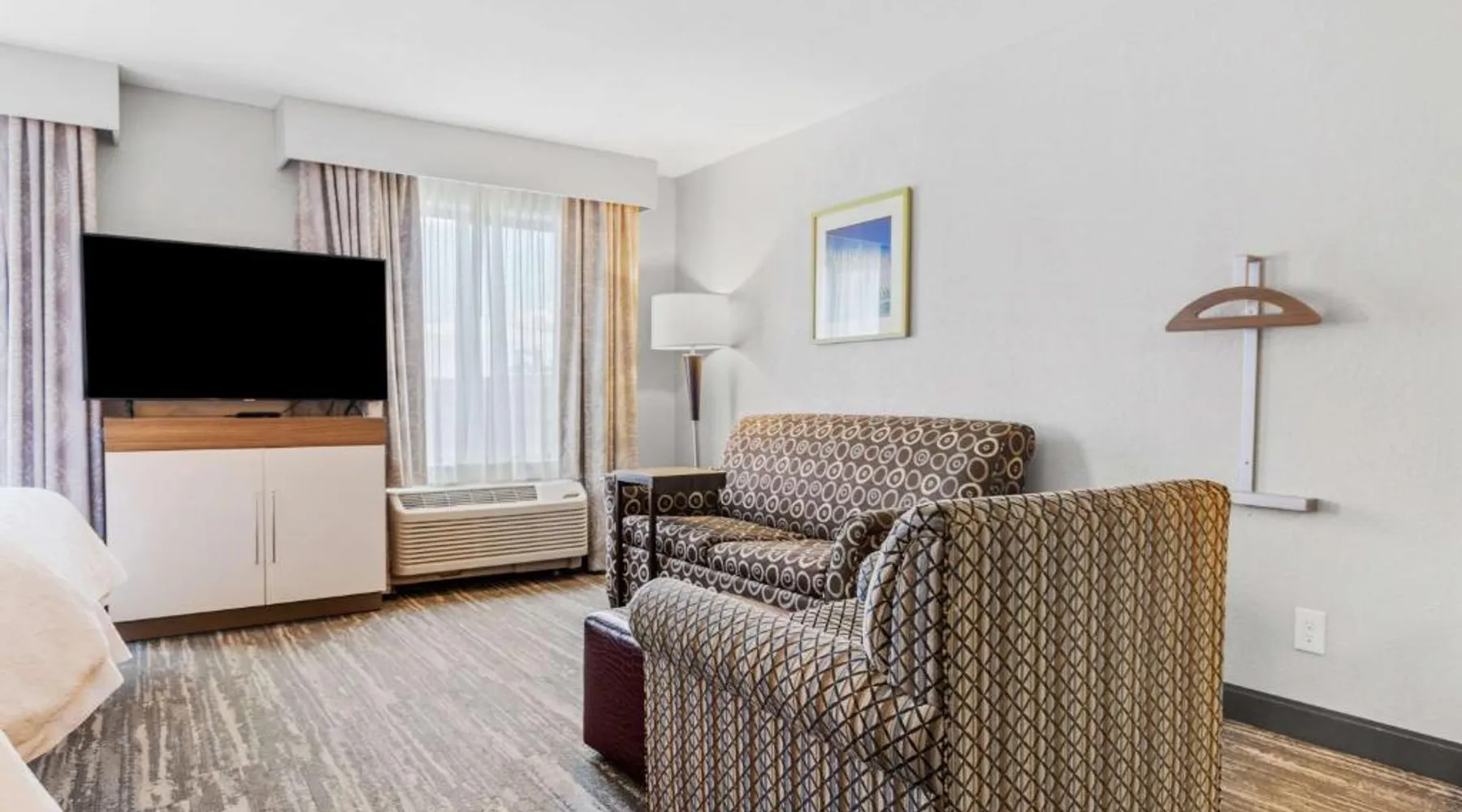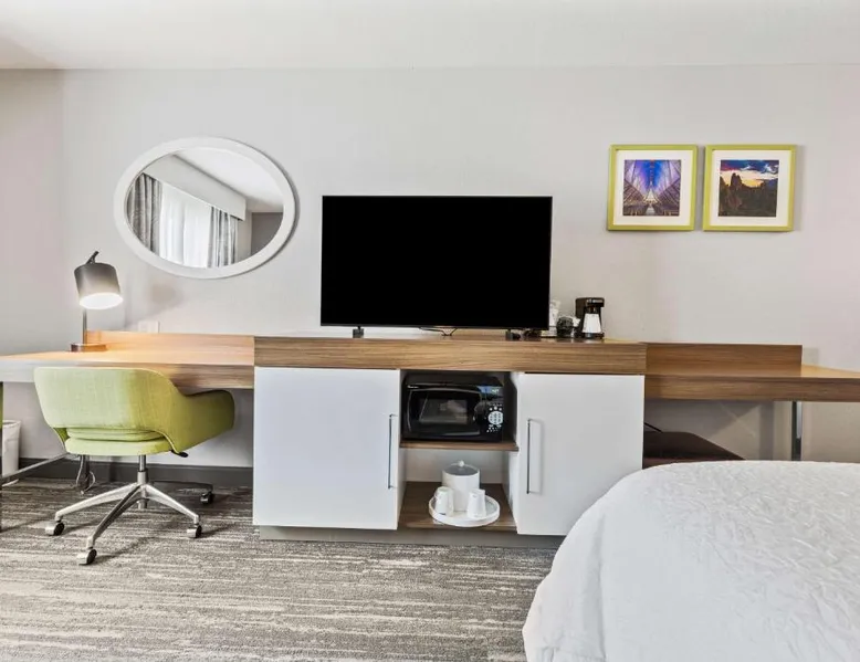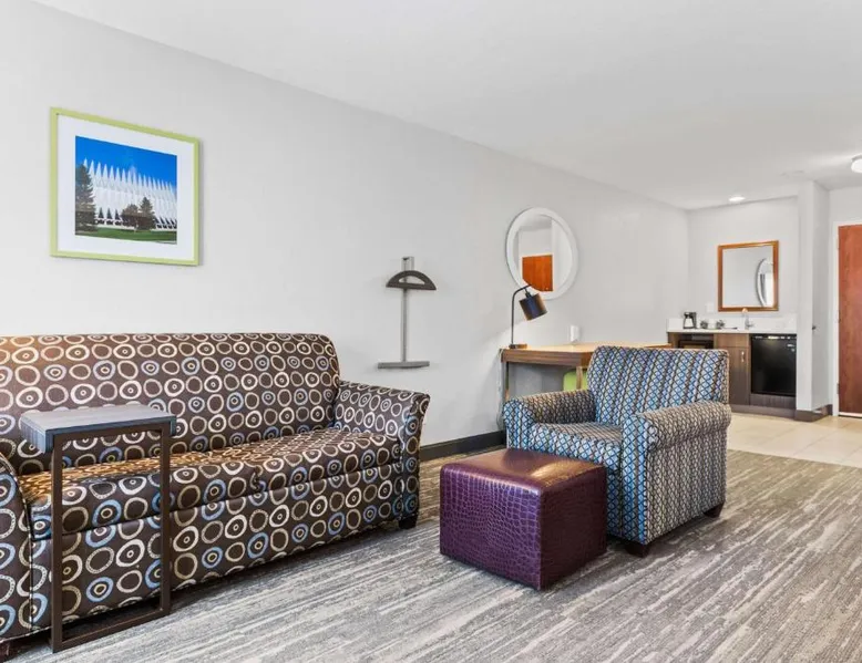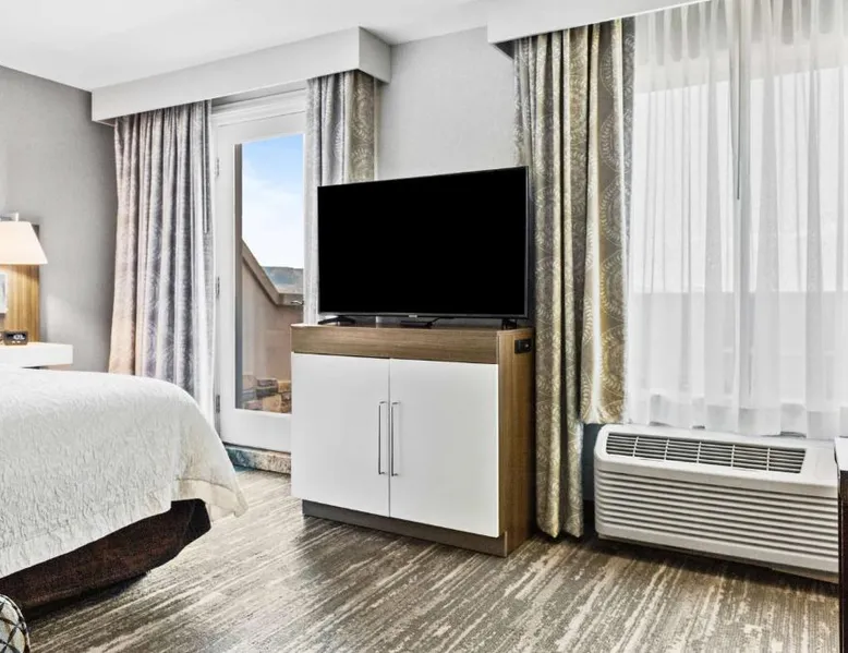Comfortable Accommodations: Hampton Inn & Suites Colorado Springs-Air Force Academy/I-25 North in Colorado Springs offers spacious rooms with free WiFi, air-conditioning, and modern amenities. Guests enjoy a saltwater swimming pool, fitness center, and a serene garden. Convenient Facilities: The hotel features a lounge, fitness room, 24-hour front desk, minimarket, and daily housekeeping service. Additional amenities include an indoor play area, child-friendly buffet, business area, and outdoor seating. Free on-site private parking is available. Prime Location: Located 16 mi from Colorado Springs Airport, the hotel is near attractions such as United States Air Force Academy (8.1 mi), Garden of the Gods (12 mi), and Cheyenne Mountain Zoo (18 mi). Guests can enjoy activities like skiing and cycling. Guest Satisfaction: Highly rated for its breakfast, attentive staff, and spacious rooms, the hotel ensures a pleasant stay for all visitors. This studio features a balcony, a cable TV with satellite channels, a microwave, a small refrigerator and tea and coffee-making facilities.