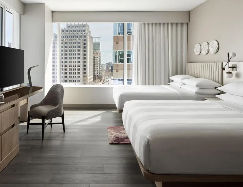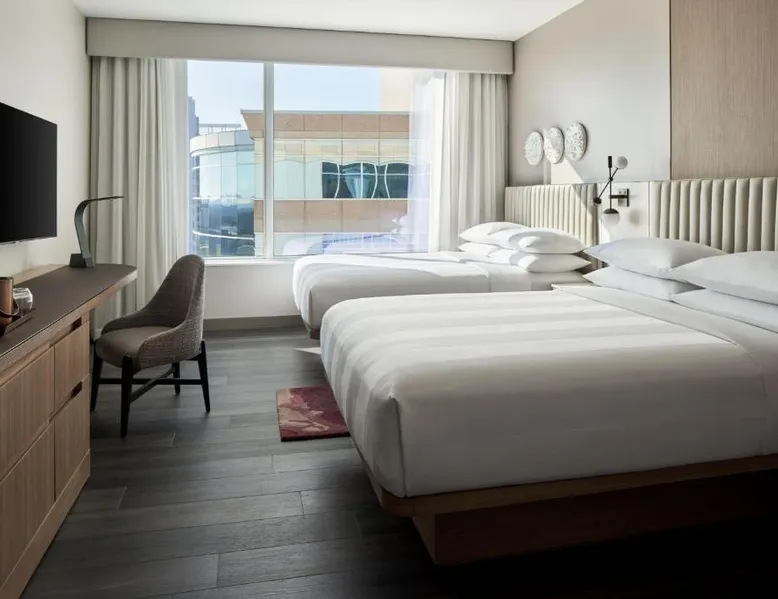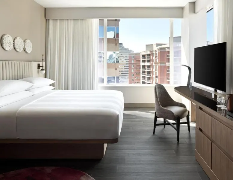 Comfortable Accommodations: Rooms feature air-conditioning, private bathrooms, city views, and modern amenities including work desks and sofas. Guests appreciate the room cleanliness and comfort. Dining and Leisure: The modern, family-friendly restaurant serves American cuisine with brunch, lunch, dinner, and cocktails. A fitness center, terrace, and bar provide leisure options. Convenient Location: > Located in Bethesda, the hotel is 12 mi from Ronald Reagan Washington National Airport. Nearby attractions include the Phillips Collection (6.2 mi) and White House (7.5 mi). Exceptional Service: Highly rated for its attentive staff and excellent service support, the hotel offers a 24-hour front desk, paid private parking, and full-day security. The spacious double room provides air conditioning, a sofa, as well as a private bathroom featuring a shower and a hairdryer. The unit offers 1 bed.