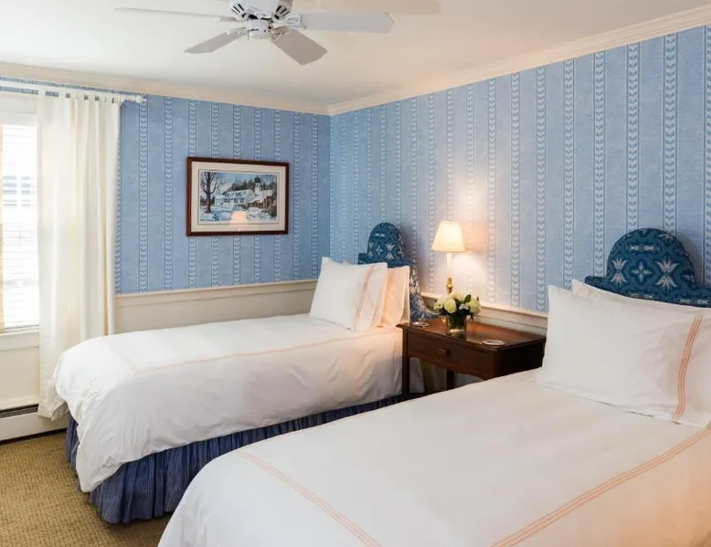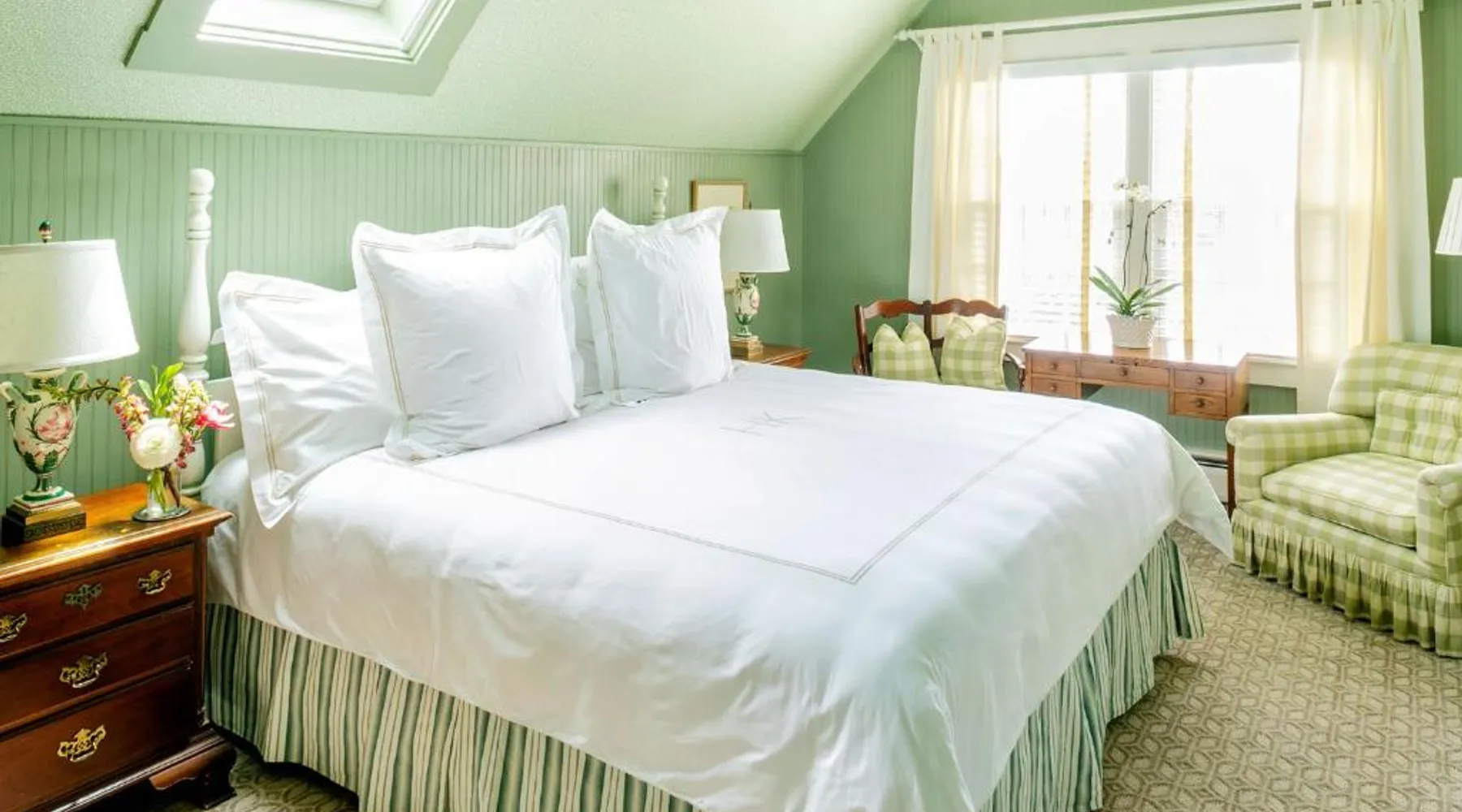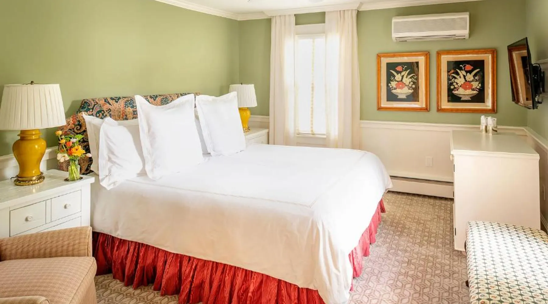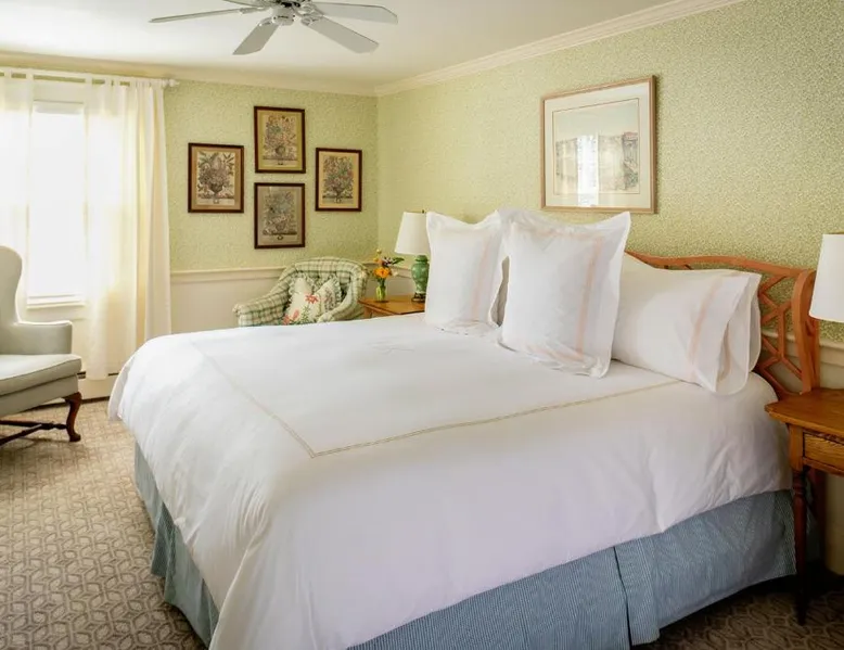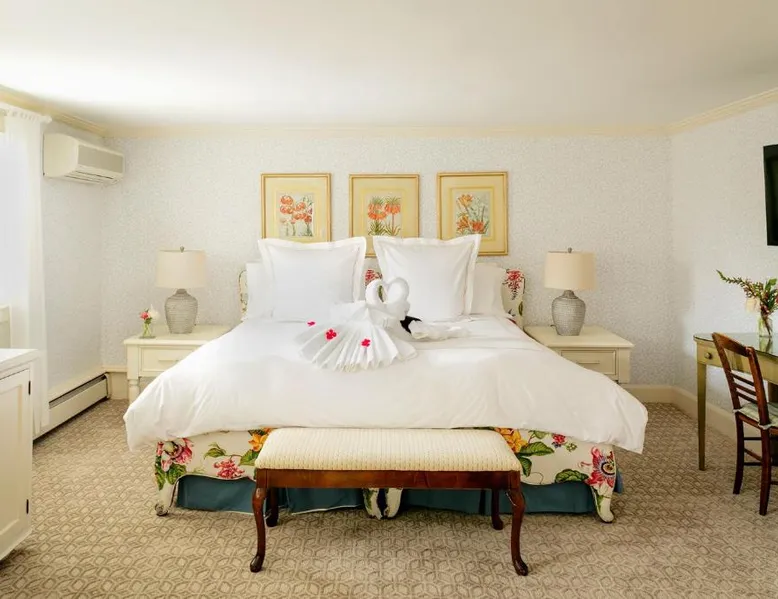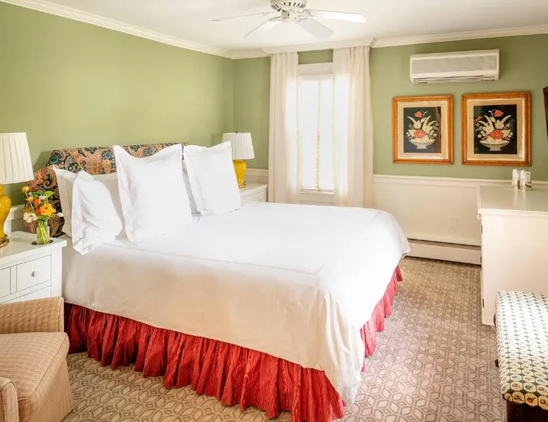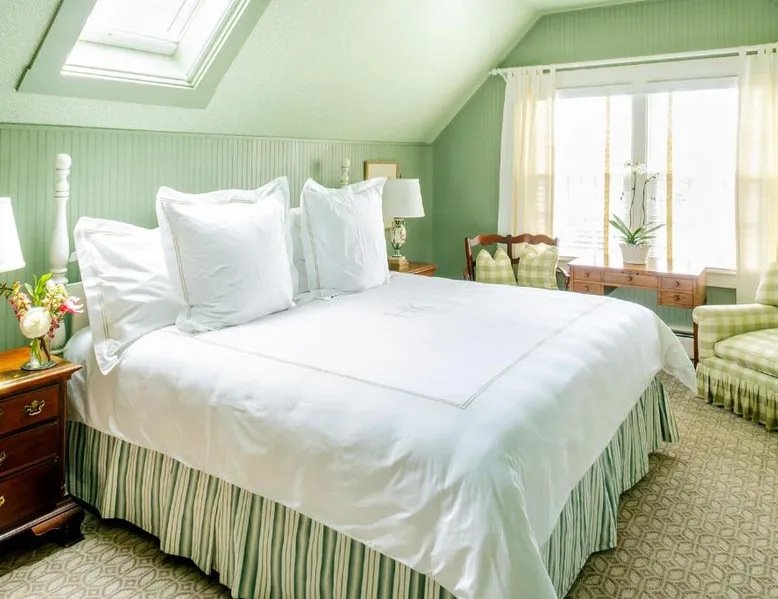 This luxury Martha’s Vineyard accommodations features an on-site spa and a beautiful wrap around porch. Joseph Sylvia State Beach is 3 miles away. Each guest room at the Hob Knob features a flat-screen cable TV, free Wi-Fi access, and a refrigerator. They are classically decorated in light colors and plush bedding, and offer bathrobes and natural bath amenities. Guests can relax at the Martha’s Vineyard Hob Knob Spa, which offers massage services. A state-of-the-art fitness center and steam room are also featured. A full breakfast is provided every morning. Afternoon tea is available for guests to enjoy in the lush gardens. Walking distance to popular restaurants and cafes and On Site Concierge Services including dining, Vineyard excursions and bike rentals Edgartown Golf Club is 1 mile away. This second floor room features a flat-screen TV and refrigerator.