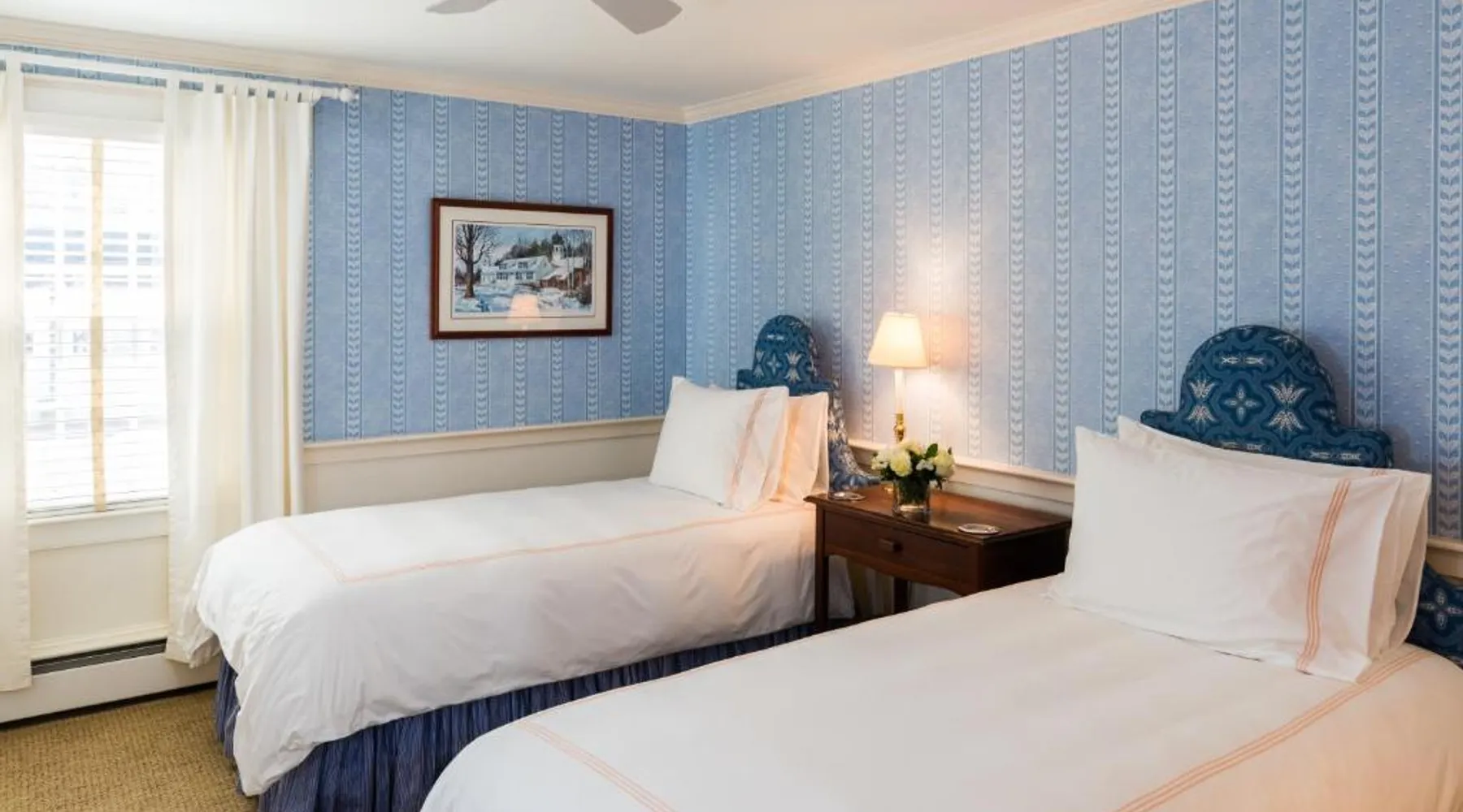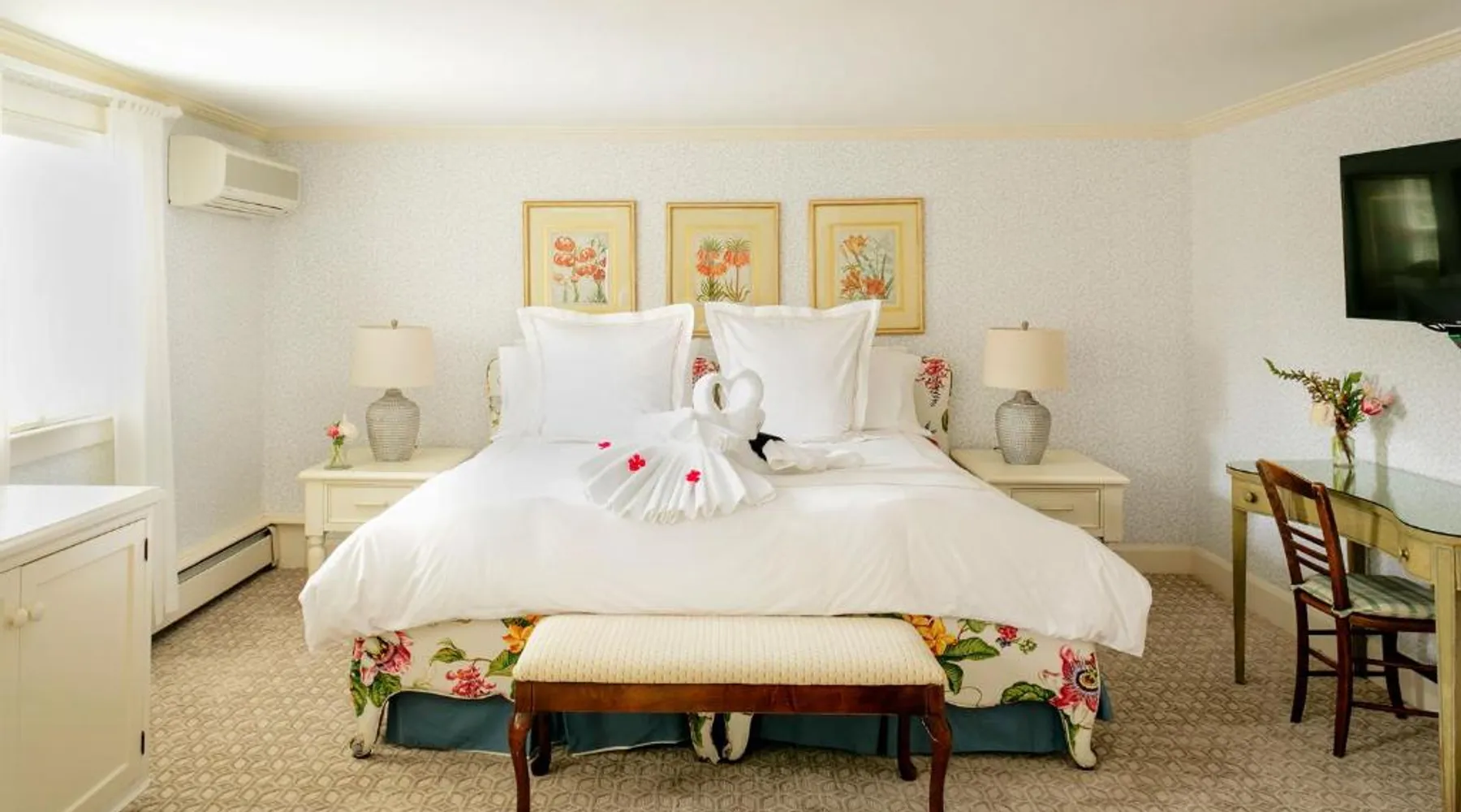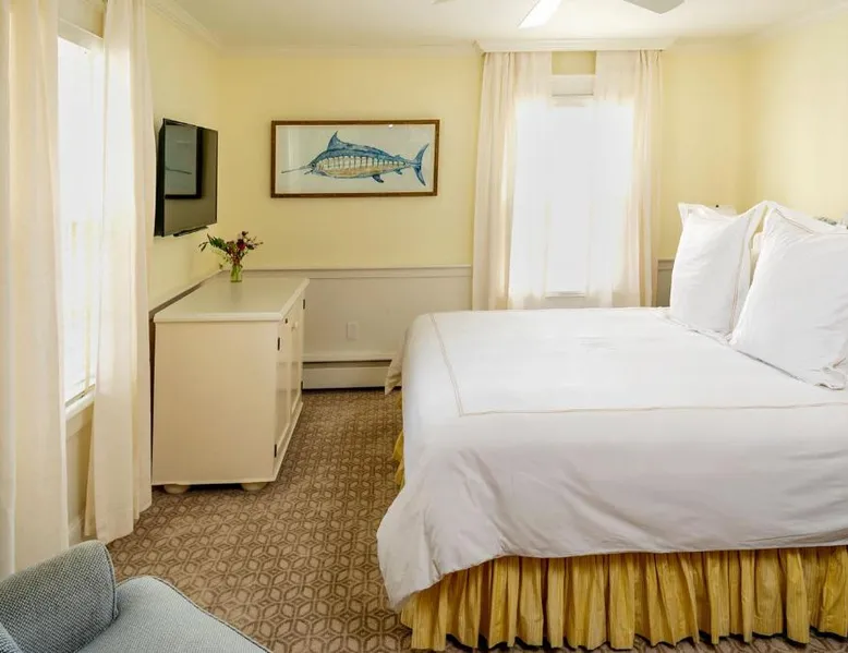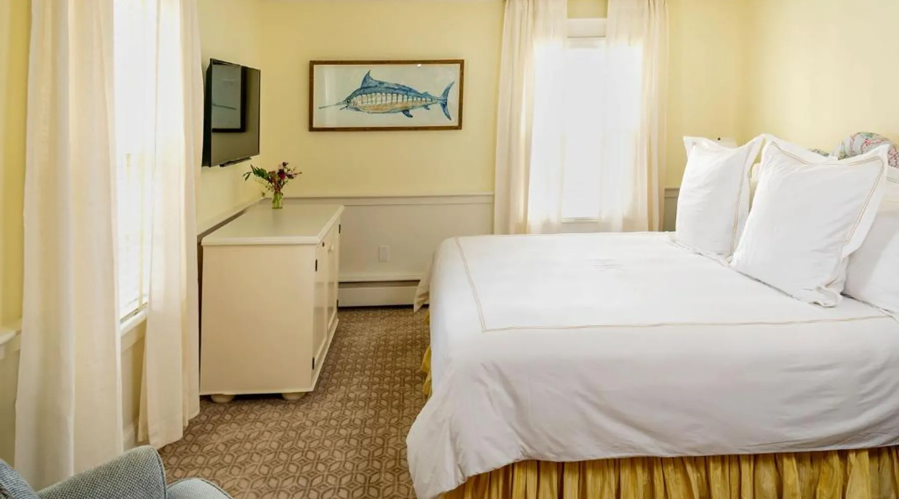 This luxury Martha’s Vineyard accommodations features an on-site spa and a beautiful wrap around porch. Joseph Sylvia State Beach is 3 miles away. Each guest room at the Hob Knob features a flat-screen cable TV, free Wi-Fi access, and a refrigerator. They are classically decorated in light colors and plush bedding, and offer bathrobes and natural bath amenities. Guests can relax at the Martha’s Vineyard Hob Knob Spa, which offers massage services. A state-of-the-art fitness center and steam room are also featured. A full breakfast is provided every morning. Afternoon tea is available for guests to enjoy in the lush gardens. Walking distance to popular restaurants and cafes and On Site Concierge Services including dining, Vineyard excursions and bike rentals Edgartown Golf Club is 1 mile away. This second floor room features a flat-screen TV and refrigerator.