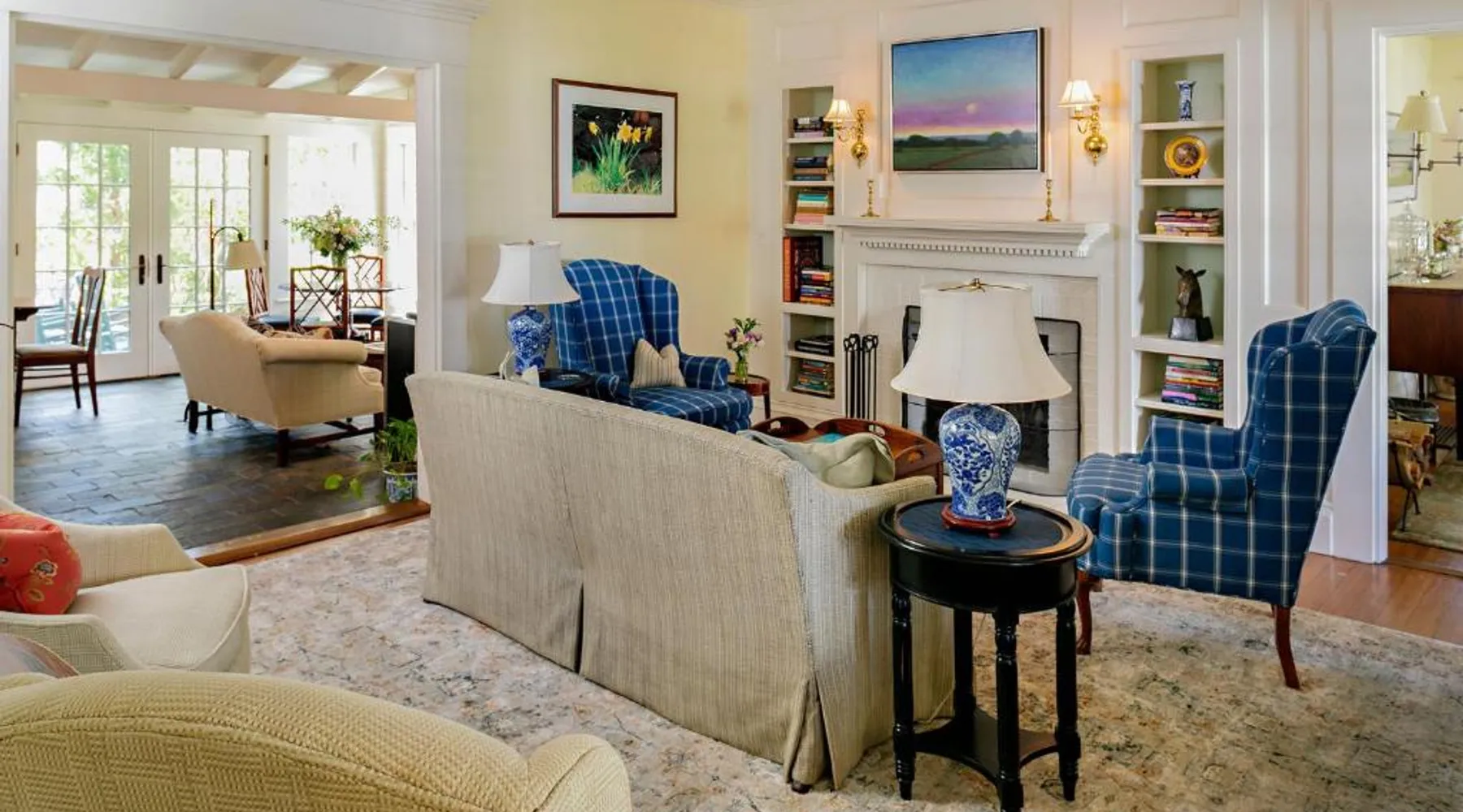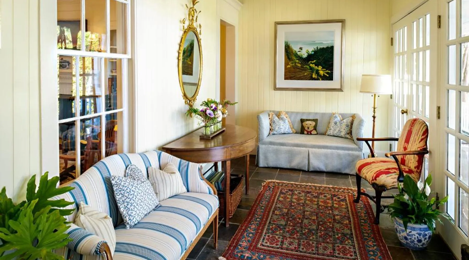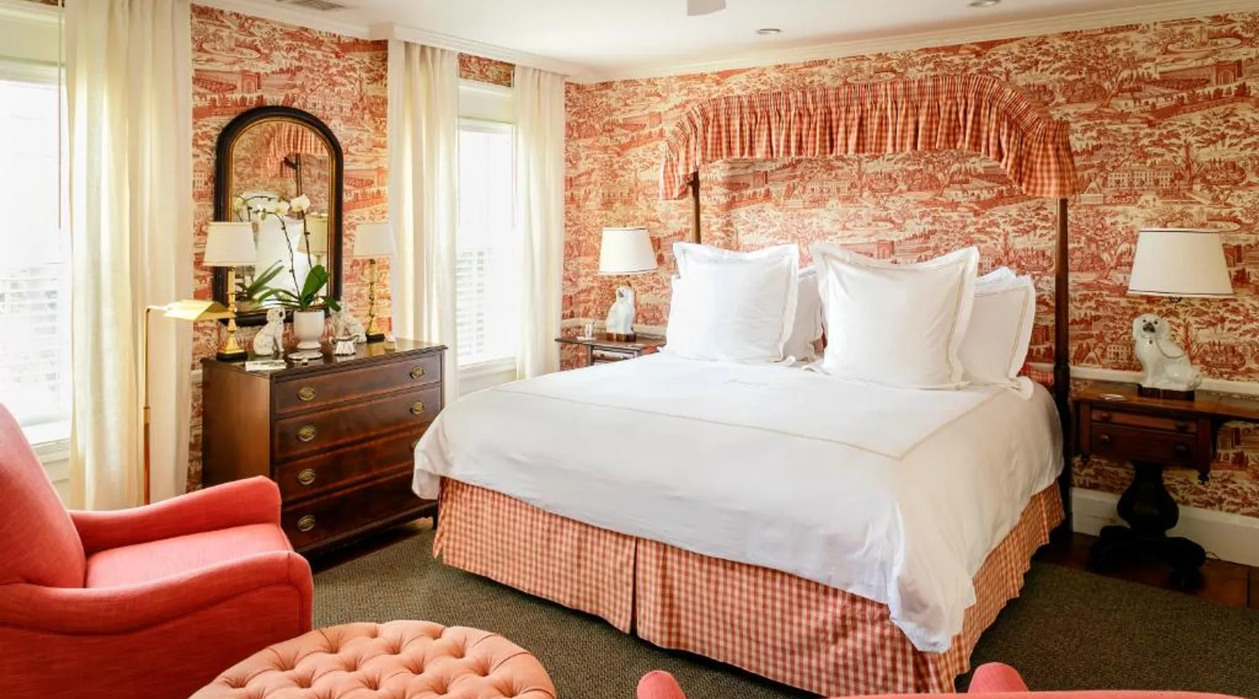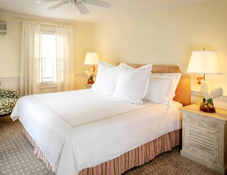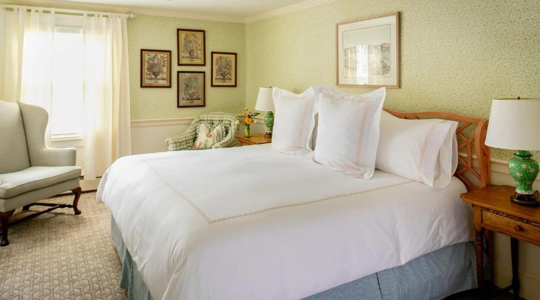 This luxury Martha’s Vineyard accommodations features an on-site spa and a beautiful wrap around porch. Joseph Sylvia State Beach is 3 miles away. Each guest room at the Hob Knob features a flat-screen cable TV, free Wi-Fi access, and a refrigerator. They are classically decorated in light colors and plush bedding, and offer bathrobes and natural bath amenities. Guests can relax at the Martha’s Vineyard Hob Knob Spa, which offers massage services. A state-of-the-art fitness center and steam room are also featured. A full breakfast is provided every morning. Afternoon tea is available for guests to enjoy in the lush gardens. Walking distance to popular restaurants and cafes and On Site Concierge Services including dining, Vineyard excursions and bike rentals Edgartown Golf Club is 1 mile away. This second floor room features a flat-screen TV and refrigerator.
