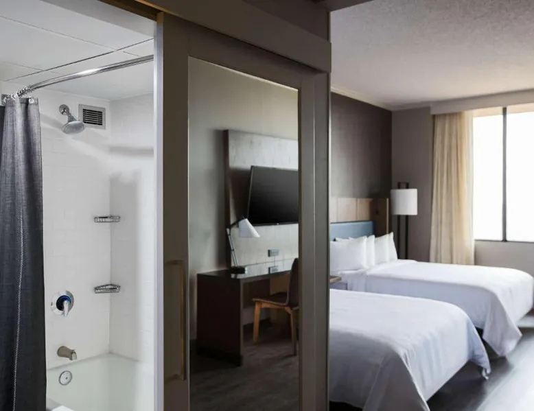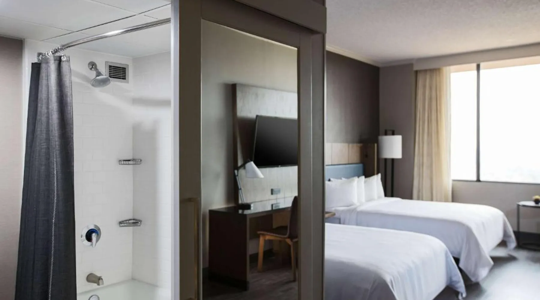 Meet Sonesta International Hotels, the 8th largest hotel company in the U.S., where we open our doors and welcome the world. We offer service with passion & loyalty with a purpose at 1,100 properties in eight countries. Sonesta Nashville Airport is 15 minutes from downtown Nashville and just about 5 minutes from the Nashville International Airport. The hotel features an airport shuttle and a connected indoor and outdoor pool. Sonesta Nashville Airport rooms include a sitting area and coffee machine. The hotel offers room service to guests. Dining options at the Sonesta Nashville Airport include the The Nashville Tap House, which showcases the Music City and surrounding area we call home, from cocktails made with hand-selected bourbon to regionally famous dishes like the Nashville hot chicken sandwich (open till 1am). The hotel also offers a Starbucks, which features coffee and a light menu. The Sonesta Nashville Airport is within 11 minutes drive of the Country Music Hall of Fame, and The Grand Ole Opry is within 9 minutes drive of the hotel. This air-conditioned quadruple room includes a flat-screen TV with streaming services and a private bathroom. The unit offers 2 beds.