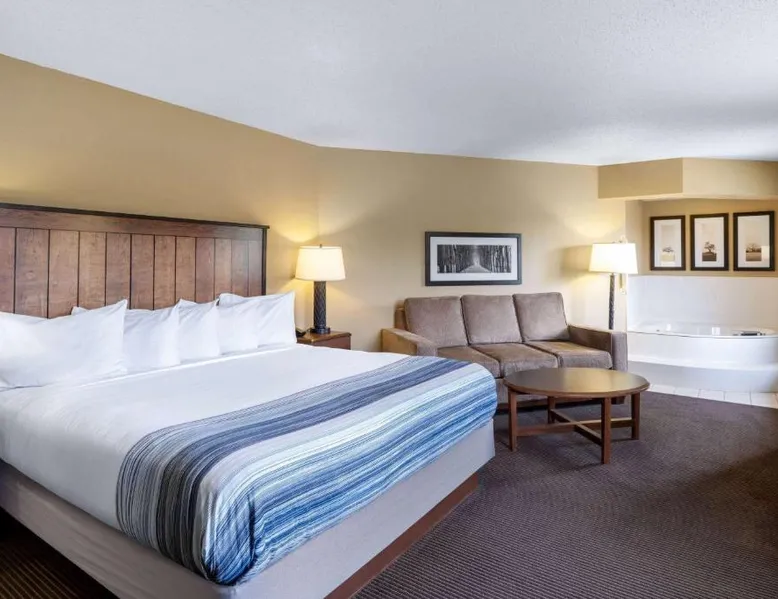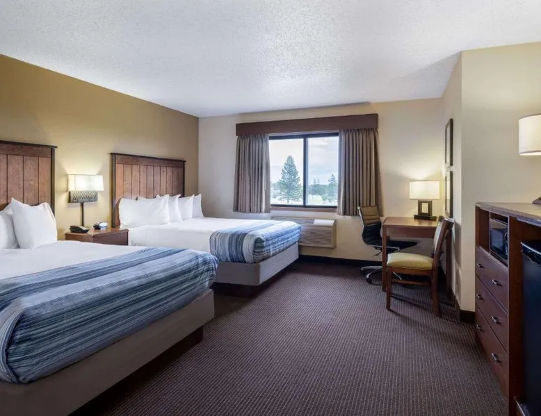 Comfortable Accommodations: AmericInn by Wyndham Two Harbors Near Lake Superior in Two Harbors offers air-conditioned rooms with free WiFi, tea and coffee makers, and flat-screen TVs. Each room includes a refrigerator, microwave, and free toiletries. Leisure Facilities: Guests can enjoy an indoor swimming pool, sauna, and hot tub. The property also features a games room and a business area. Free on-site private parking is available. Dining Options: A continental buffet breakfast with juice and fruits is served daily. Additional amenities include a 24-hour front desk, housekeeping service, and a restaurant in the surrounding area. Local Attractions: Located 30 mi from Duluth International Airport, the hotel is near attractions such as Duluth Canal Park (26 mi) and Glensheen Estate (23 mi). Free WiFi is available throughout the property. This room features air conditioning, a microwave and a 49-inch flat-screen TV. *Pets are not allowed.