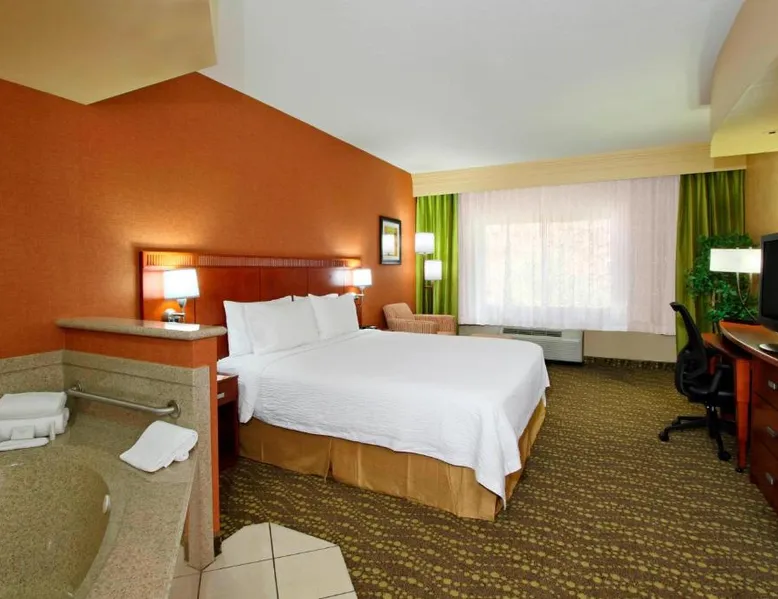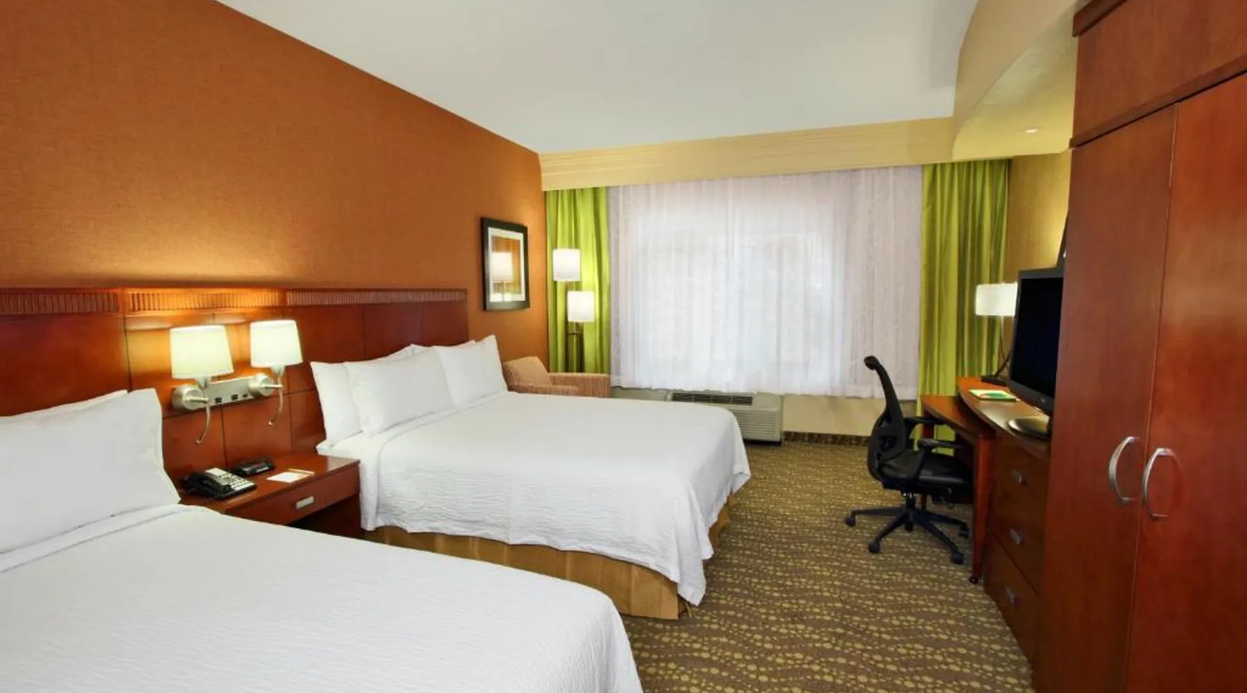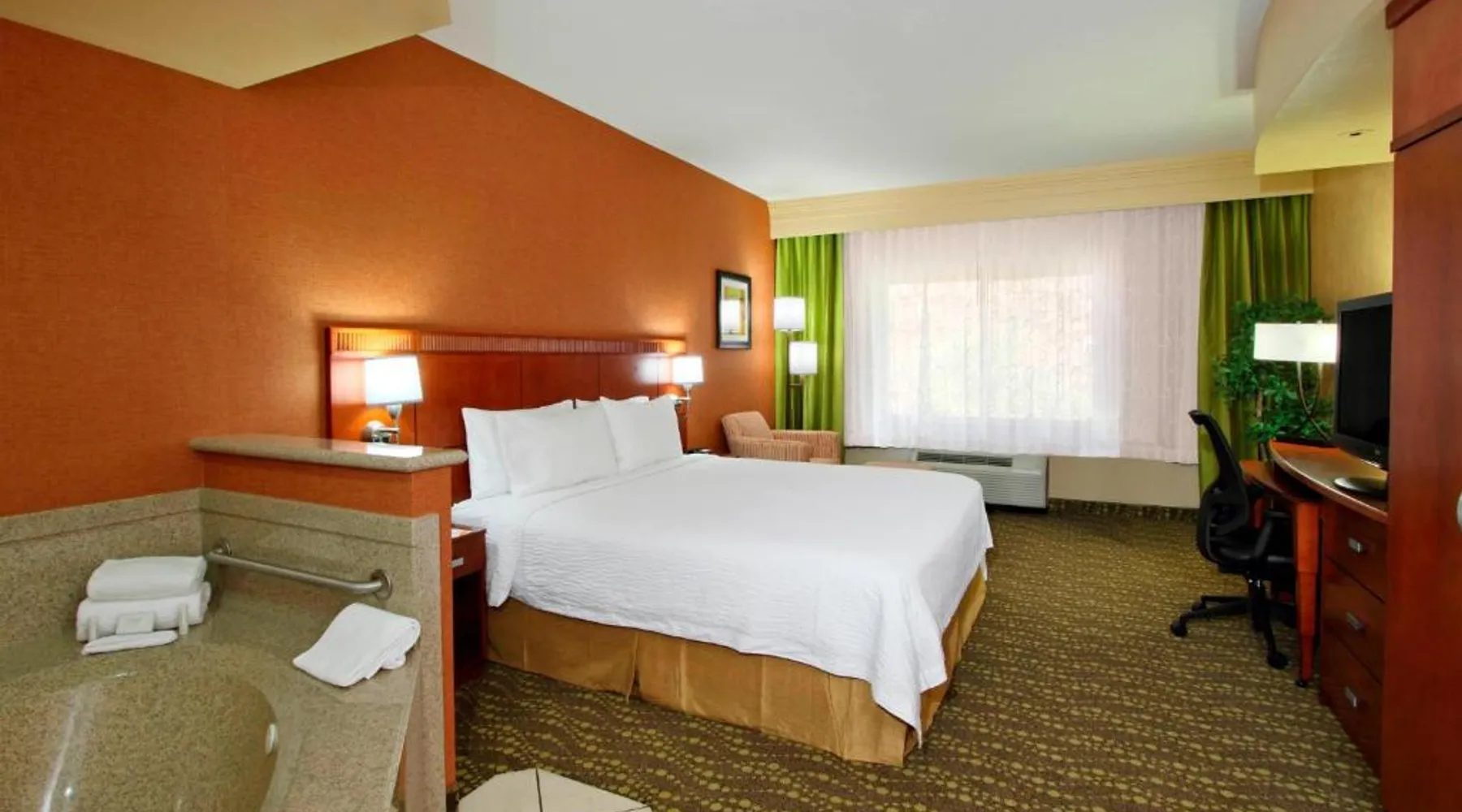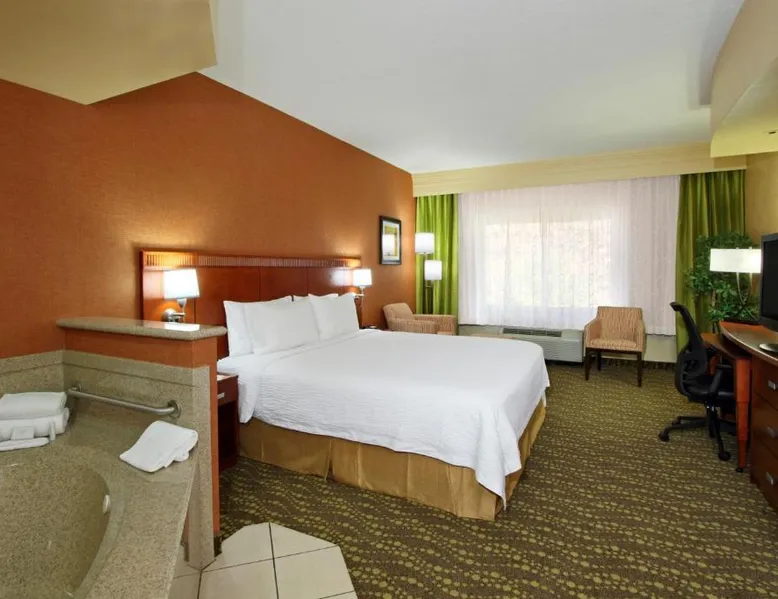 Comfortable Accommodations: Courtyard by Marriott St. George in St. George offers air-conditioned rooms with private bathrooms, tea and coffee makers, and free WiFi. Each room includes a work desk, seating area, and modern amenities such as a refrigerator and TV. Dining and Leisure: Guests can enjoy a restaurant and bar, indoor swimming pool, and hot tub. Additional facilities include a elevator, 24-hour front desk, and free on-site parking. Prime Location: Located 7.5 mi from St. George Regional Airport, the hotel is an 18-minute walk from Dixie State University. Nearby attractions include St George Temple (2 mi) and Pioneer Center for the Arts (1.9 mi). Boating is available in the surrounding area. Guest Satisfaction: Highly rated for its attentive staff, clean rooms, and breakfast provided by the property. The double room features air conditioning.
