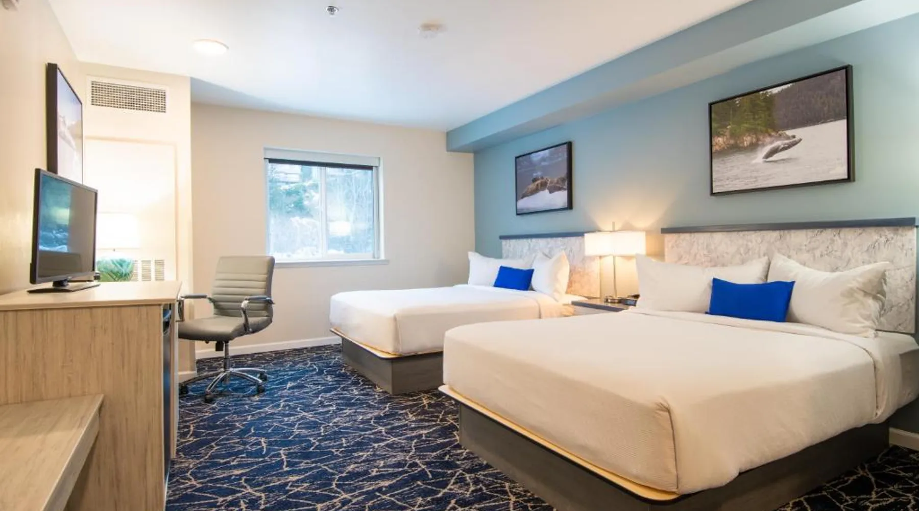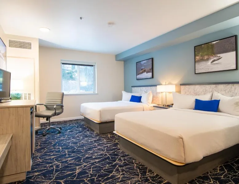 Comfortable Accommodations: Gateway Hotel in Seward offers 3-star comfort with air-conditioned rooms featuring private bathrooms, mountain views, and modern amenities. Each room includes a tea and coffee maker, refrigerator, work desk, and free toiletries. Essential Facilities: Guests enjoy a sun terrace and free WiFi, perfect for relaxation. Additional services include private check-in and check-out, shuttle, elevator, 24-hour front desk, concierge, housekeeping, child-friendly buffet, full-day security, bicycle parking, car hire, tour desk, and luggage storage. Dining Experience: A complimentary American buffet breakfast is served daily, offering warm dishes, juice, fresh pastries, pancakes, and fruits. Local Attractions: Located 104 mi from Kenai Municipal Airport, the hotel is near boating and hiking activities. Guests appreciate the room cleanliness, convenient location, and attentive staff. Featuring free toiletries, this double room includes a private bathroom with a shower and a hairdryer. The air-conditioned double room features a flat-screen TV with satellite channels, a tea and coffee maker, a wardrobe, a carpeted floor as well as mountain views. The unit has 2 beds.
