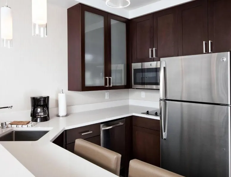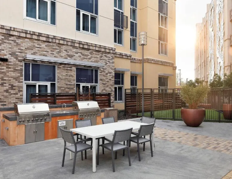 Comfortable Accommodations: Residence Inn by Marriott San Jose Cupertino in Cupertino offers comfortable rooms with air-conditioning, kitchenettes, private bathrooms, and free WiFi. Each room includes a sofa bed, work desk, and modern amenities. Exceptional Facilities: Guests can enjoy a fitness center, sun terrace, and free use of bicycles. The hotel features a bar, outdoor fireplace, and outdoor seating area. Additional facilities include a lounge, minimarket, grocery delivery, and electric vehicle charging station. Convenient Location: Located 6.8 mi from Norman Y. Mineta San Jose International Airport, the hotel is near attractions such as Winchester Mystery House (3.7 mi) and California's Great America (7.5 mi). Scuba diving is available in the surrounding area. Guest Satisfaction: Highly rated by guests for its convenient location, the hotel ensures a pleasant stay with excellent services. The studio features air conditioning, a wardrobe, as well as a private bathroom boasting a hairdryer. Meals can be prepared in the kitchenette, which features a stovetop, a refrigerator, a dishwasher and kitchenware. Rooms on the upper floors are reachable by elevator. The unit has 2 beds.