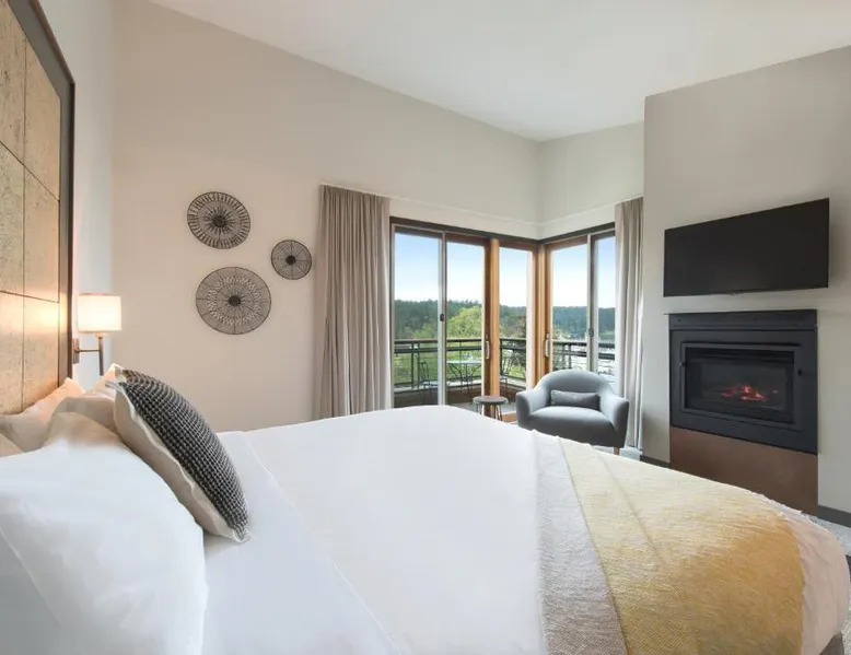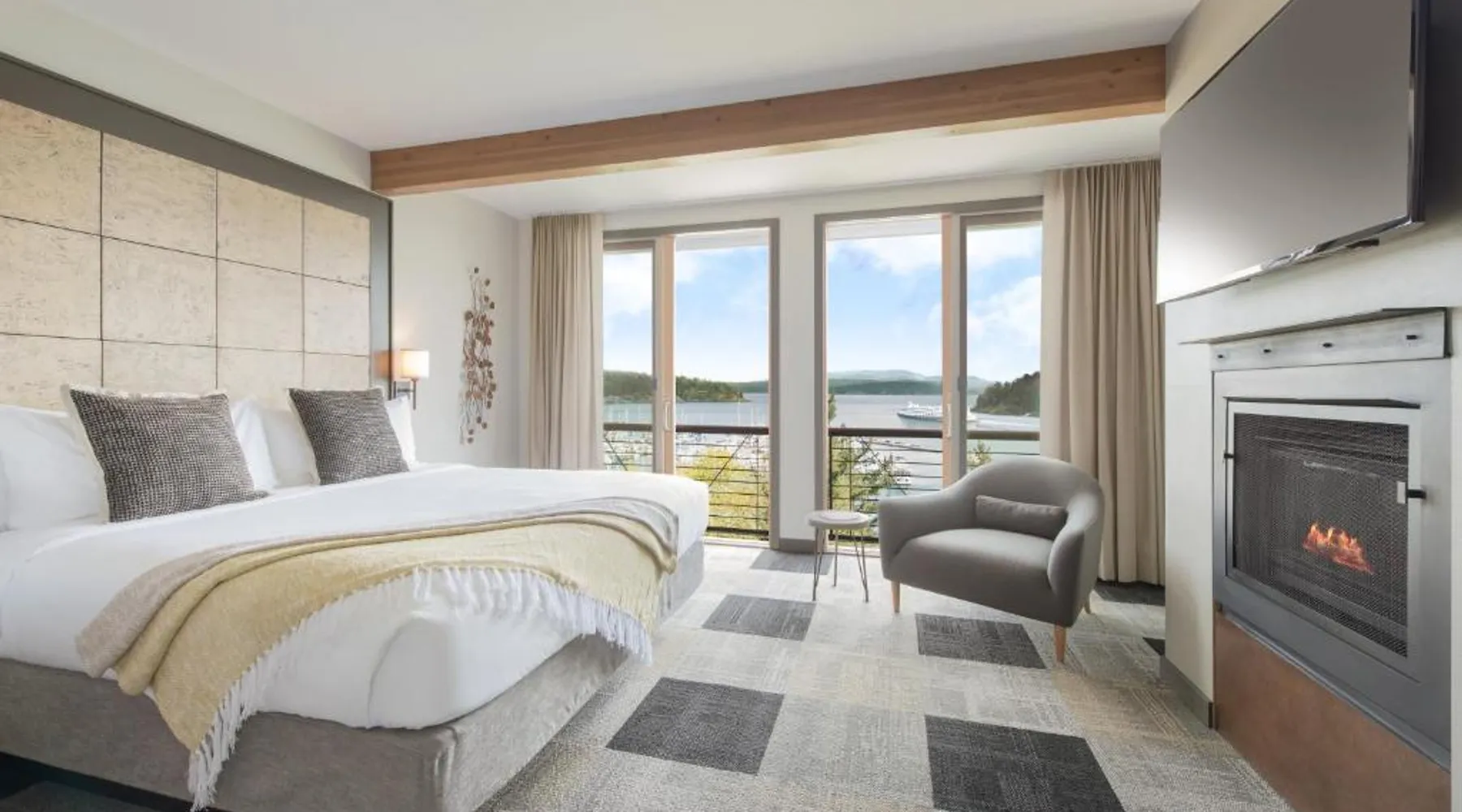 Next door to the Whale Museum in Friday Harbor, this hotel features an on-site restaurant offering room service. Guest rooms feature harbor views from the patio. A flat-screen TV and free Wi-Fi are provided in all rooms at the Friday Harbor House. A fireplace and a spa bath are also included for guest relaxation. Coffee-making facilities and a small fridge are also offered. The on-site restaurant is open for dinner Wednesday through Sunday and features a locally-focused menu. Special diet menus are available upon request. The Ferry Terminal is less than 5 minutes’ walk from the hotel. Whale-watching adventures with San Juan Safaris and Crystal Seas Kayaking are both less than 5 minutes’ walk away. This quadruple room features a fireplace. Featuring free toiletries and bathrobes, this quadruple room includes a private bathroom with a bath, a shower and a hairdryer. This quadruple room has air conditioning, flat-screen TV with satellite channels, garden views, as well as wine/champagne for guests. The unit has 2 beds.