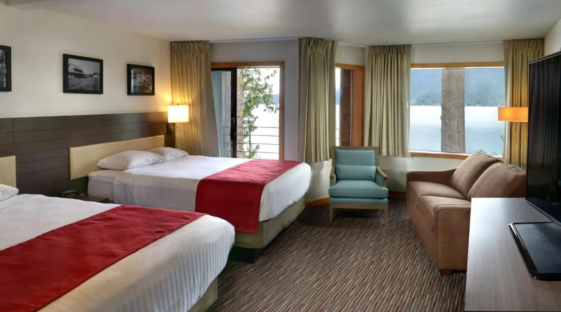Lake Quinault Lodge is located in Quinault. Free private parking is available on site. Some units include a dining area and/or balcony. Some units also have a kitchenette, equipped with a microwave. There is a private bathroom with a bath or shower in every unit. Towels are provided. Relax in the heated indoor pool or dry sauna at Lake Quinault Lodge. Guests can enjoy the on-site restaurant. The property also offers packed lunches. Guests can play table tennis at the property, and the area is popular for fishing. Enjoy a quiet ride or guided tour across the lake in a kayak or canoe, or take a scenic hike among the world's tallest trees. Lake Quinault Lodge is a 3 hours' drive to Seattle, a 3.5 hours' drive to Portland, and a 4.5 hours' drive Victoria, B.C. The spacious double room features a private entrance, a tea and coffee maker, a balcony with lake views as well as a private bathroom boasting a walk-in shower. The unit has 2 beds.