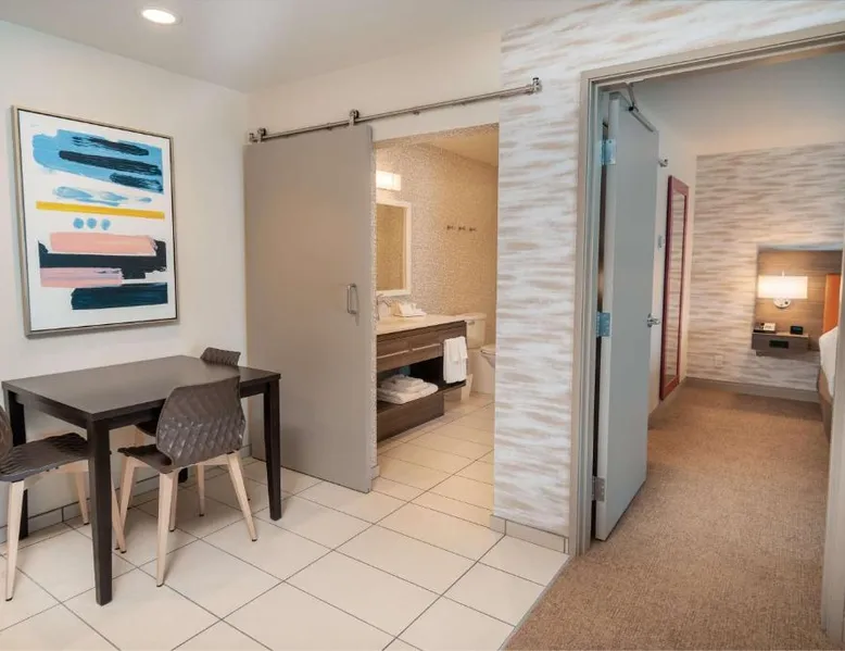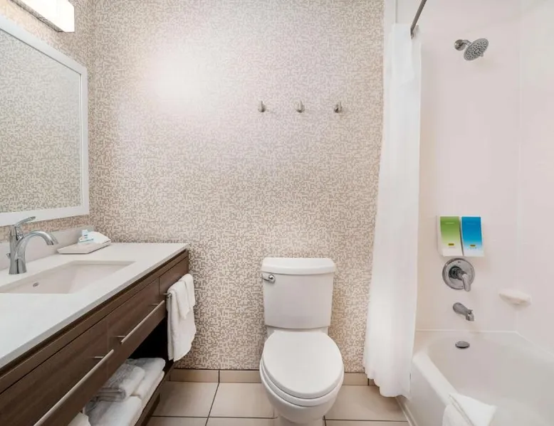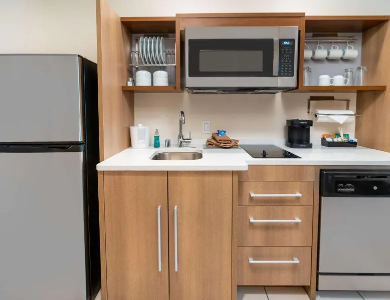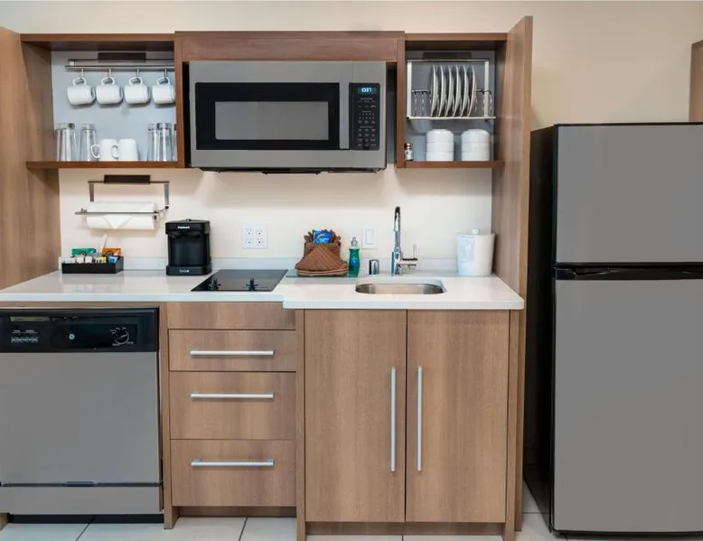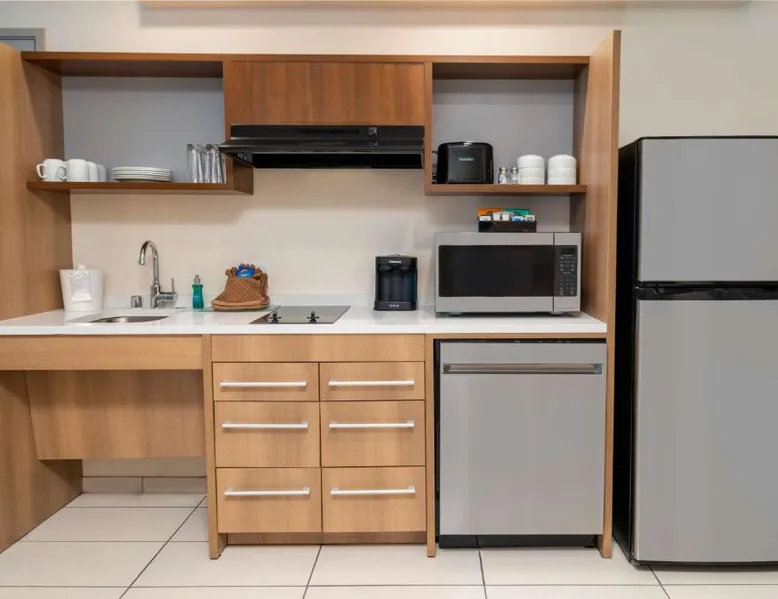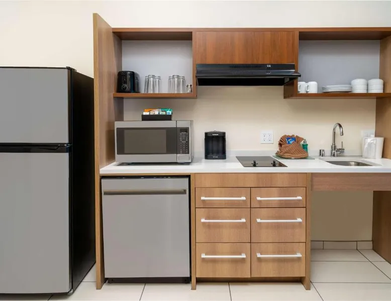 Comfortable Accommodations: Rooms feature air-conditioning, kitchen, tea and coffee maker, hairdryer, sofa bed, refrigerator, work desk, seating area, free toiletries, microwave, dishwasher, interconnected rooms, kitchenware, toaster, and TV. Exceptional Facilities: Guests enjoy an outdoor swimming pool, free WiFi, fitness room, elevator, 24-hour front desk, and room service. Paid on-site private parking is available. Delicious Breakfast: A variety of warm dishes, juice, fresh pastries, cheese, and fruits are served each morning. Prime Location: Located in Corona, the hotel is 21 mi from LA/Ontario International Airport, 24 mi from Auto Club Speedway, 30 mi from Honda Center, and 30 mi from Angel Stadium of Anaheim. Nearby shops, excellent staff, and diverse food options are highly rated by guests. In the kitchen, guests will find a refrigerator, a dishwasher, kitchenware and a microwave. This studio is air-conditioned and features a flat-screen TV with cable channels, a tea and coffee maker, a seating area and heating. The unit offers 1 bed.