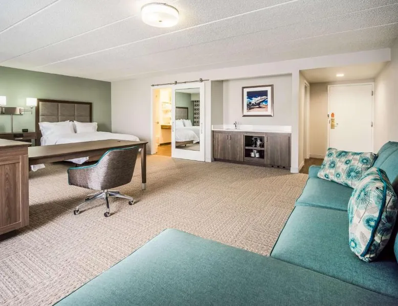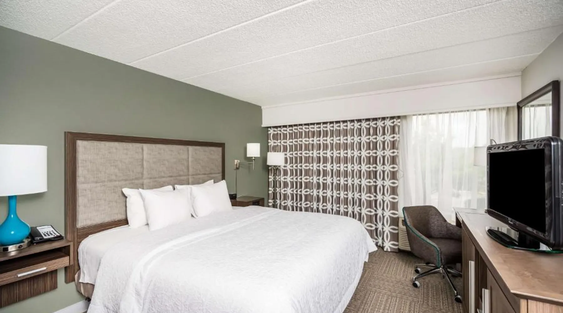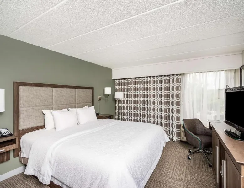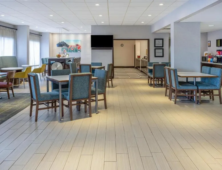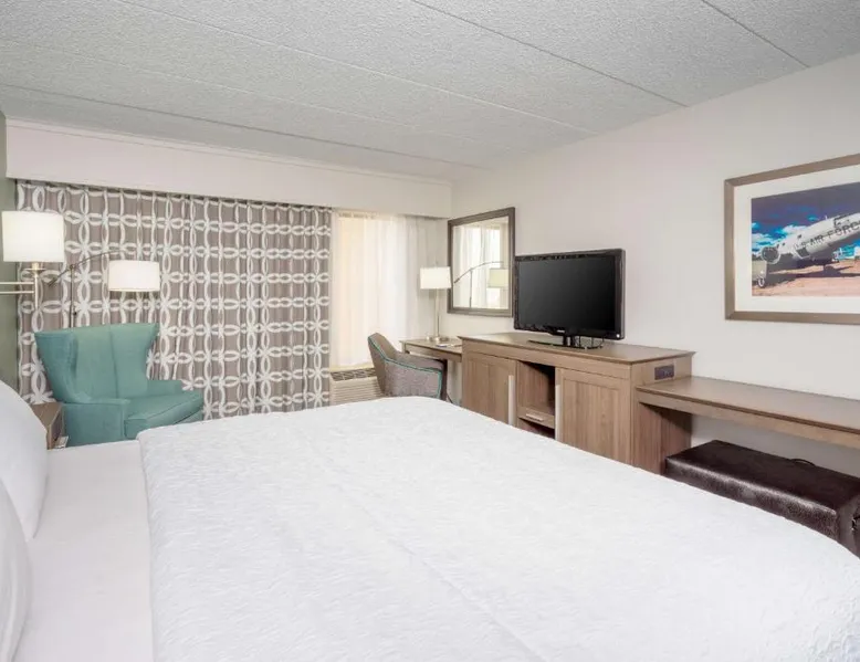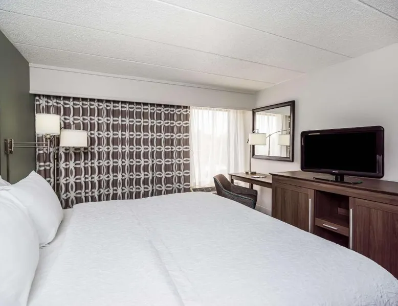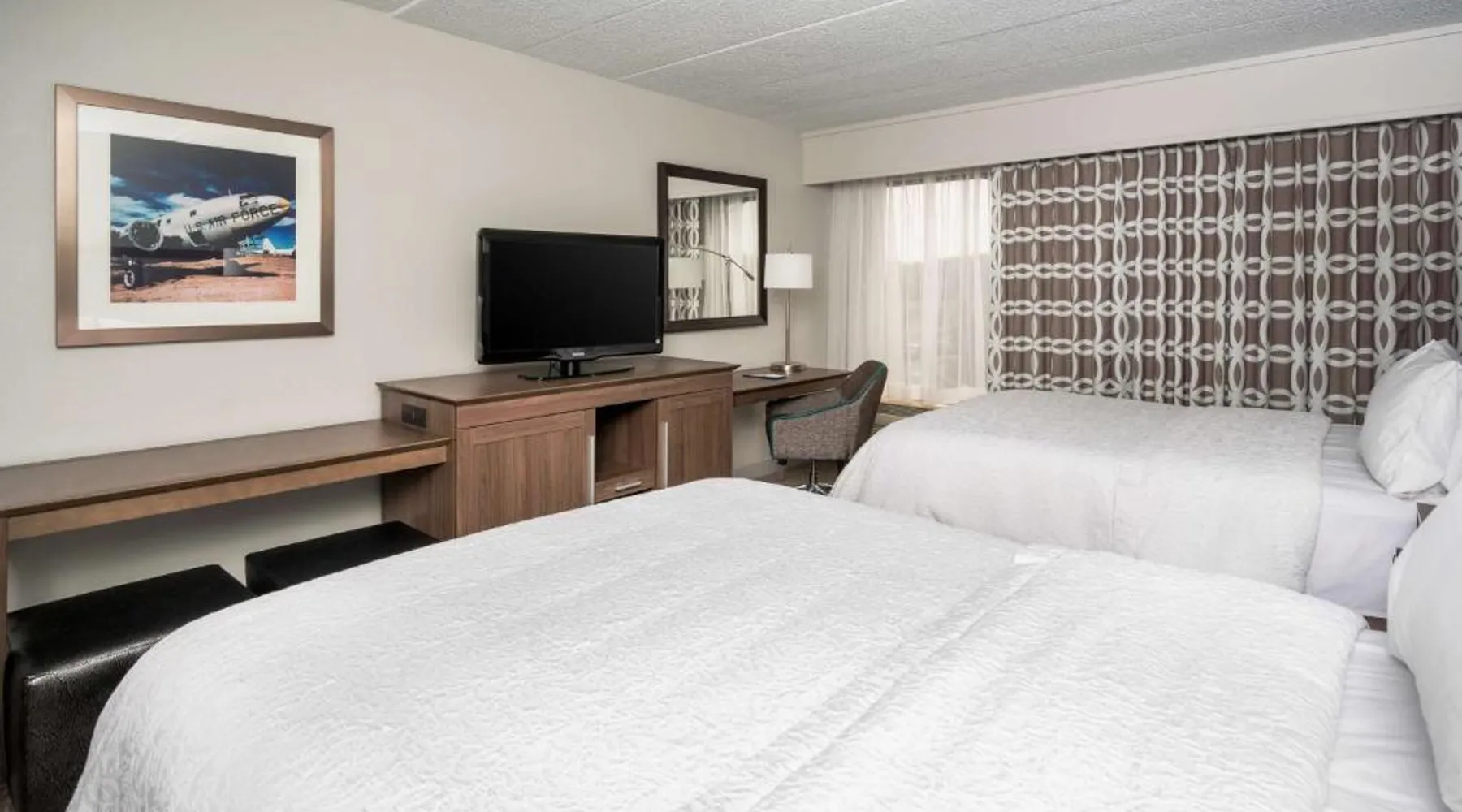 Comfortable Accommodations: Hampton Inn Dover in Dover offers comfortable rooms with free WiFi, air-conditioning, and modern amenities. Each room includes a tea and coffee maker, hairdryer, refrigerator, and TV. Leisure Facilities: Guests can enjoy a fitness center, seasonal outdoor swimming pool, and outdoor seating areas. Additional facilities include a lounge, fitness room, elevator, 24-hour front desk, concierge service, minimarket, child-friendly buffet, business area, picnic area, and barbecue facilities. Dining Options: A continental buffet breakfast is served daily, featuring fresh pastries, cheese, fruits, and juice. The property also offers a barbecue area for outdoor dining. Location and Attractions: Located 39 mi from New Castle Airport, the hotel is less than 0.6 mi from the Delaware State Police Museum and Education Center. Nearby attractions include Dover International Speedway (2.4 mi) and Delaware Agricultural Museum and Village (1.6 mi). Highly rated for breakfast, staff, and room cleanliness. This quadruple room features a tea and coffee maker and a flat-screen TV. The unit has 2 beds.