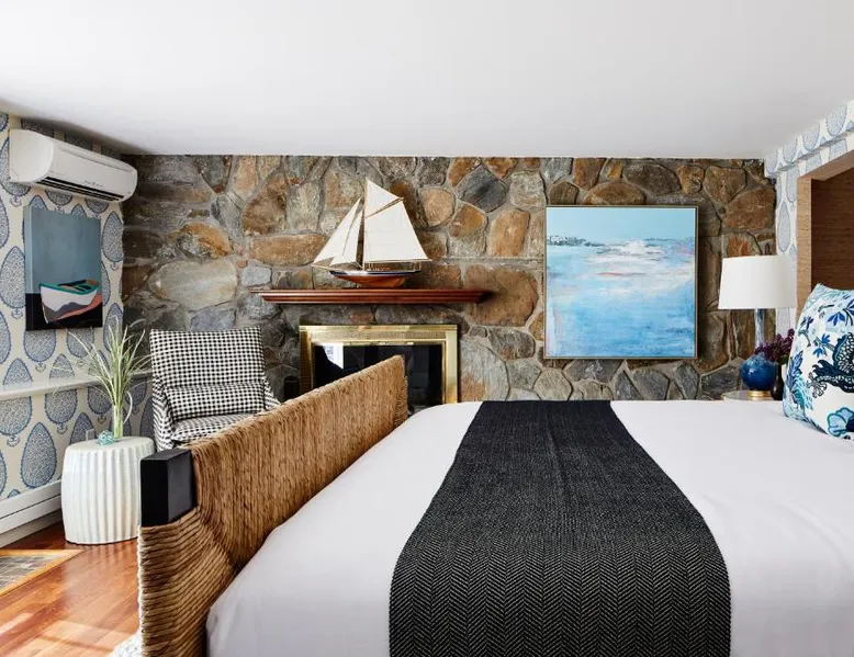 Historic Setting: The Cliffside Inn in Newport is housed in a historic building, offering a unique and charming atmosphere. Outdoor Spaces: Guests can enjoy a beautiful garden and terrace, perfect for relaxation. Free WiFi is available throughout the property. Comfortable Accommodations: Rooms feature air-conditioning, private bathrooms, fireplaces, and modern amenities, ensuring a comfortable stay. Convenient Location: Located 28 mi from T.F. Green Airport, the hotel is a short walk from Easton's Beach and close to attractions such as Rosecliff Mansion and The Breakers. Guest Services: The property offers an outdoor fireplace, wellness packages, concierge service, and menus for special diets. Free on-site private parking is available. This suite has air conditioning, fireplace, seating area and a private entrance from the outside.