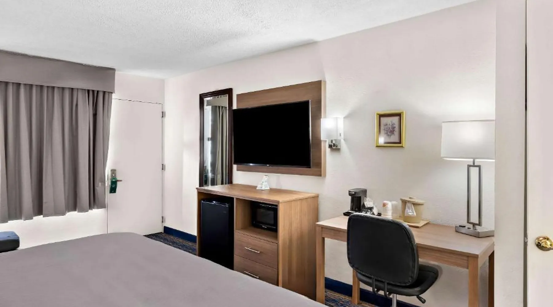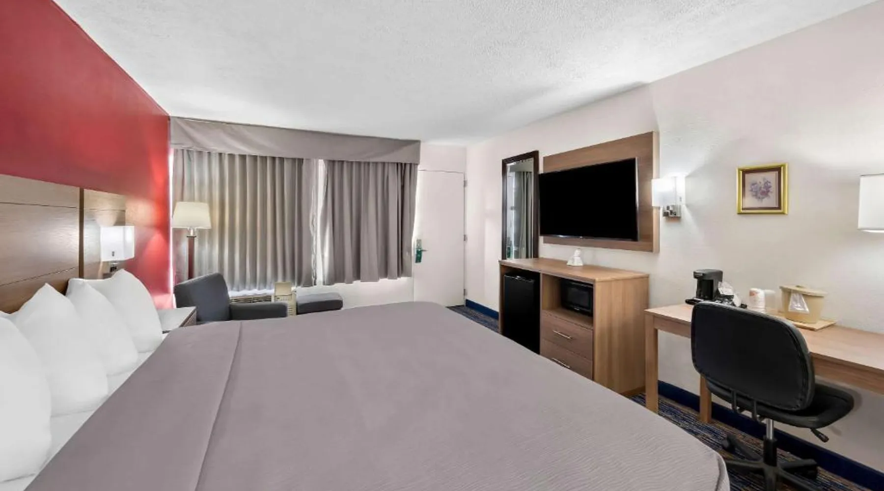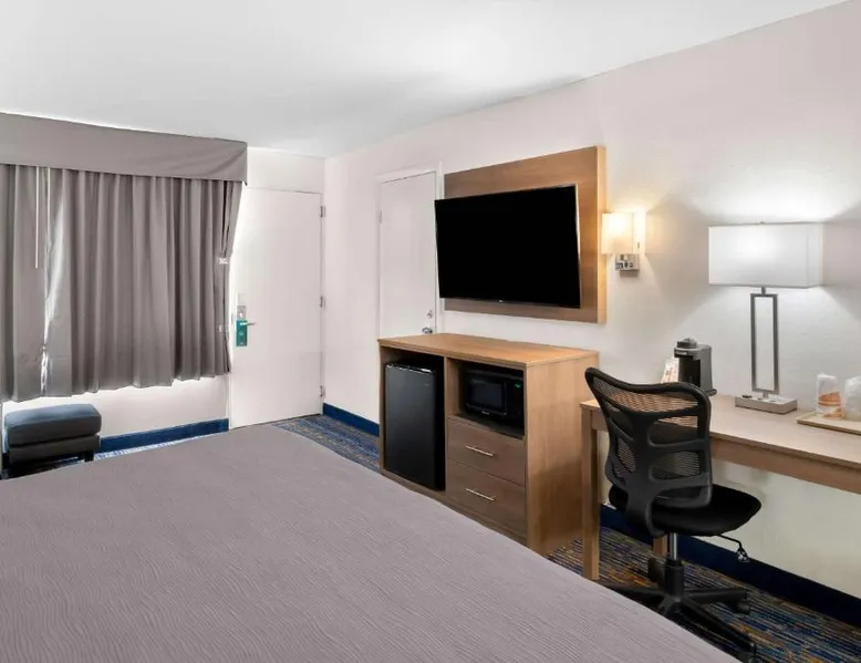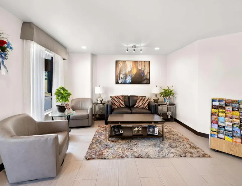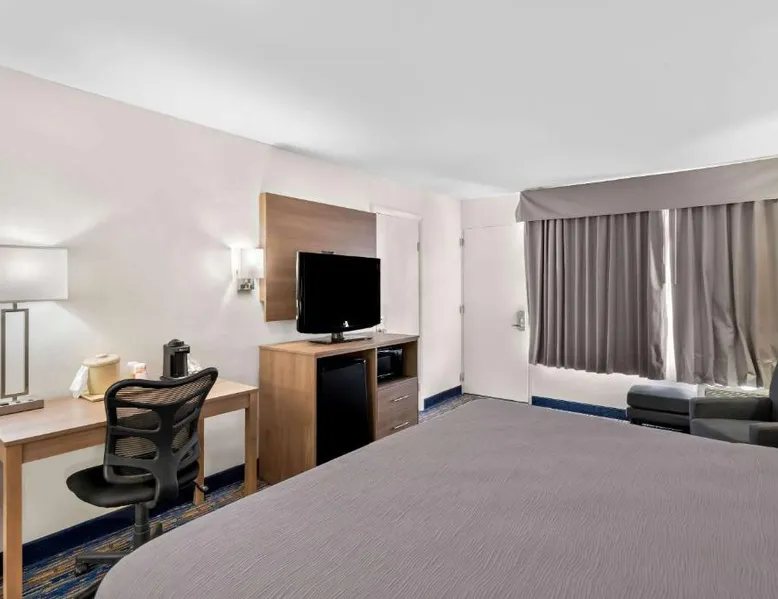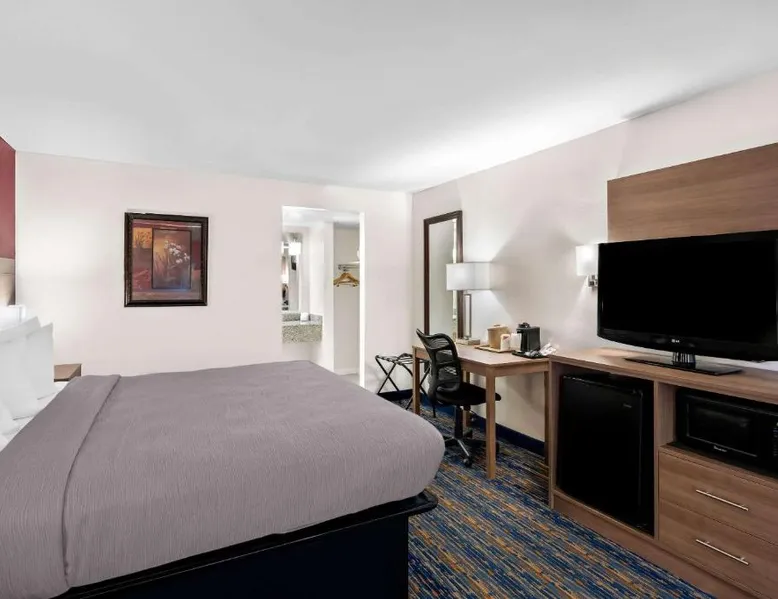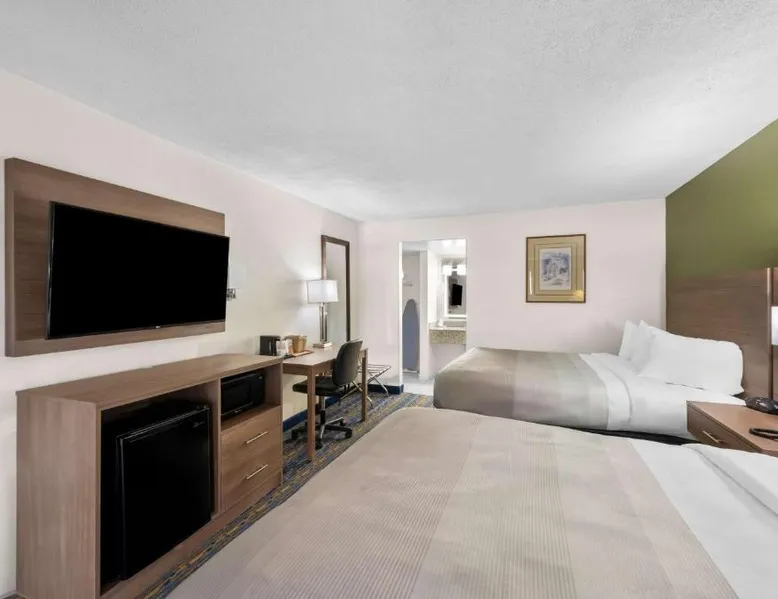 This Virginia motel, located only 5 minutes’ drive from Luray Caverns, features an outdoor swimming pool and on-site restaurant. Shenandoah National Park is 10 miles away. Free Wi-Fi and a flat-screen TV are featured in every room at the Quality Inn. Decorated in bright accent colors and wood furnishings, these rooms also have a microwave and refrigerator. Daily newspapers are offered at the 24-hour front desk. A computer with a printer and copy and fax services is provided. Guests can enjoy a full American breakfast served every morning at Alexander’s. Room service is available. Luray Caverns Golf Course is 3 miles from the Quality Inn. New Market Battlefield State Historical Park is 15 miles away. The spacious double room offers air conditioning, a tea and coffee maker, a seating area, a TV with cable channels, as well as mountain views. The unit offers 1 bed.