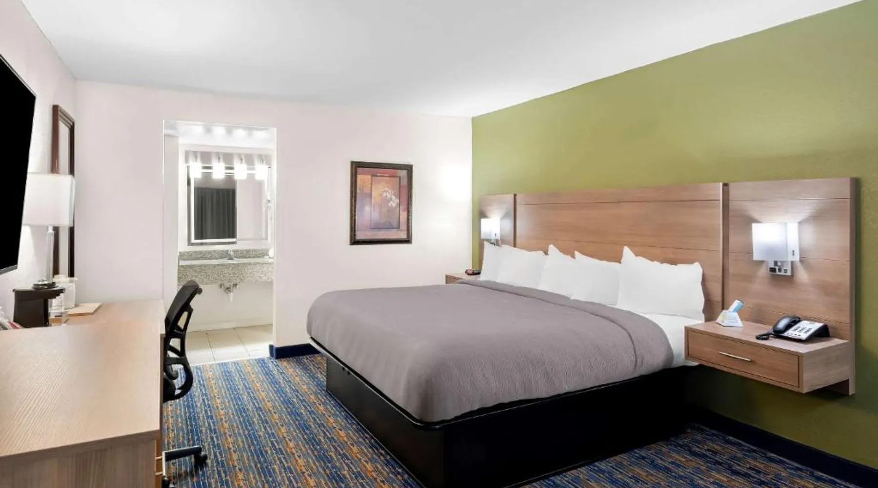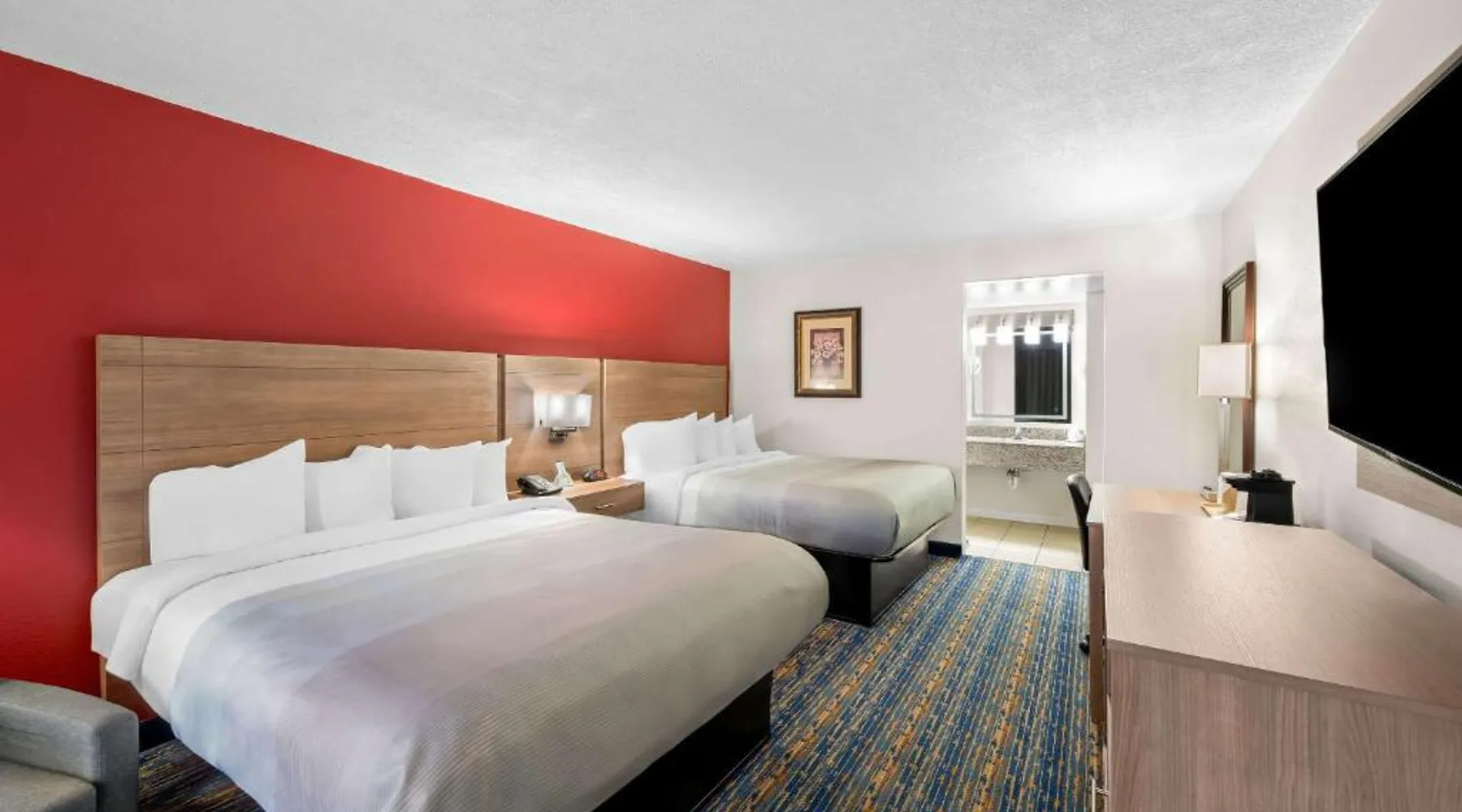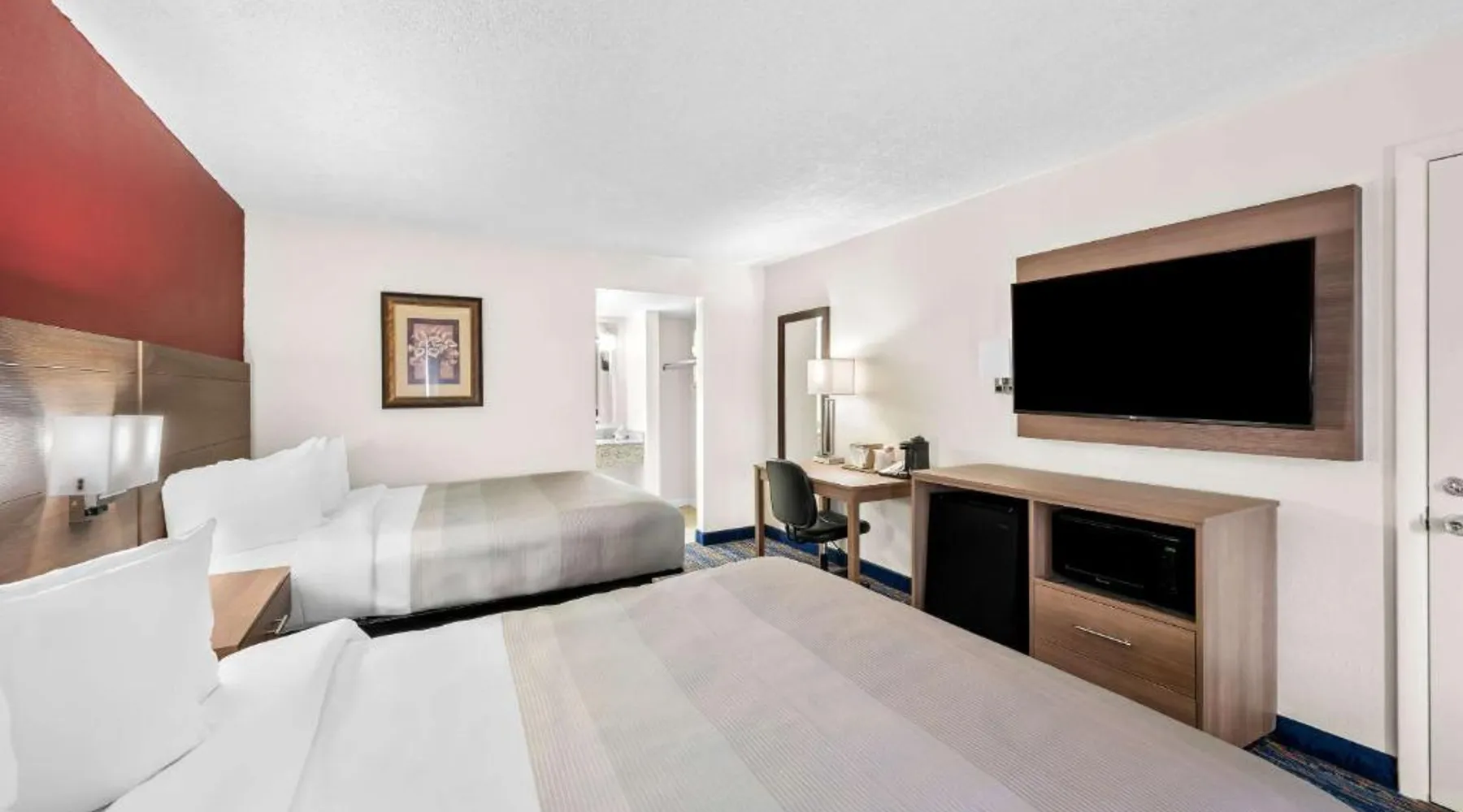This Virginia motel, located only 5 minutes’ drive from Luray Caverns, features an outdoor swimming pool and on-site restaurant. Shenandoah National Park is 10 miles away. Free Wi-Fi and a flat-screen TV are featured in every room at the Quality Inn. Decorated in bright accent colors and wood furnishings, these rooms also have a microwave and refrigerator. Daily newspapers are offered at the 24-hour front desk. A computer with a printer and copy and fax services is provided. Guests can enjoy a full American breakfast served every morning at Alexander’s. Room service is available. Luray Caverns Golf Course is 3 miles from the Quality Inn. New Market Battlefield State Historical Park is 15 miles away. The spacious double room offers air conditioning, a tea and coffee maker, a seating area, a TV with cable channels, as well as mountain views. The unit offers 1 bed.