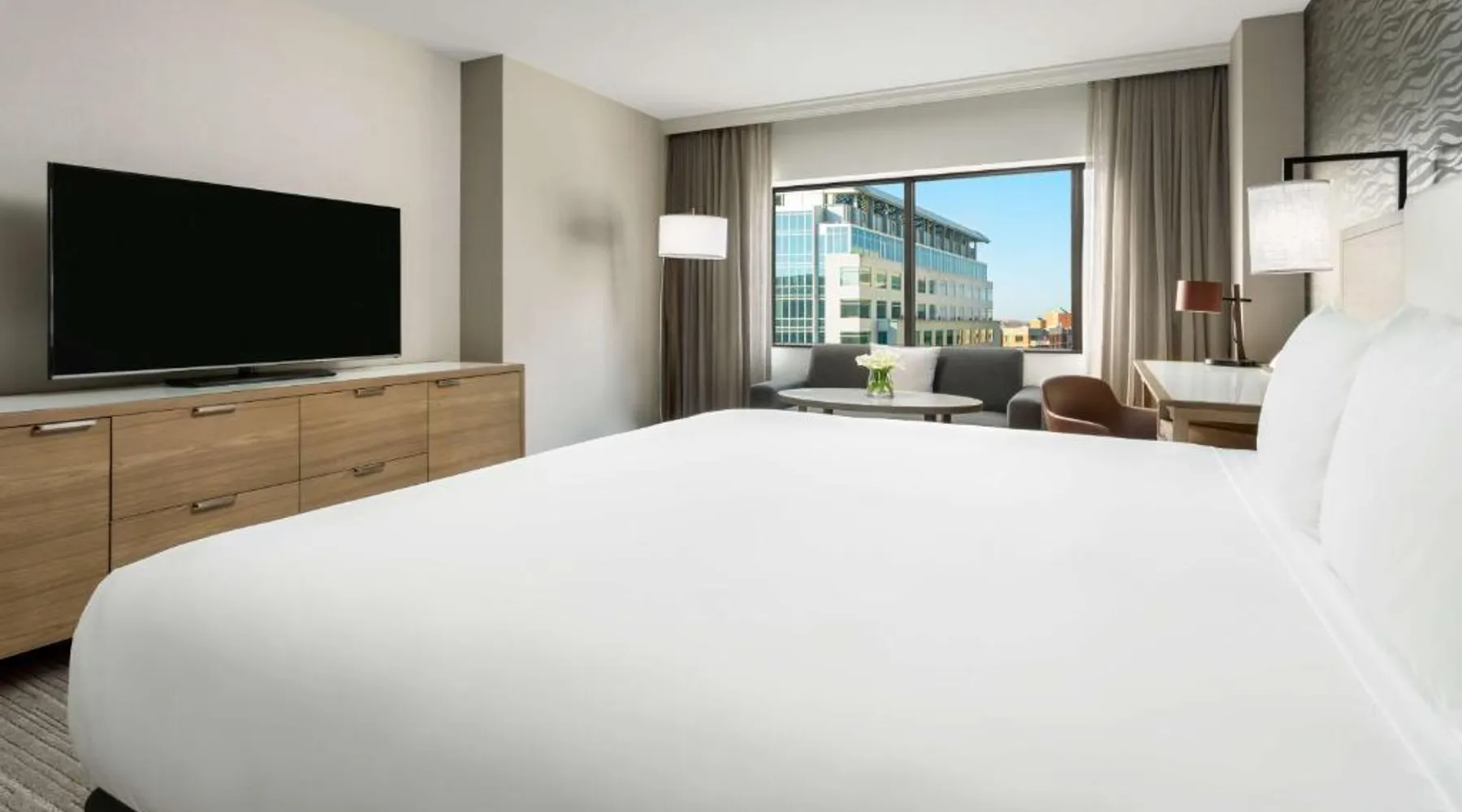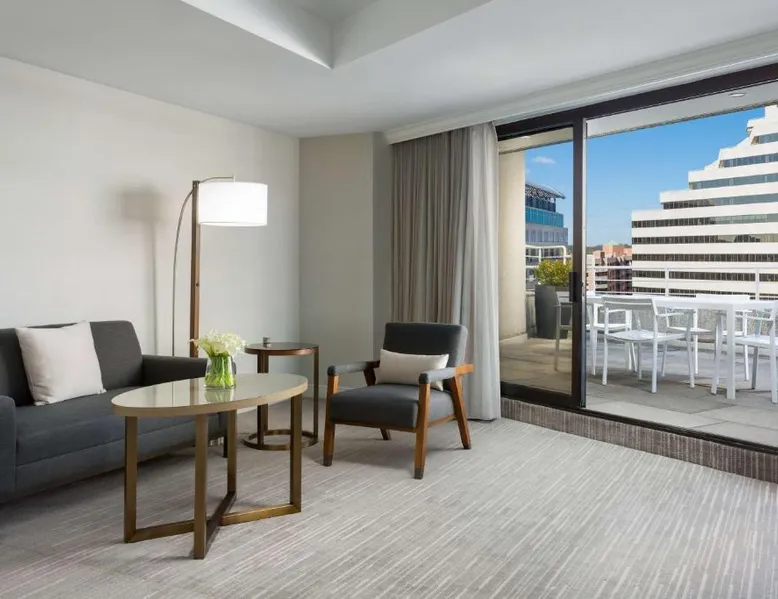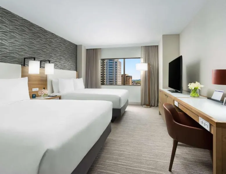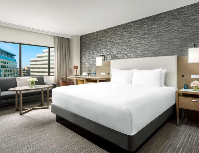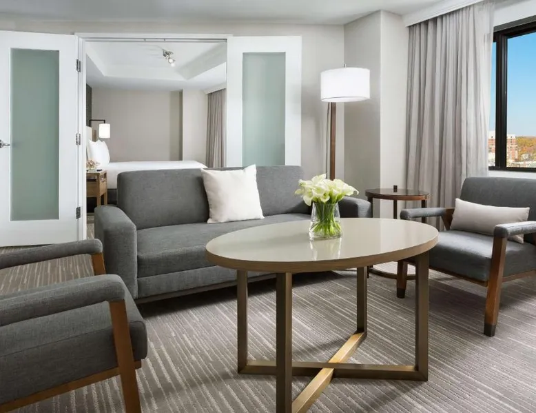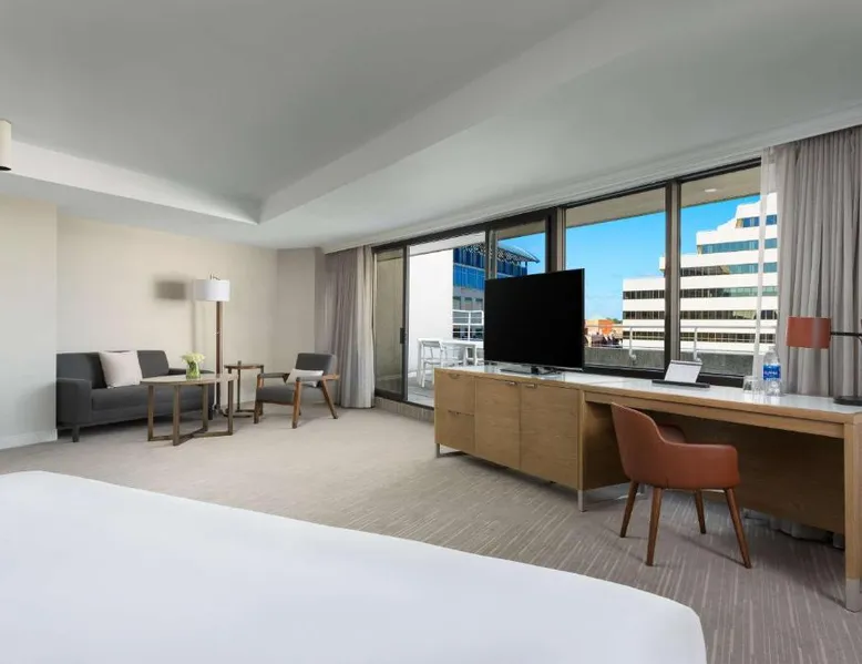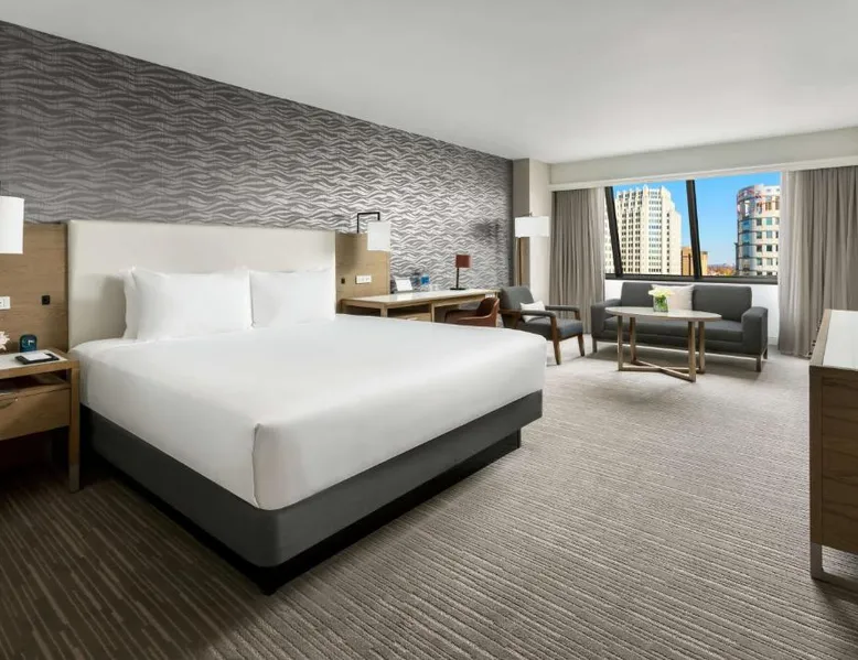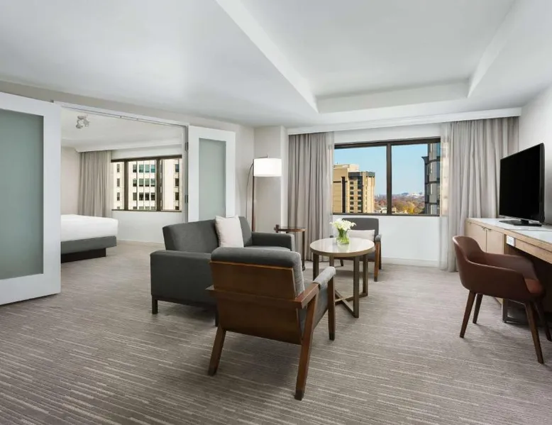 This 12-story atrium hotel is located directly above the Bethesda metro station and the Washington, D.C. city center is 7 miles away. The hotel provides free Wi-Fi and a 24-hour fitness center. A 55-inch HD flat-screen TV, Hyatt Grand Bed, and work desk are included in every contemporary guest room at the Hyatt Regency Bethesda near Washington D.C. They are decorated in light neutral tones. Each room also comes with a refrigerator and a safe. Guests can also enjoy the convenience of a concierge service at the Hyatt Regency Bethesda near Washington D.C. Morton’s the Steakhouse serves dinner, while the Daily Grill offers breakfast, brunch, lunch and dinner. A Starbucks® is featured in the lobby of the property. The National Institutes of Health are 1 mile away. The National Zoo is 13 minutes’ train ride from the hotel. This room features a work desk, a coffee machine, and a flat-screen cable TV.