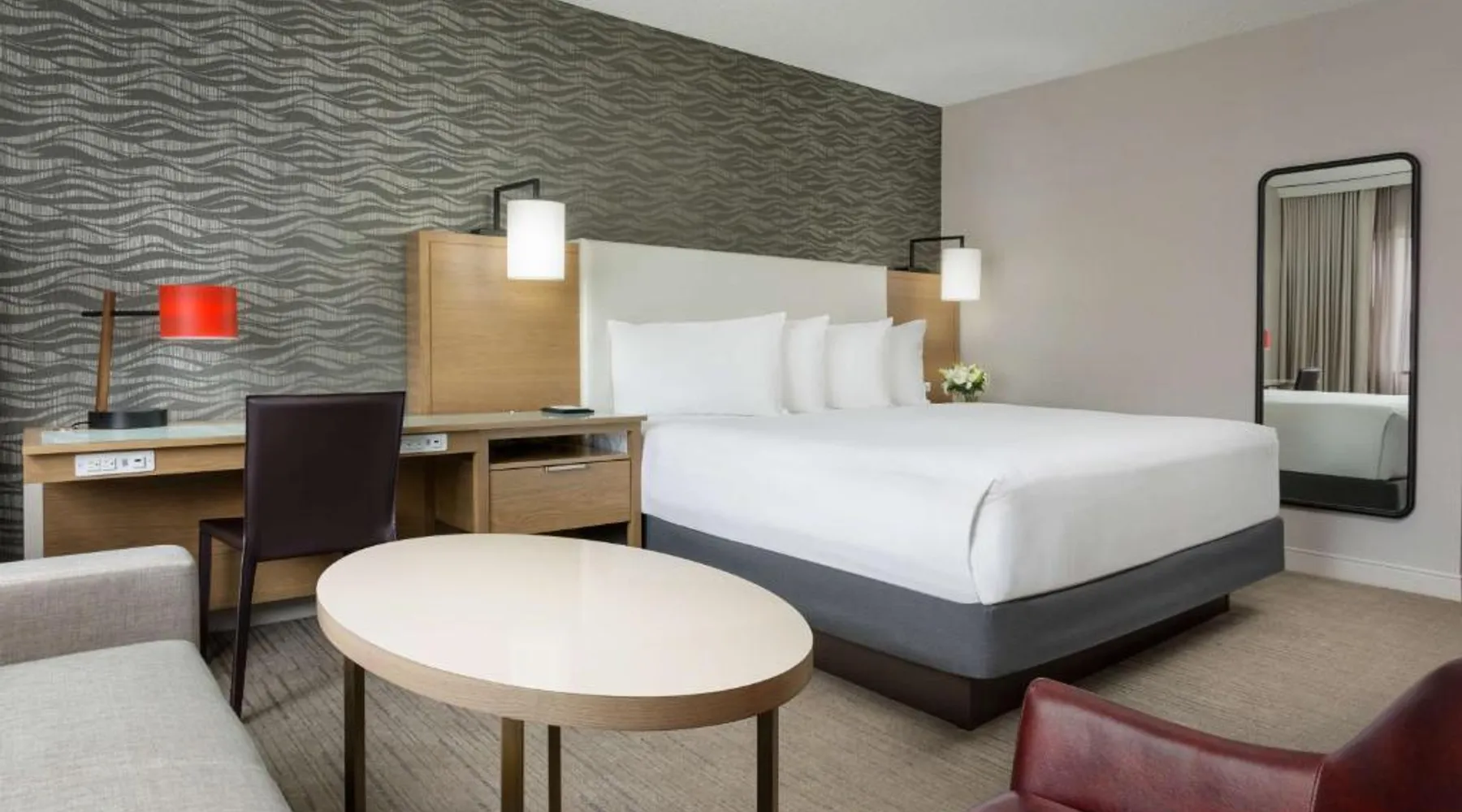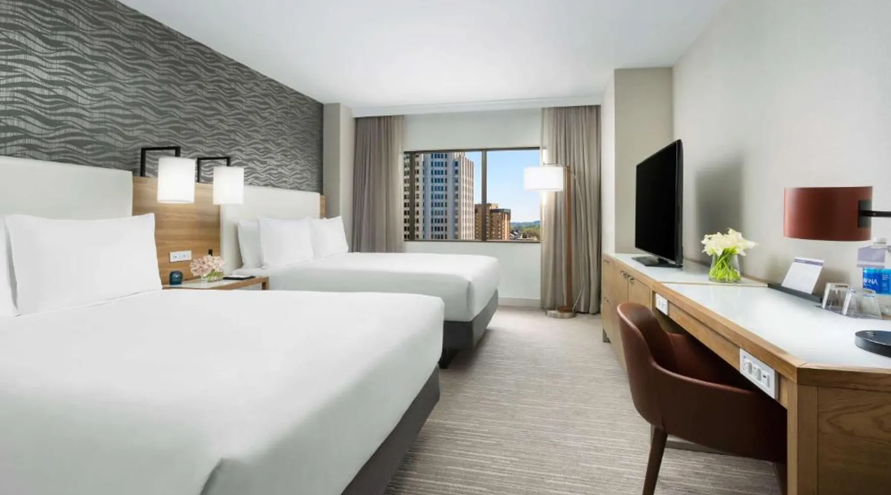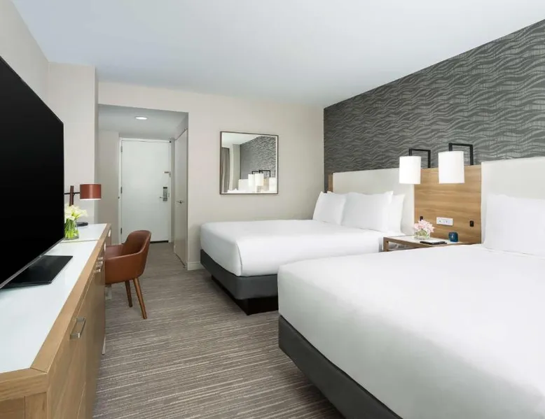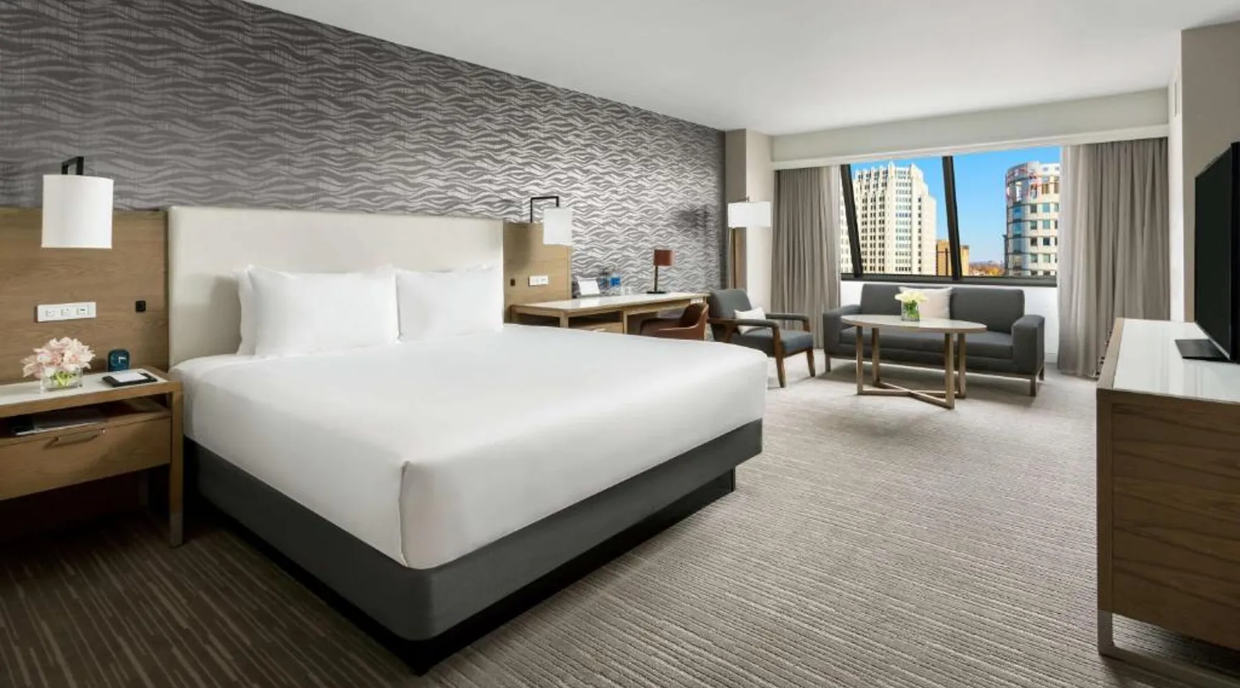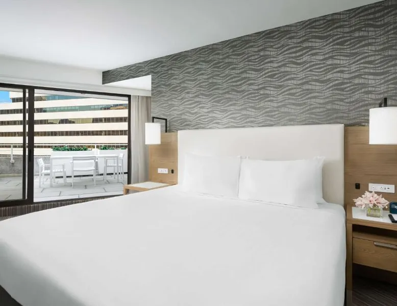 This 12-story atrium hotel is located directly above the Bethesda metro station and the Washington, D.C. city center is 7 miles away. The hotel provides free Wi-Fi and a 24-hour fitness center. A 55-inch HD flat-screen TV, Hyatt Grand Bed, and work desk are included in every contemporary guest room at the Hyatt Regency Bethesda near Washington D.C. They are decorated in light neutral tones. Each room also comes with a refrigerator and a safe. Guests can also enjoy the convenience of a concierge service at the Hyatt Regency Bethesda near Washington D.C. Morton’s the Steakhouse serves dinner, while the Daily Grill offers breakfast, brunch, lunch and dinner. A Starbucks® is featured in the lobby of the property. The National Institutes of Health are 1 mile away. The National Zoo is 13 minutes’ train ride from the hotel. This room features a work desk, a coffee machine, and a flat-screen cable TV.
