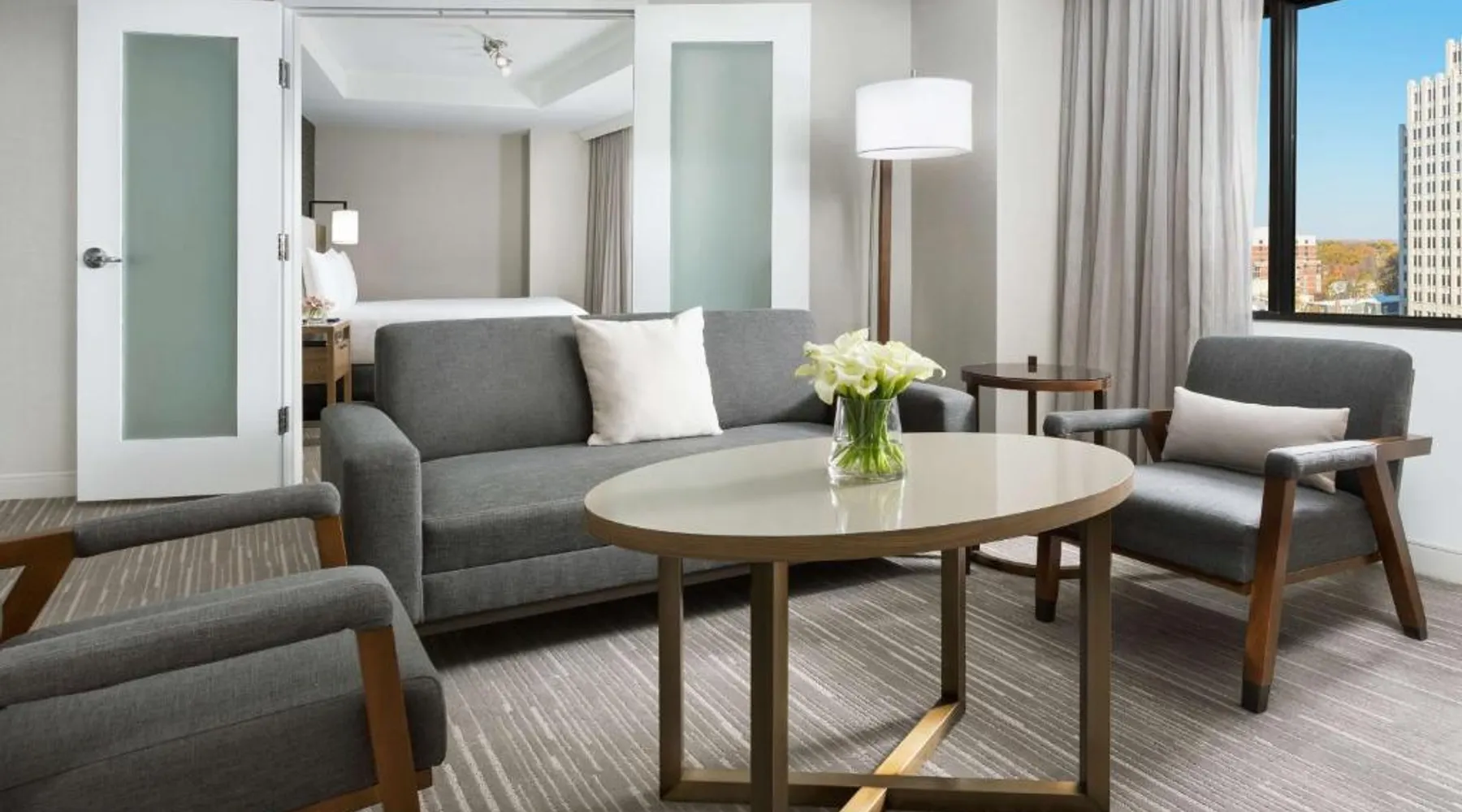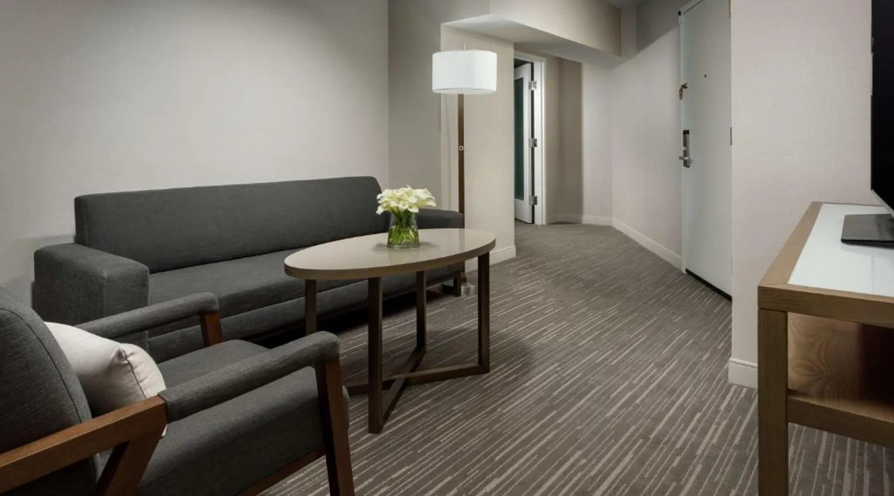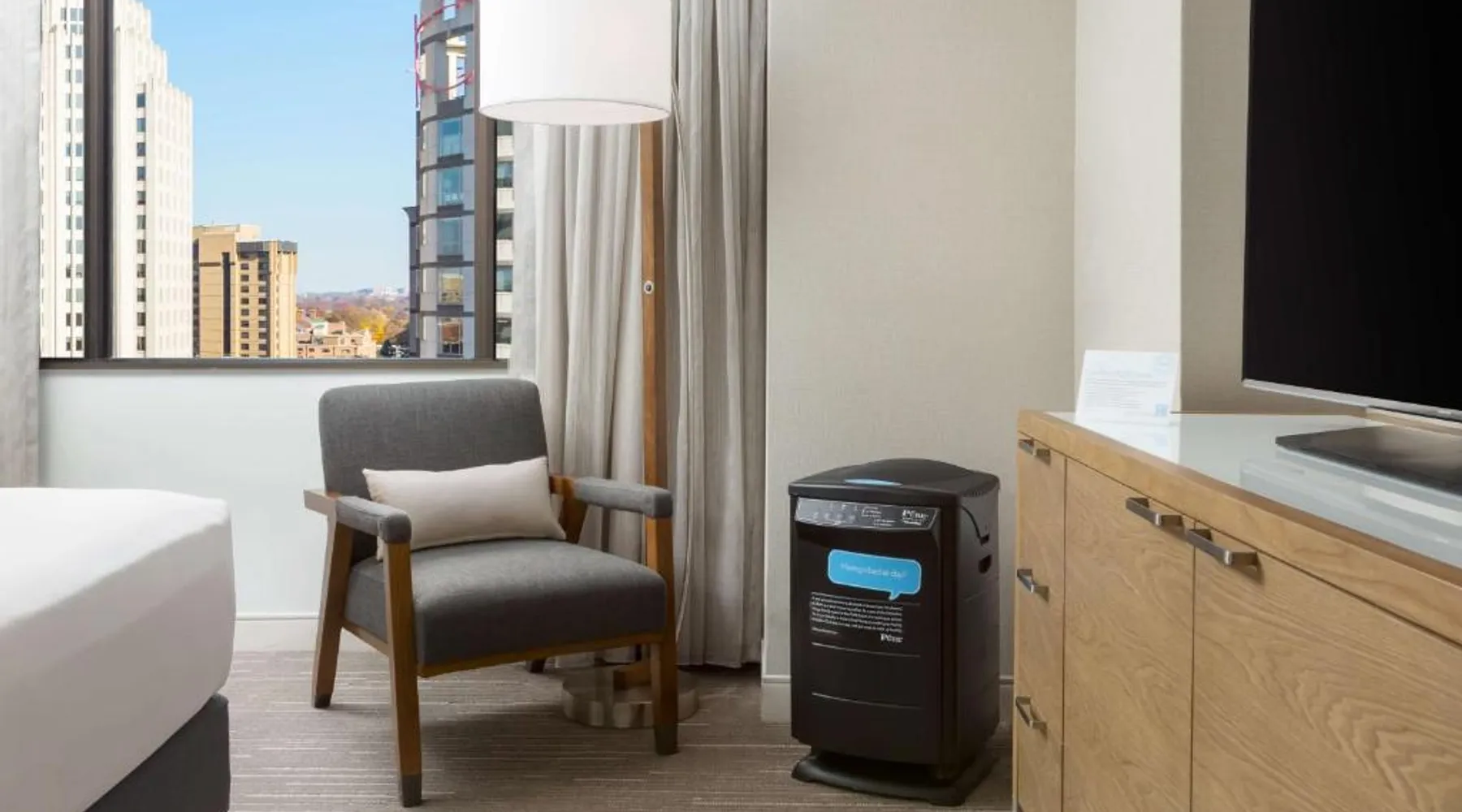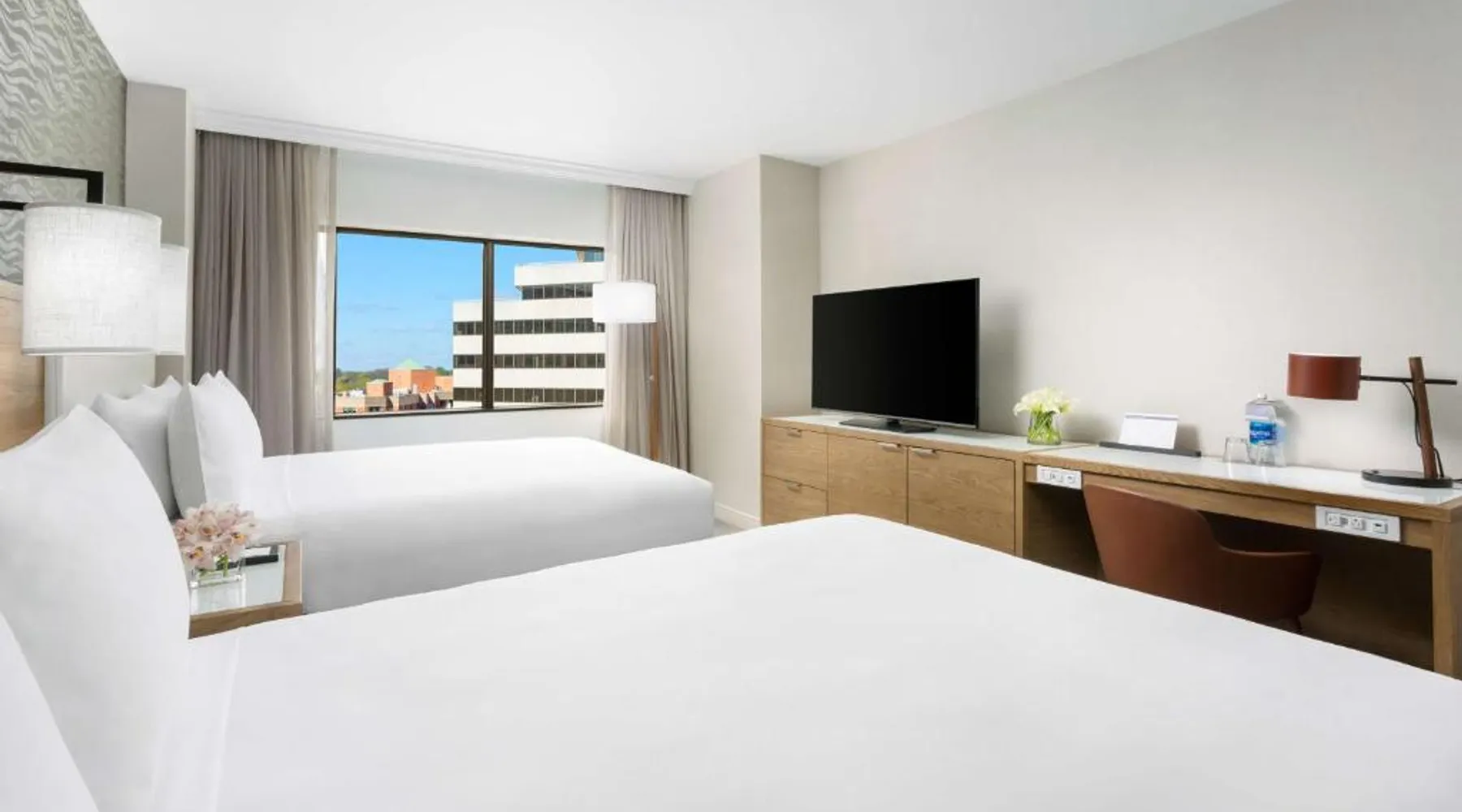 This 12-story atrium hotel is located directly above the Bethesda metro station and the Washington, D.C. city center is 7 miles away. The hotel provides free Wi-Fi and a 24-hour fitness center. A 55-inch HD flat-screen TV, Hyatt Grand Bed, and work desk are included in every contemporary guest room at the Hyatt Regency Bethesda near Washington D.C. They are decorated in light neutral tones. Each room also comes with a refrigerator and a safe. Guests can also enjoy the convenience of a concierge service at the Hyatt Regency Bethesda near Washington D.C. Morton’s the Steakhouse serves dinner, while the Daily Grill offers breakfast, brunch, lunch and dinner. A Starbucks® is featured in the lobby of the property. The National Institutes of Health are 1 mile away. The National Zoo is 13 minutes’ train ride from the hotel. This room features a work desk, a coffee machine, and a flat-screen cable TV.
