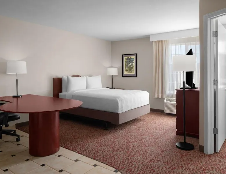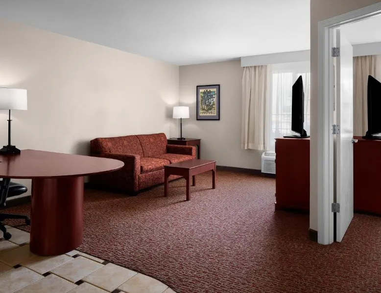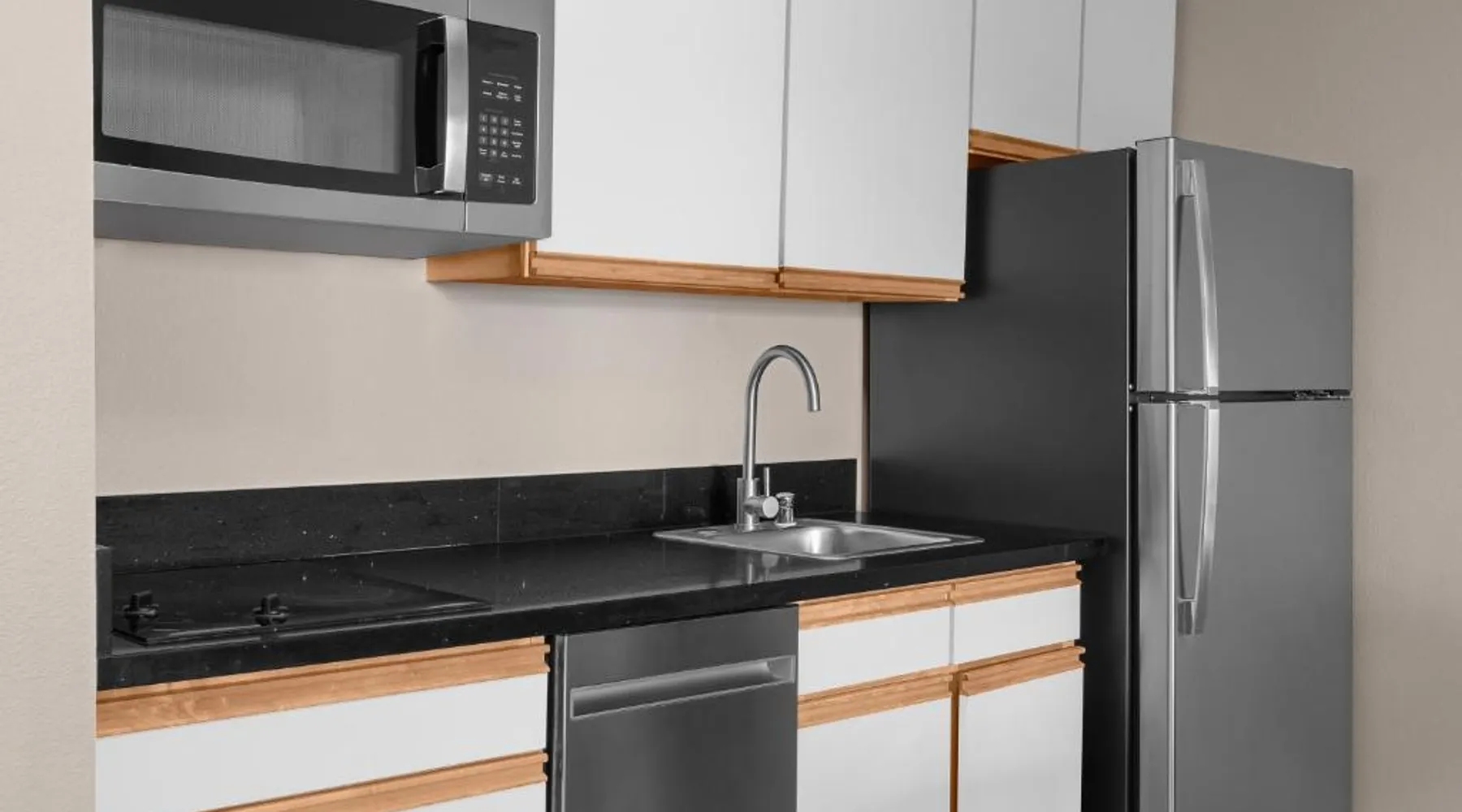 Located off Interstate 580, this dog-friendly hotel is just 2 miles from Stoneridge Mall. Spacious guest suites feature full kitchens includes a full refrigerator and free WiFi. A seating area with a flat-screen SMART TVs is equipped in each suite at Larkspur Landing Extended Stay Suites Pleasanton. Suites are traditionally styled with warm colors and offer a work area. Each suite features a fully equipped kitchen with full-size refrigerator, stovetop and appliances. Pleasanton Larkspur Landing caters to guest needs by providing, freshly baked cookies each day and 24-hour free coffee in the lobby. A fitness room, outdoor fire pit, are also on site for guest use. This hotel is within 3.5 miles of the Alameda County Fairgrounds and Pleasanton Fairways Golf Course. Lawrence Livermore National Laboratory is about a 20-minute drive away. Featuring a full kitchen with full-size refrigerator, this spacious studio suite includes free Wi-Fi and a flat-screen TV with cable.