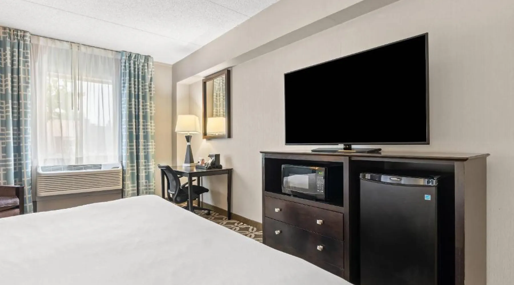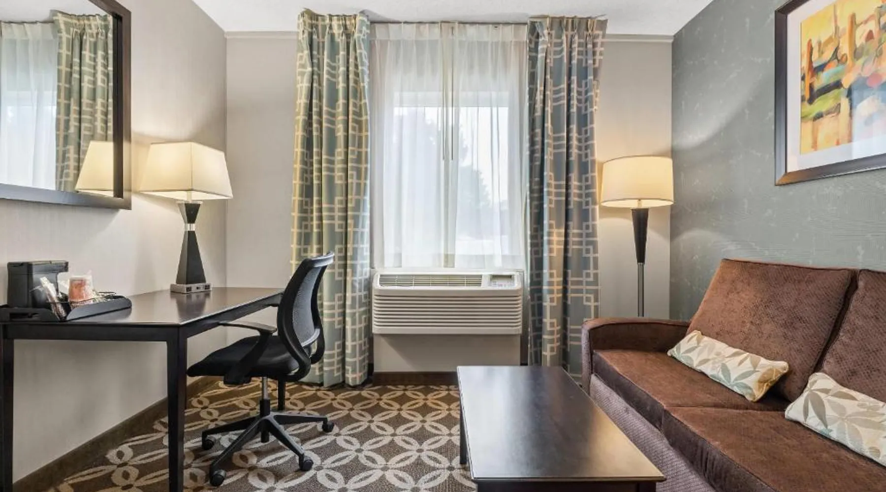 Located on the Coastal Highway and less than 3.7 mi from the Rehoboth Beach Boardwalk, this Comfort Inn features a daily continental breakfast. Free WiFi is available throughout the hotel. Rooms at the Comfort Inn – Rehoboth are equipped with cable TV and a refrigerator. An in-room coffee maker and ironing facilities are included. Guests of the Rehoboth Comfort Inn are welcome to enjoy the seasonal outdoor pool and deck. An exercise room and a business center are also available. Free coffee is always offered and a free issue of the newspaper are delivered to rooms each weekday. The Comfort Inn Rehoboth Beach is 4.2 mi from Nassau Valley Vineyards and 6.6 mi from Cape Henlopen State Park. This room features a microwave, air conditioning and a seating area.